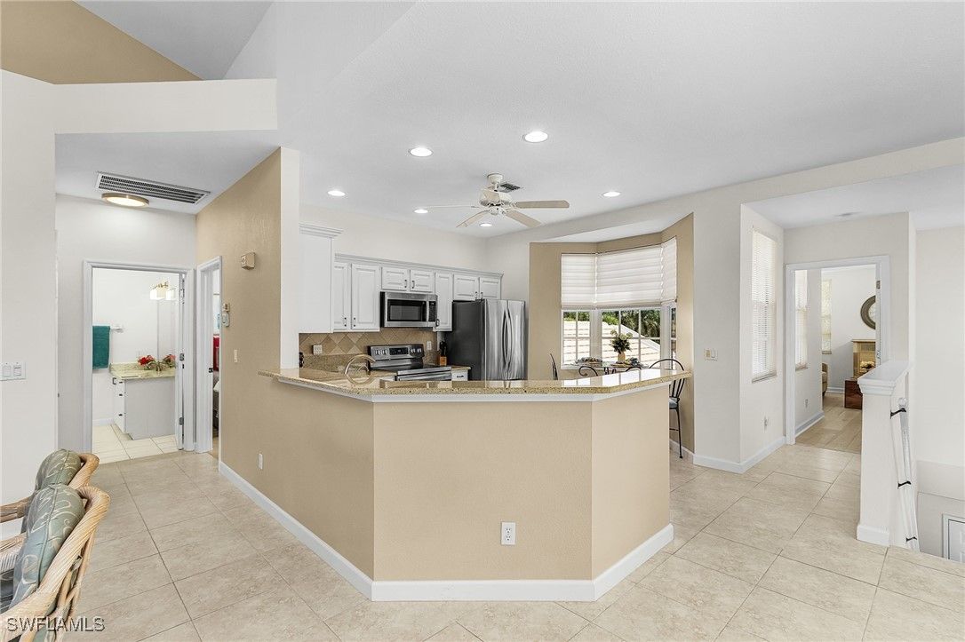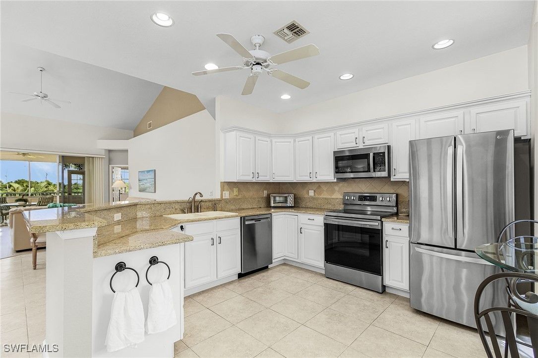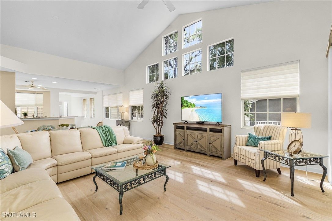 Opportunities like this rarely last in Pelican Landing, one of Bonita Springs’ premier resort-style communities. This light-filled 3 bedroom, 3 bath second-story residence offers the perfect blend of sophistication, comfort, and convenience. A vaulted ceiling and a wall of windows create an airy, sun-drenched great room where natural light dances across open living spaces. Skylights and sunset views over the golf course add warmth and serenity to every evening. The kitchen blends beauty and function with stainless steel appliances, and generous prep space—perfect for entertaining or quiet mornings at home. Coastal décor and turnkey furnishings mean you can begin enjoying the Southwest Florida lifestyle from day one. With a seasonal renter already in place for 2026, you’ll begin ownership with built-in income and plenty of time to plan your own sun-filled stays in paradise. At Pelican Landing, every day feels like vacation! Pelican Landing's crown jewel is an amenity no other southwest Florida community can match — their own 34-acre island in the Gulf of Mexico with sugar-sand beaches, accessible via shuttle boat. Pelican Landing residents enjoy active, social lifestyles. There are two country clubs with optional memberships with three 18-hole golf courses between them, a tennis center with 12 Har-Tru® courts, a fully-equipped fitness center, six pickleball courts, two bocce courts and a community center where residents gather to play games and socialize. There is a kayak/canoe park on Spring Creek, three fishing piers, a butterfly garden, and a marina on Estero Bay where residents can check out sailboats and kayaks and enjoy complimentary sailing lessons. The mature landscaping and miles of walkways make walking and biking throughout the community a joy.