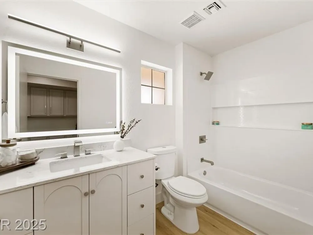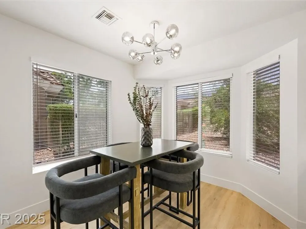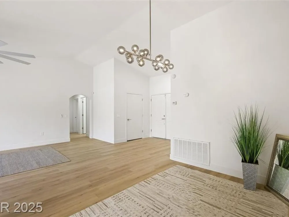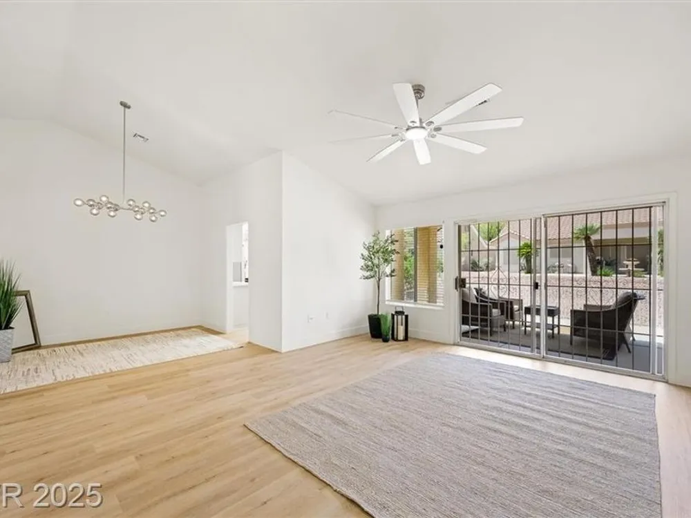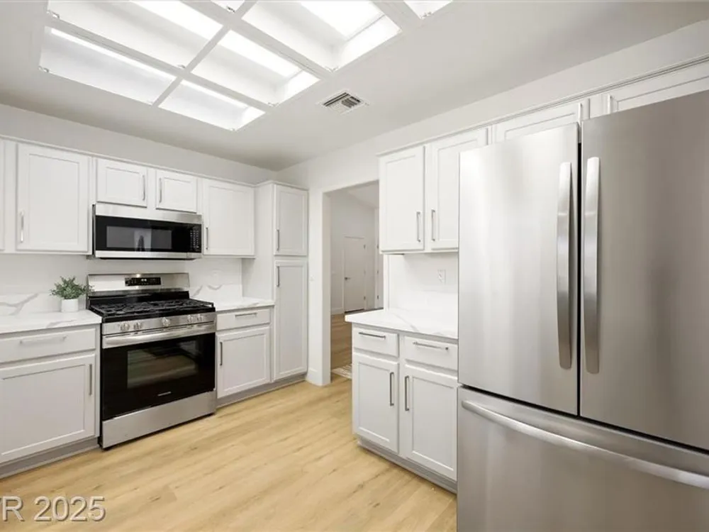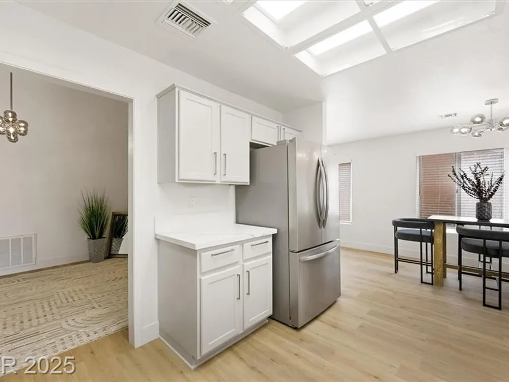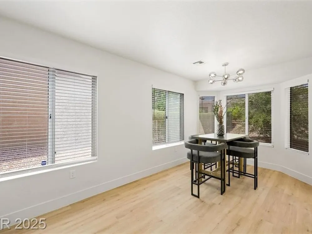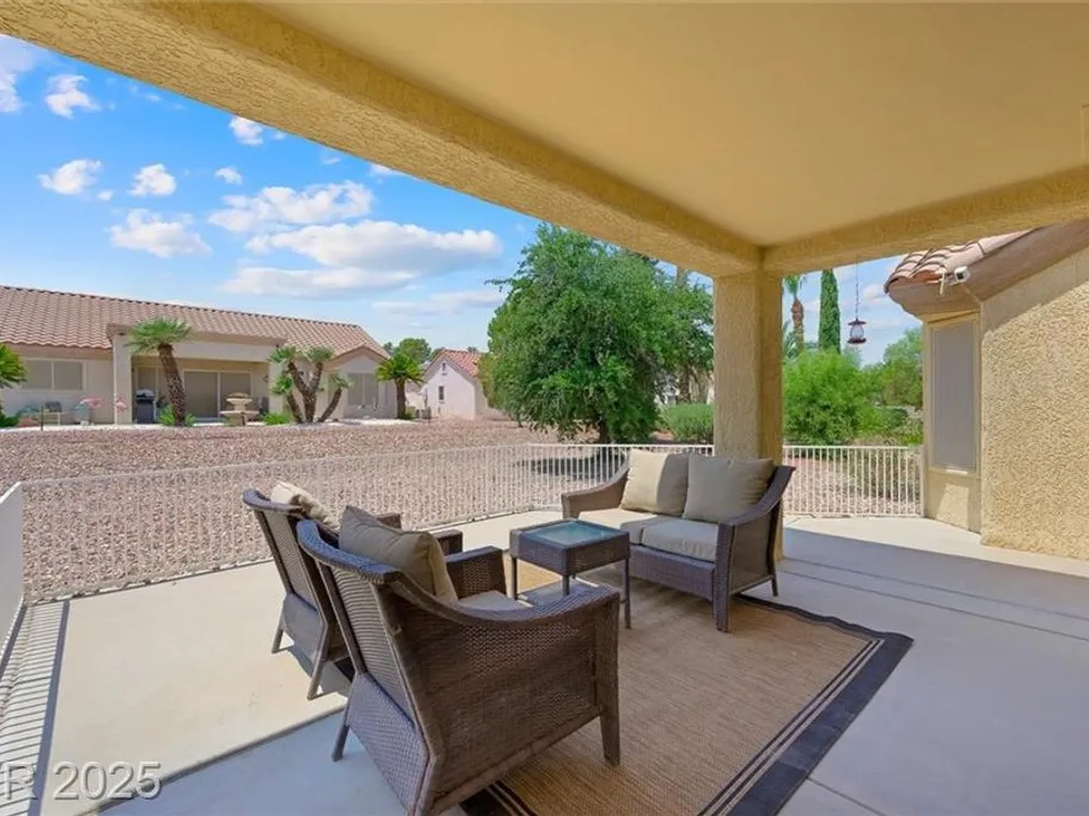 Step into luxury in this beautifully remodeled 2Bd, 2Ba home located in the highly sought-after Sun City Summerlin community. Every inch of this home has been thoughtfully upgraded, offering the perfect blend of modern elegance and comfortable living. Fresh alabaster paint and new baseboards provide a crisp, clean look throughout, while luxury vinyl plank flooring flows seamlessly from room to room, adding both beauty and durability. The heart of the home is a show-stopping kitchen featuring chic greige cabinets, Carerra quartz countertops, and a spacious bar area complete with a wine fridge—perfect for entertaining. You'll love the single-basin stainless steel sink, stainless steel appliances, and abundant storage space. Or Retreat to the spacious bedrooms with updated bathrooms. Whether you’re relaxing at home or enjoying the vibrant lifestyle of Sun City, this home offers the perfect balance of peace and convenience.