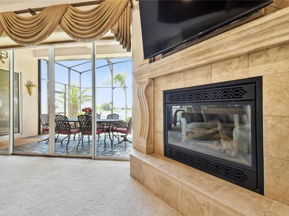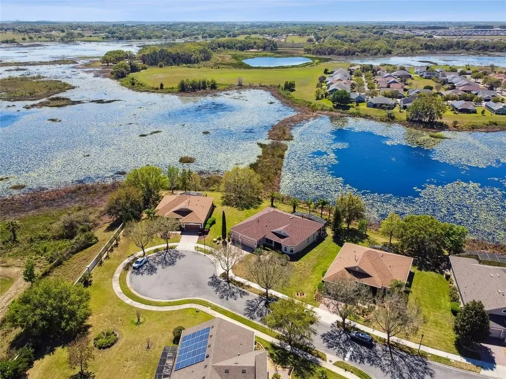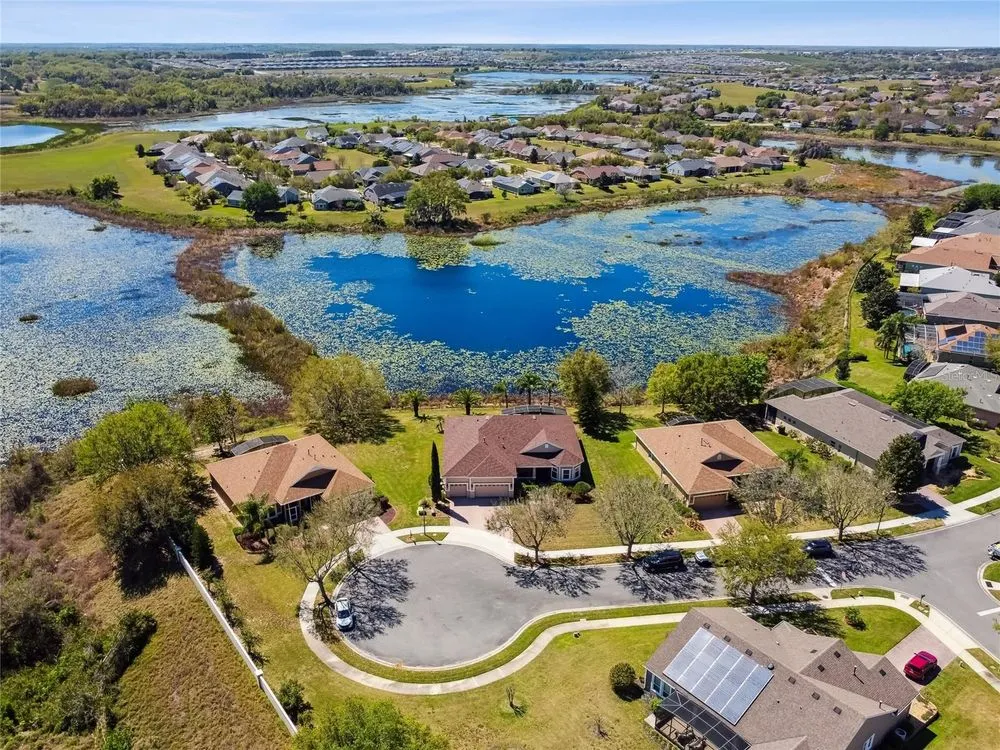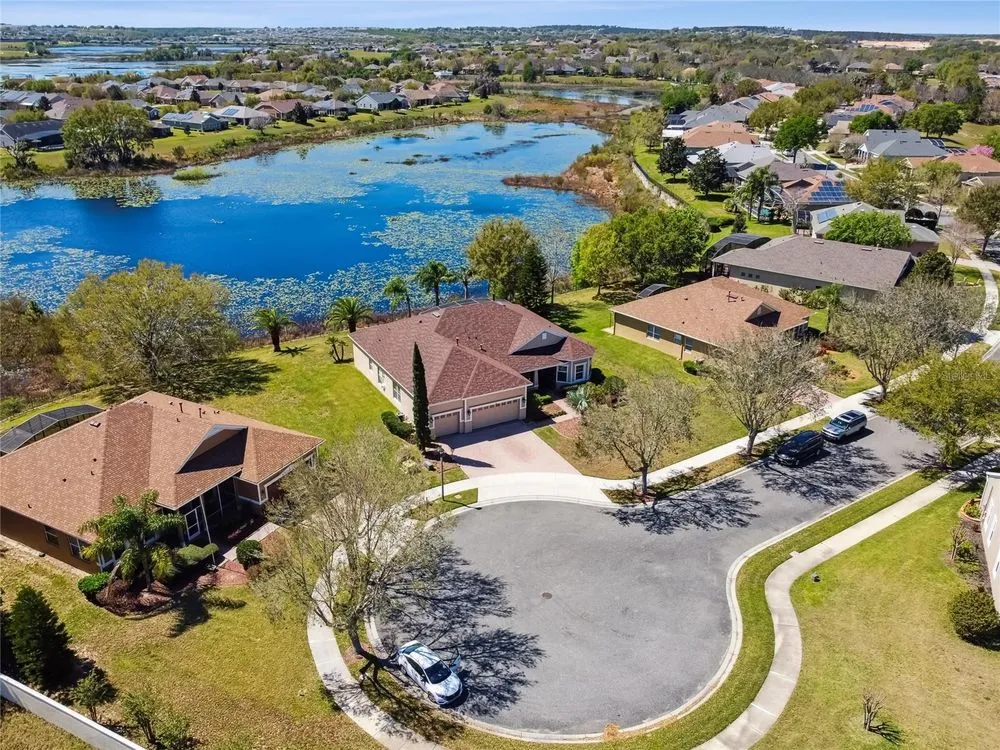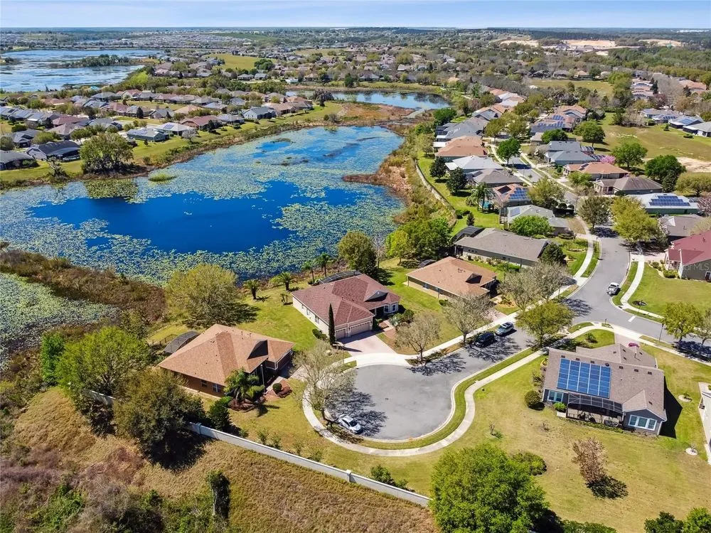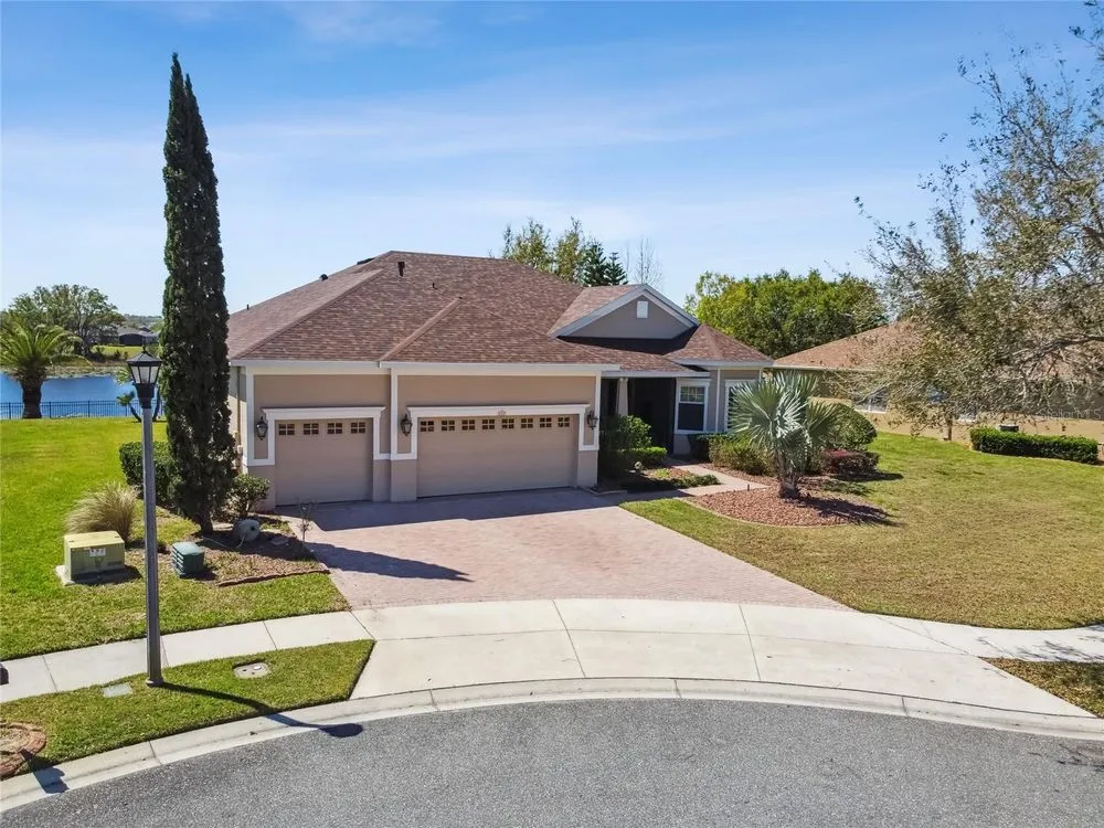 PRICE IMPROVEMENT! Lakefront Property with AMAZING VIEWS! As you walk through the front door your eyes will be drawn to the beautiful lake view offering ultimate privacy. This home features 2,532 square feet of living space with 3 bedrooms, 2.5 baths, game room and 3 car garage in a Cul-De-Sac nice quiet street. Built in 2006 on 0.31 acres in Groveland FL. This home features an open floor plan with crown molding, 14 foot ceilings in great room, custom made remote fireplace, custom built-in Murphy beds, a well designed kitchen with 42 inch cabinets for plenty storage with gas stove, bar height countertops for entertaining, granite countertops, stainless steel appliances, large kitchen pantry and laundry room.Take in the lake views from the spacious master bedroom with separate walking closets and ensuite bathroom with separate sinks, tub and shower. Roof less than 3 years old, Two brand new Lennox AC units just installed, brand new water heater, Fridge 3 years old, Dishwasher 1 year old, energy efficient double insulated windows, extra insulation and foil in the attic. This is your dream 55+ guard-gated trilogy community with resort style living. Community amenities include an indoor/outdoor pool, spa, Bar and Grill, basketball courts, tennis courts, corn hole courts, pickleball, bocci ball, fitness center, game rooms, billiard room, poker cards room, craft rooms, and so much more. The Magnolia Clubhouse also has fun activities like Karaoke nights, events, dances and a lot of entertaining shows. The HOA fee includes internet, lawn care, security system monitoring. ***As bonus enjoy wine tasting at your local Lakeridge Winery & Vineyards! Also Only 45 minutes away from Disney World In Orlando!****. ***View this home 24-hours a day with the 3D virtual tour****
