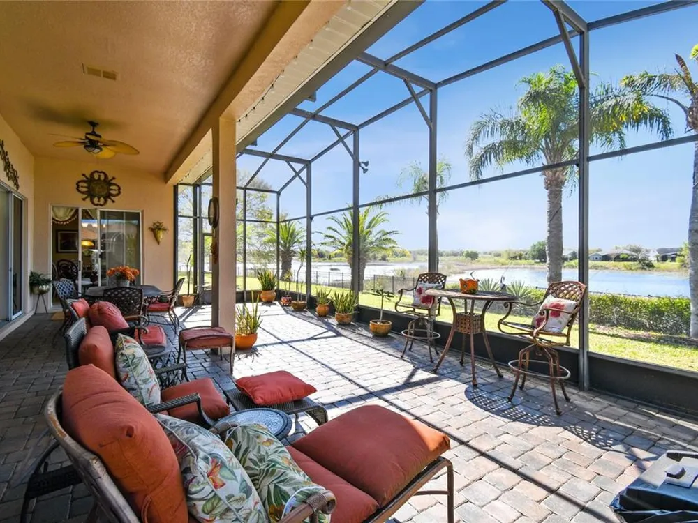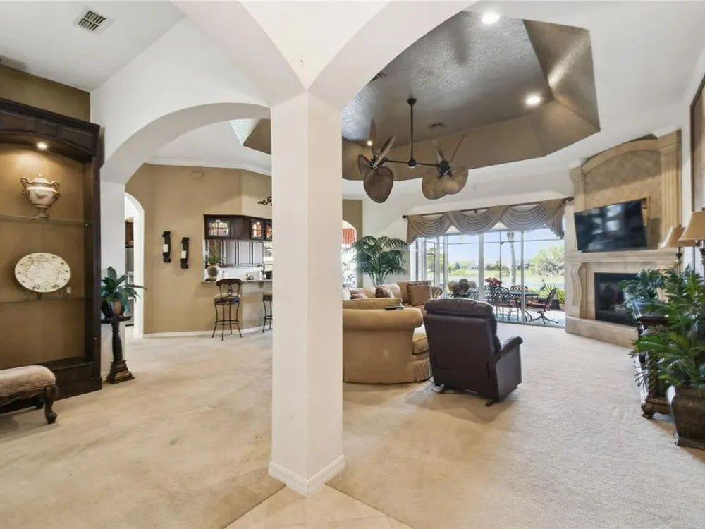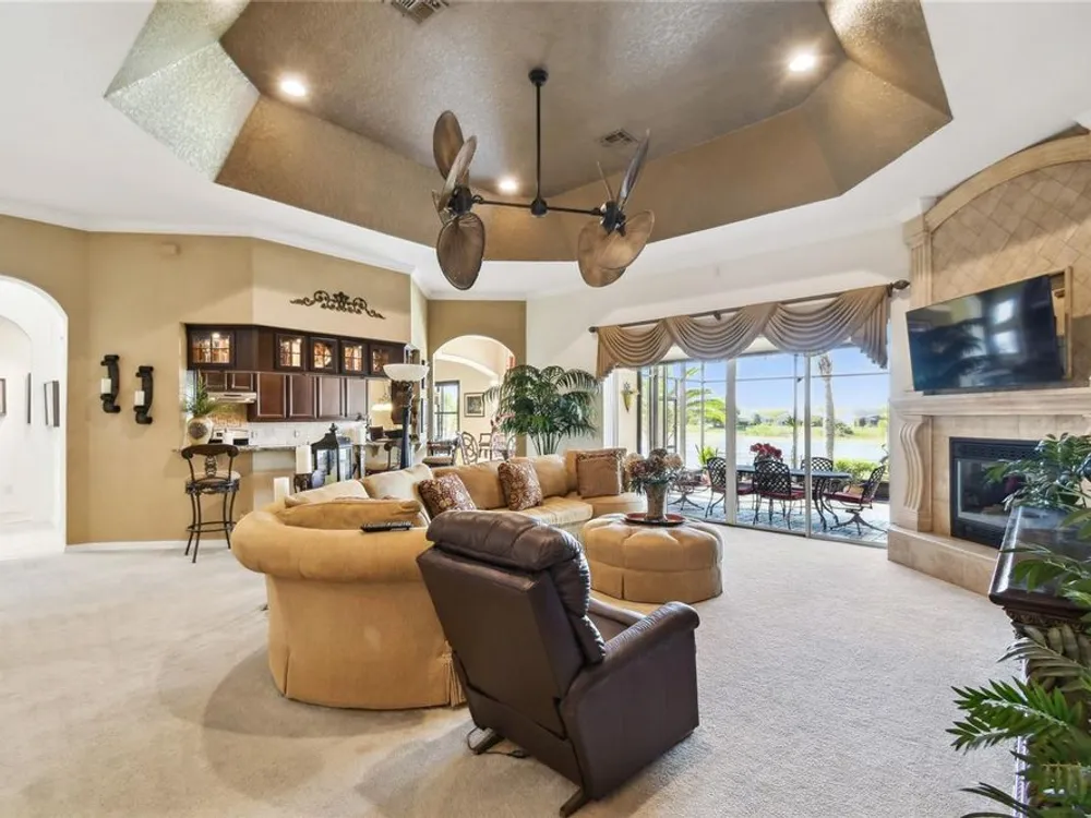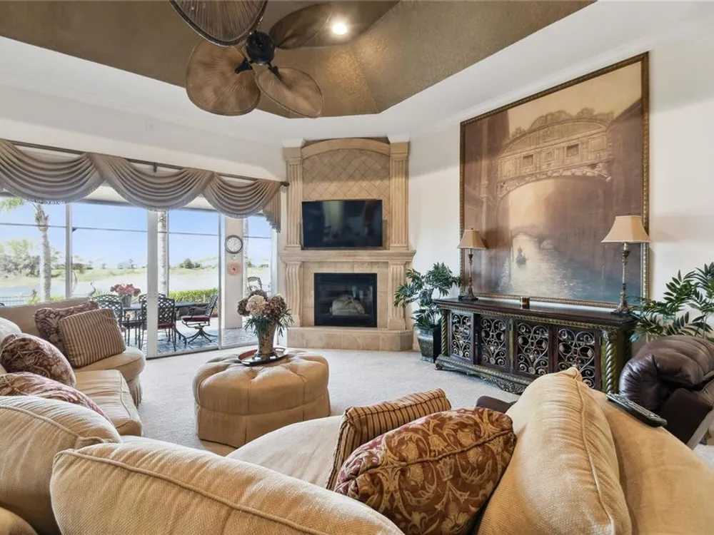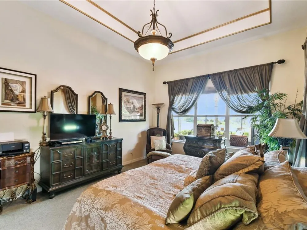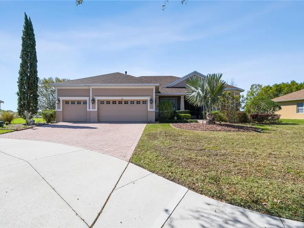 PRICE IMPROVEMENT! Lakefront Property with AMAZING VIEWS! As you walk through the front door your eyes will be drawn to the beautiful lake view offering ultimate privacy. This home features 2,532 square feet of living space with 3 bedrooms, 2.5 baths, game room and 3 car garage in a Cul-De-Sac nice quiet street. Built in 2006 on 0.31 acres in Groveland FL. This home features an open floor plan with crown molding, 14 foot ceilings in great room, custom made remote fireplace, custom built-in Murphy beds, a well designed kitchen with 42 inch cabinets for plenty storage with gas stove, bar height countertops for entertaining, granite countertops, stainless steel appliances, large kitchen pantry and laundry room.Take in the lake views from the spacious master bedroom with separate walking closets and ensuite bathroom with separate sinks, tub and shower. Roof less than 3 years old, Two brand new Lennox AC units just installed, brand new water heater, Fridge 3 years old, Dishwasher 1 year old, energy efficient double insulated windows, extra insulation and foil in the attic. This is your dream 55+ guard-gated trilogy community with resort style living. Community amenities include an indoor/outdoor pool, spa, Bar and Grill, basketball courts, tennis courts, corn hole courts, pickleball, bocci ball, fitness center, game rooms, billiard room, poker cards room, craft rooms, and so much more. The Magnolia Clubhouse also has fun activities like Karaoke nights, events, dances and a lot of entertaining shows. The HOA fee includes internet, lawn care, security system monitoring. ***As bonus enjoy wine tasting at your local Lakeridge Winery & Vineyards! Also Only 45 minutes away from Disney World In Orlando!****. ***View this home 24-hours a day with the 3D virtual tour****