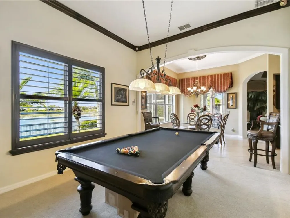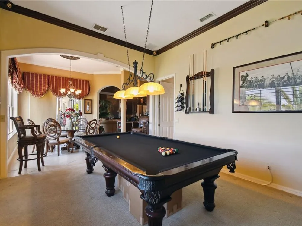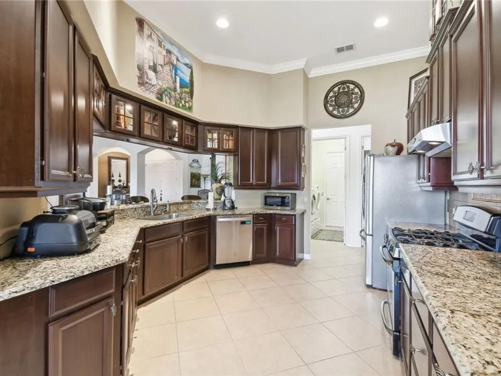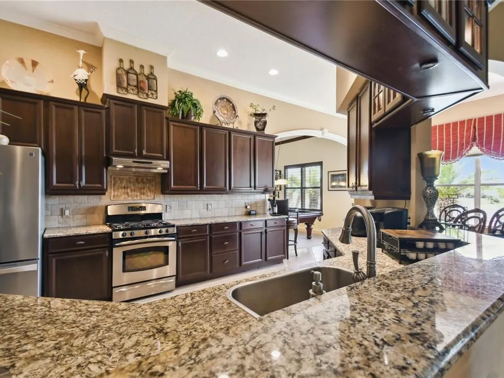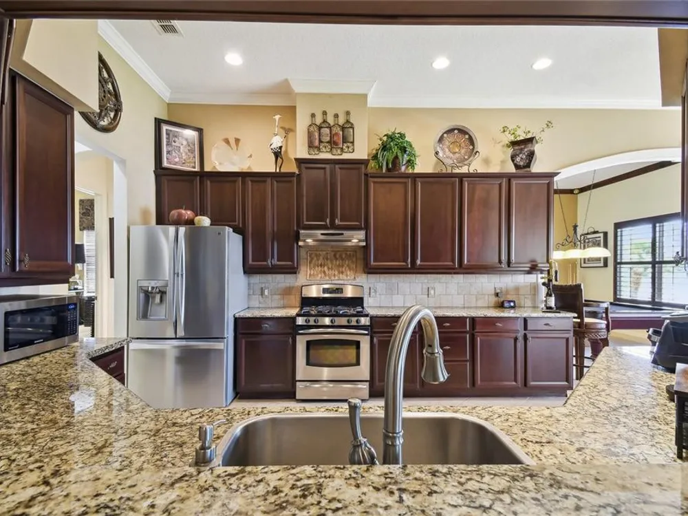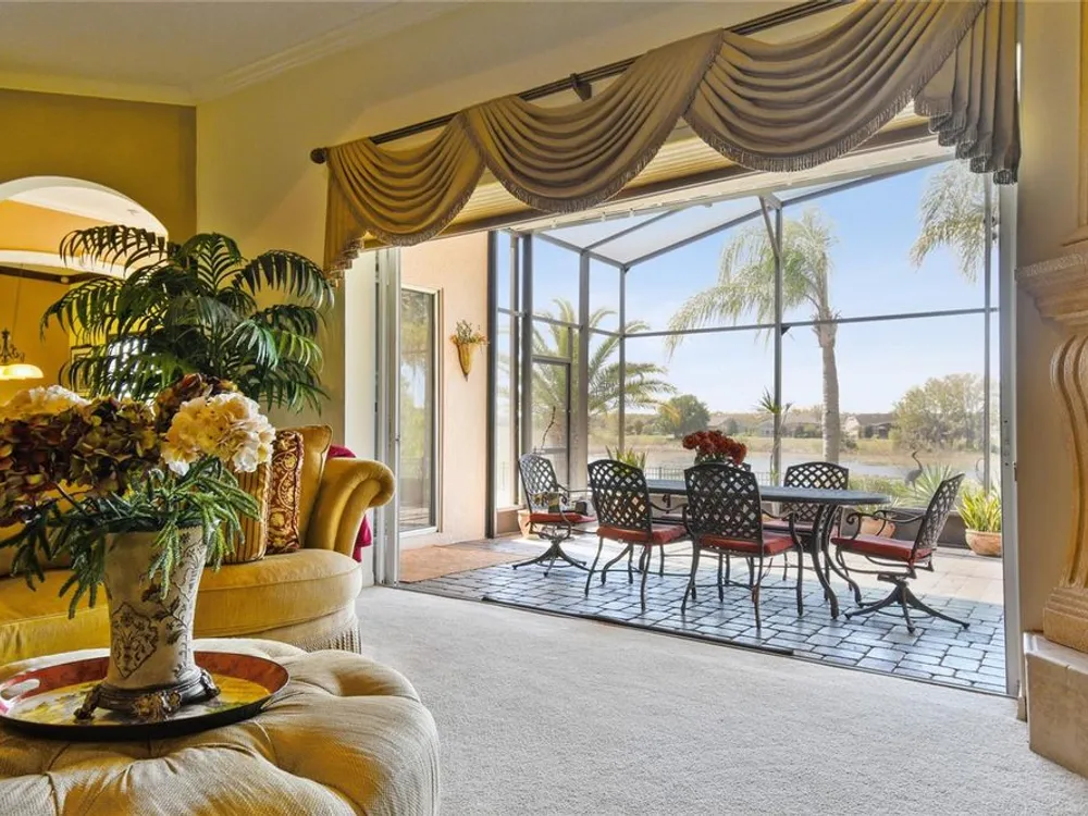 PRICE IMPROVEMENT! Lakefront Property with AMAZING VIEWS! As you walk through the front door your eyes will be drawn to the beautiful lake view offering ultimate privacy. This home features 2,532 square feet of living space with 3 bedrooms, 2.5 baths, game room and 3 car garage in a Cul-De-Sac nice quiet street. Built in 2006 on 0.31 acres in Groveland FL. This home features an open floor plan with crown molding, 14 foot ceilings in great room, custom made remote fireplace, custom built-in Murphy beds, a well designed kitchen with 42 inch cabinets for plenty storage with gas stove, bar height countertops for entertaining, granite countertops, stainless steel appliances, large kitchen pantry and laundry room.Take in the lake views from the spacious master bedroom with separate walking closets and ensuite bathroom with separate sinks, tub and shower. Roof less than 3 years old, Two brand new Lennox AC units just installed, brand new water heater, Fridge 3 years old, Dishwasher 1 year old, energy efficient double insulated windows, extra insulation and foil in the attic. This is your dream 55+ guard-gated trilogy community with resort style living. Community amenities include an indoor/outdoor pool, spa, Bar and Grill, basketball courts, tennis courts, corn hole courts, pickleball, bocci ball, fitness center, game rooms, billiard room, poker cards room, craft rooms, and so much more. The Magnolia Clubhouse also has fun activities like Karaoke nights, events, dances and a lot of entertaining shows. The HOA fee includes internet, lawn care, security system monitoring. ***As bonus enjoy wine tasting at your local Lakeridge Winery & Vineyards! Also Only 45 minutes away from Disney World In Orlando!****. ***View this home 24-hours a day with the 3D virtual tour****