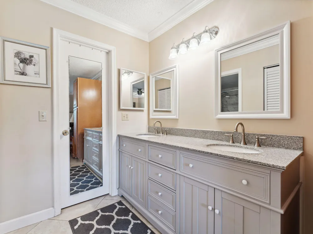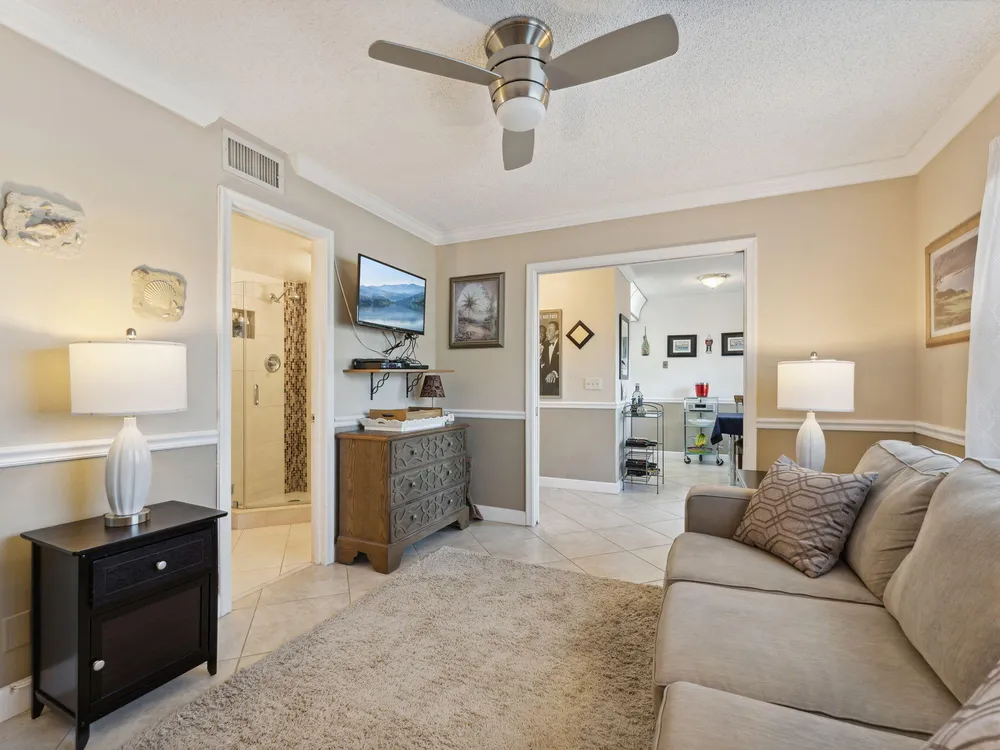 - Entry Level Living Area, Split Bedrooms, Walk-In Closet(s), Great Room, Living/Dining Room, Blinds, Impact Glass, Dual Sinks, Primary Downstairs, Separate Shower, Storm Shutters
