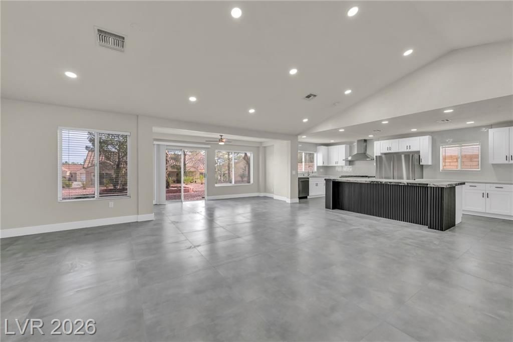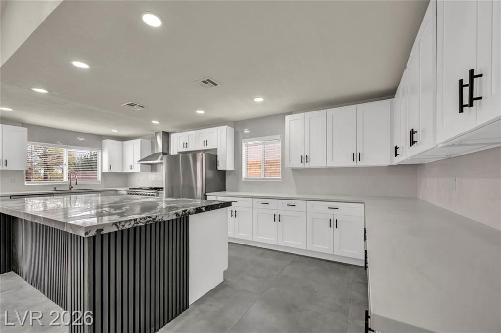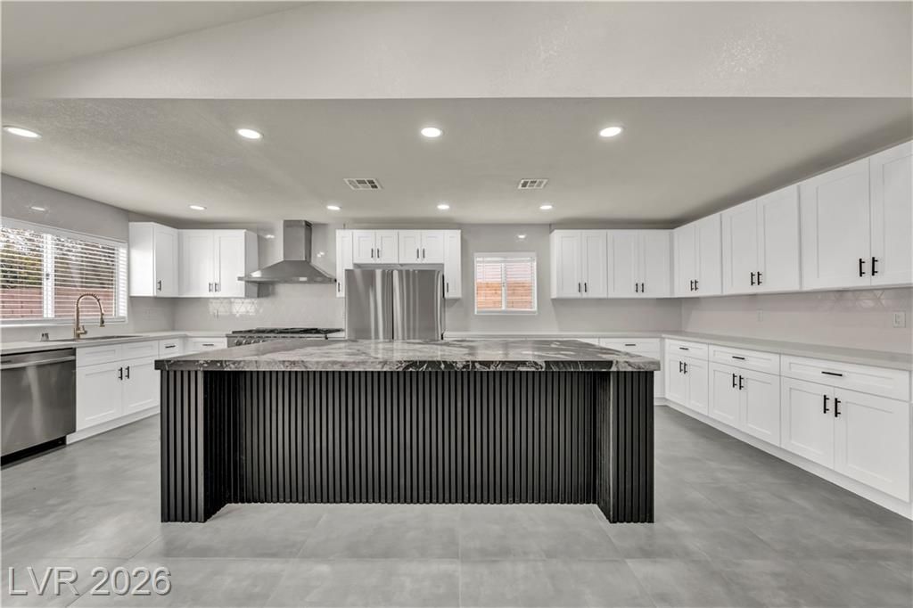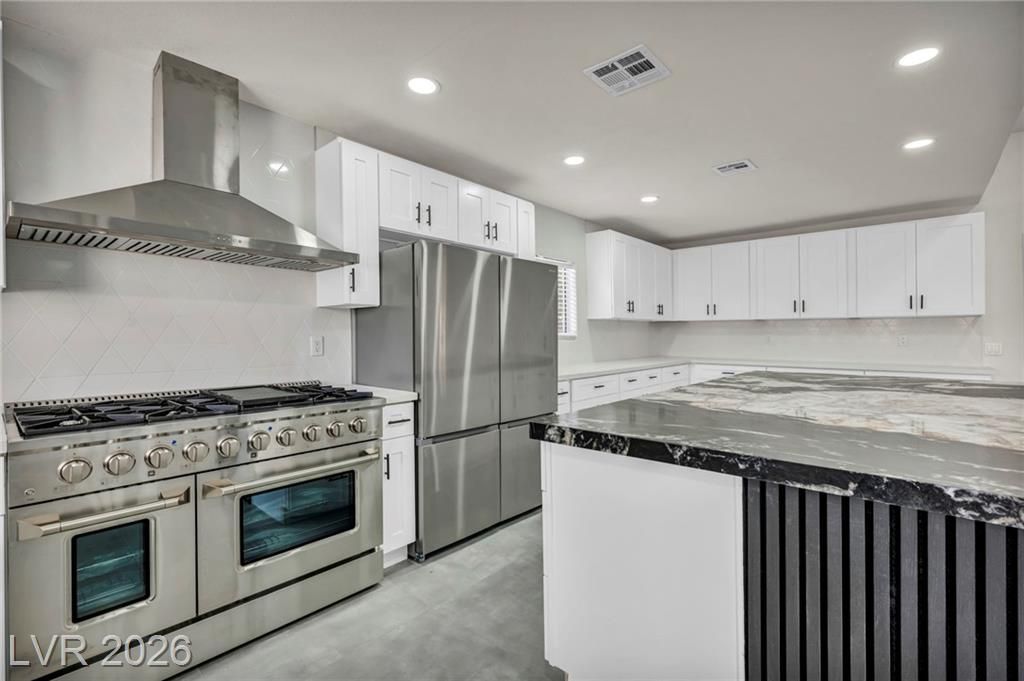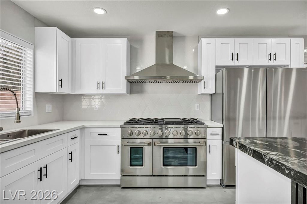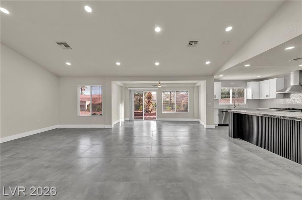 Welcome to Sun City Summerlin, This one-of-a-kind, top-of-the-line, fully upgraded home showcases luxury living at its finest. The designer open-concept floor plan centers around a stunning Italian extra-large marble island in a top-of-the-line gourmet kitchen featuring brand-new stainless steel appliances, oversized refrigerator, dishwasher, and a premium dual-fuel slide-in range with a gas cooktop and electric convection oven. An extra-large single-bowl sink with a drying area, gas hood, abundant custom cabinetry, High vaulted ceilings, recessed lighting throughout, luxury high baseboards, premium carpeting in bedrooms, ceiling fans, and generous walk-in closets, extra-large walk-in showers and dual vanities.Tankless water heater, screen door, finished garage flooring, and a brand-new, top-of-the-line oversized washer and dryer. Thoughtfully designed, fully renovated, and truly move-in ready — this luxury home stands in a class of its own. This house looks even better in person!