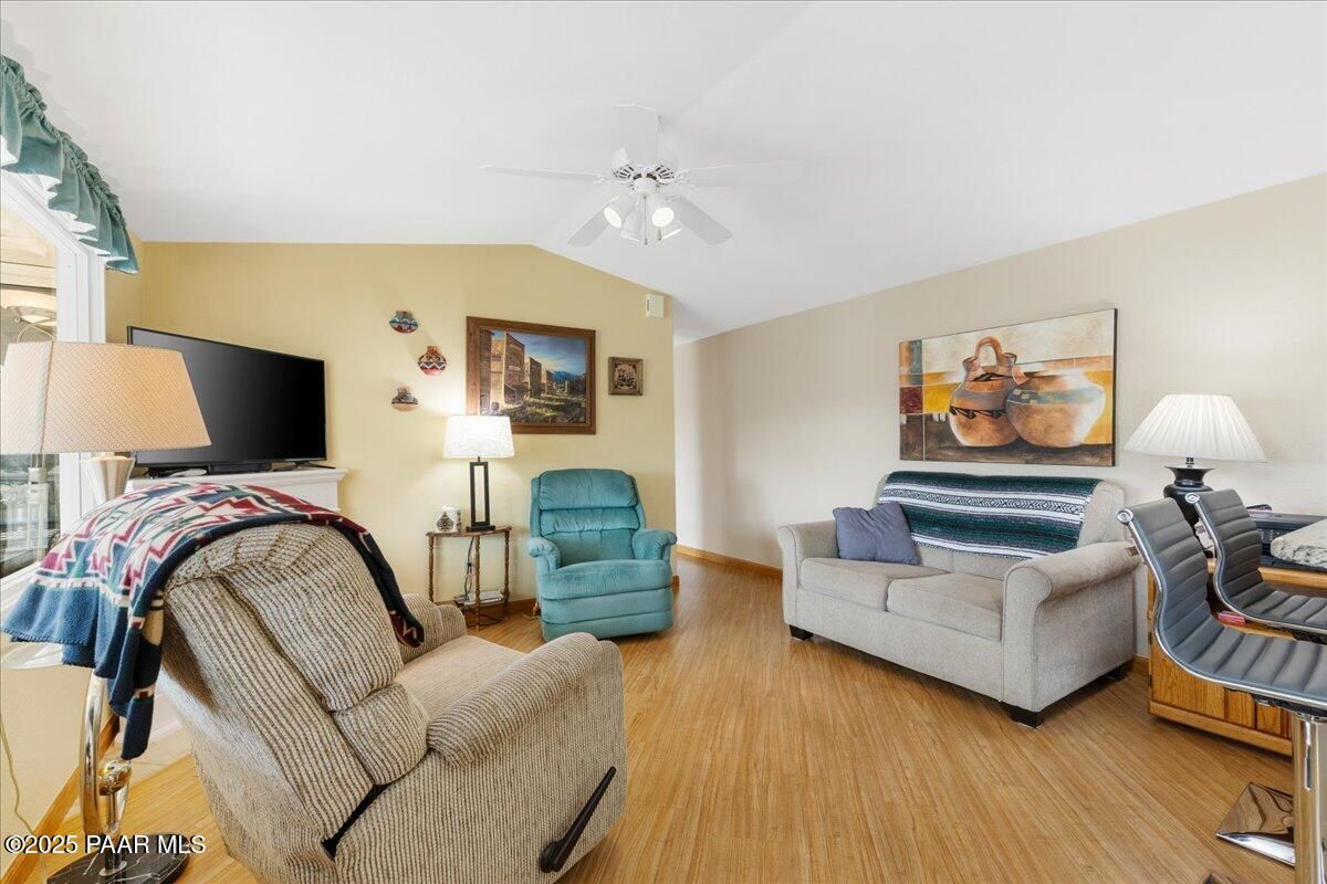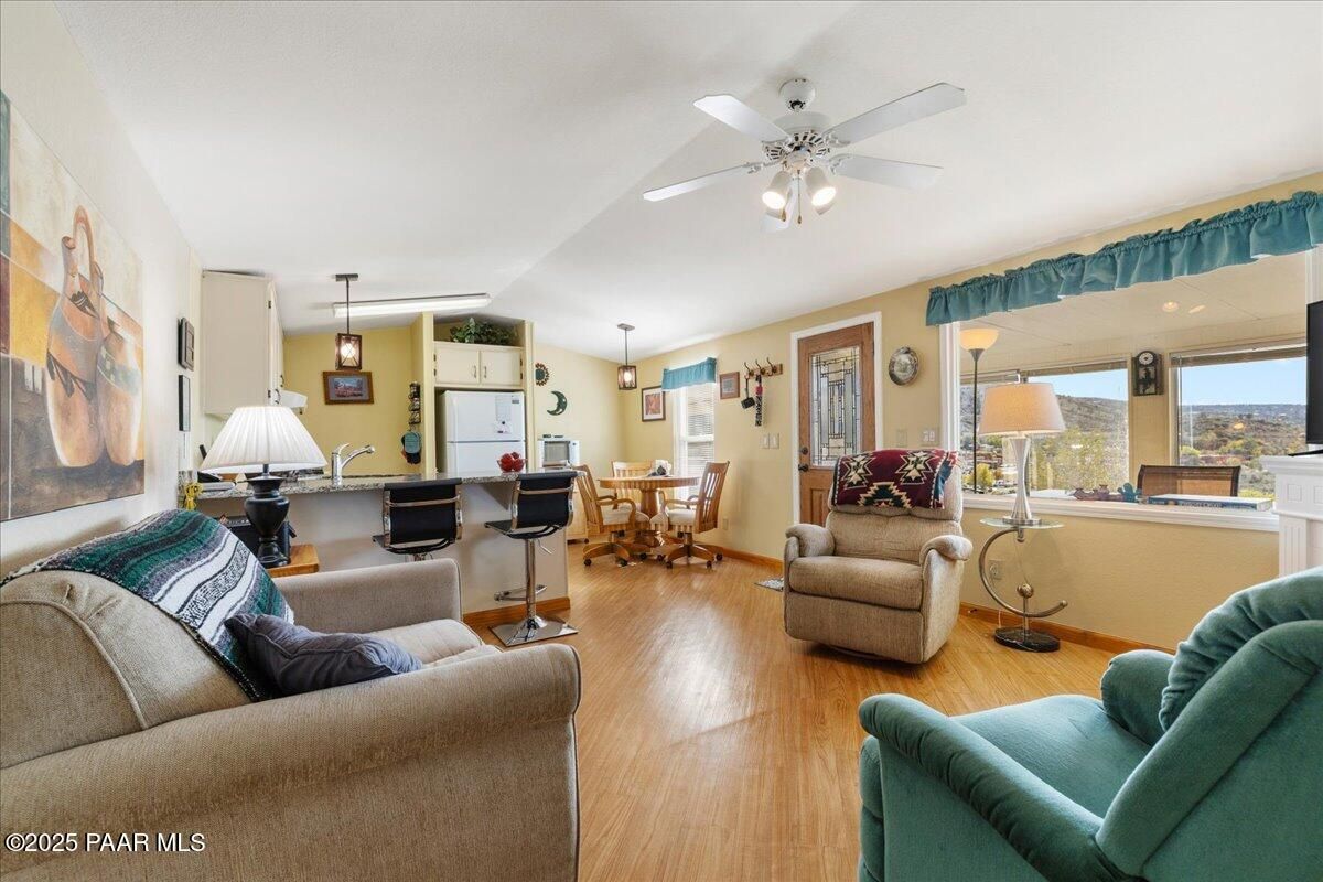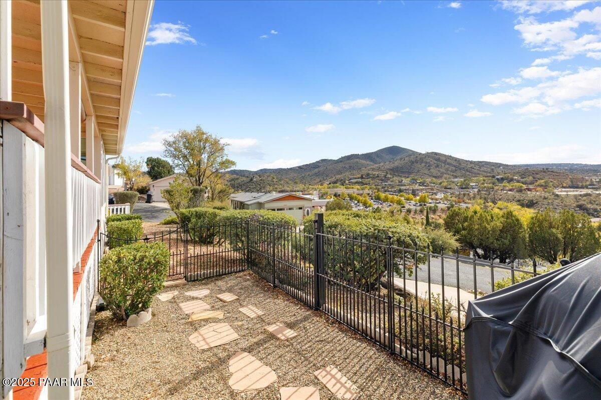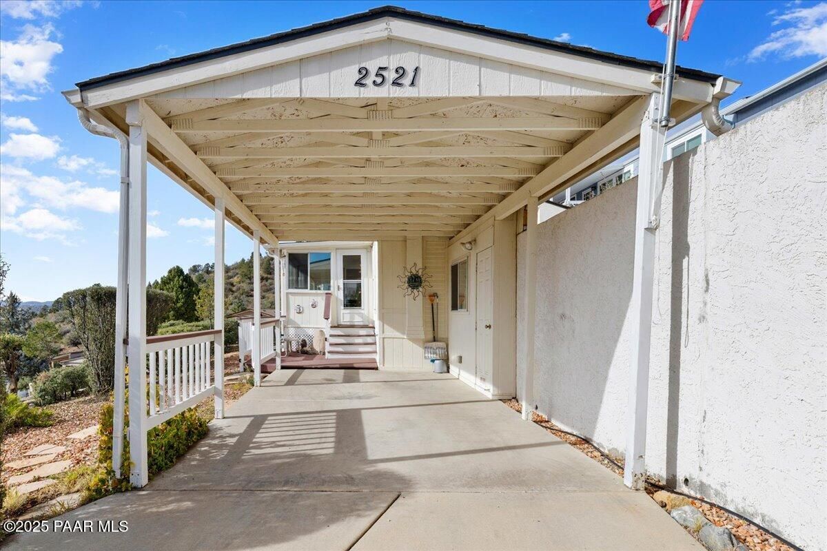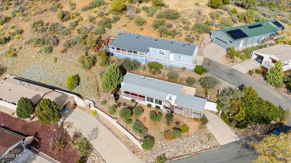 VIEWS - VIEWS & MORE VIEWS! Excellent Opportunity - Full or Part-Time Getaway in Prescott Canyon Estates, a 55+ Manufactured Home Community w/wonderful amenities + YOU OWN THE LAND! Relax & start enjoying all that Prescott has to offer as home conveys completely furnished - from small appliances to artwork on walls. Beautifully cared-for 672sf single wide in PCE w/2 Beds 1 Bath plus 112sf enclosed, heated & cooled, AZ Room w/electricity, insulation & Thermopane windows AND 105sf Workshop-Storage w/electricity & skylight off a 1 car Carport +++ 160sf covered Deck & 74sf open Trex Deck ... There's even a run [& small fenced area] for your furry friend. Most windows are dual pane, Heating replaced in 2024, Roof replaced in 6/19, updated storm & front doors, updated vinyl plank flooring in living areas [including AZ Room] & Berber carpet in Bedrooms. Eat-in Kitchen w/Granite countertops ('18) + snack bar, all appliances included & most have been replaced: Ref in '21, dishwasher '20, range hood '16, disposal '12, stack washer/dryer '23. MOVE-IN-READY so you can relax & enjoy PANORAMIC VIEWS or spend quality time w/neighbors & friends at the Clubhouse. Prescott Canyon Estates is a 55+ Community w/approximately 255 modular homes & YOU OWN THE LAND. Sitting at 5800 elevation on the East edge of Prescott. County location w/Prescott mailing address + streets are maintained by the HOA. Prescott City water & sewer, underground utilities + the private trash is included in HOA fee. Beautiful treed setting w/homesites set in the vegetated rolling hills of Prescott. Nicely updated Clubhouse w/fitness, indoor pool, tennis/pickleball, billiards, spa, shuffleboard, community kitchen, library, games area +++ other gathering spaces. Convenient location to shopping, dining & downtown. Ideal for Full or Part-Time Living ... Rental restrictions in place & pet policy changed over the last few years. EASY RETIREMENT LIVING ... ENJOY AN ACTIVE LIFESTYLE in PRESCOTT, AZ - EVERYBODY'S HOMETOWN!