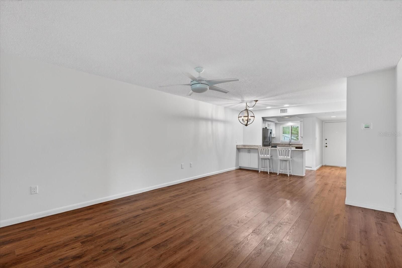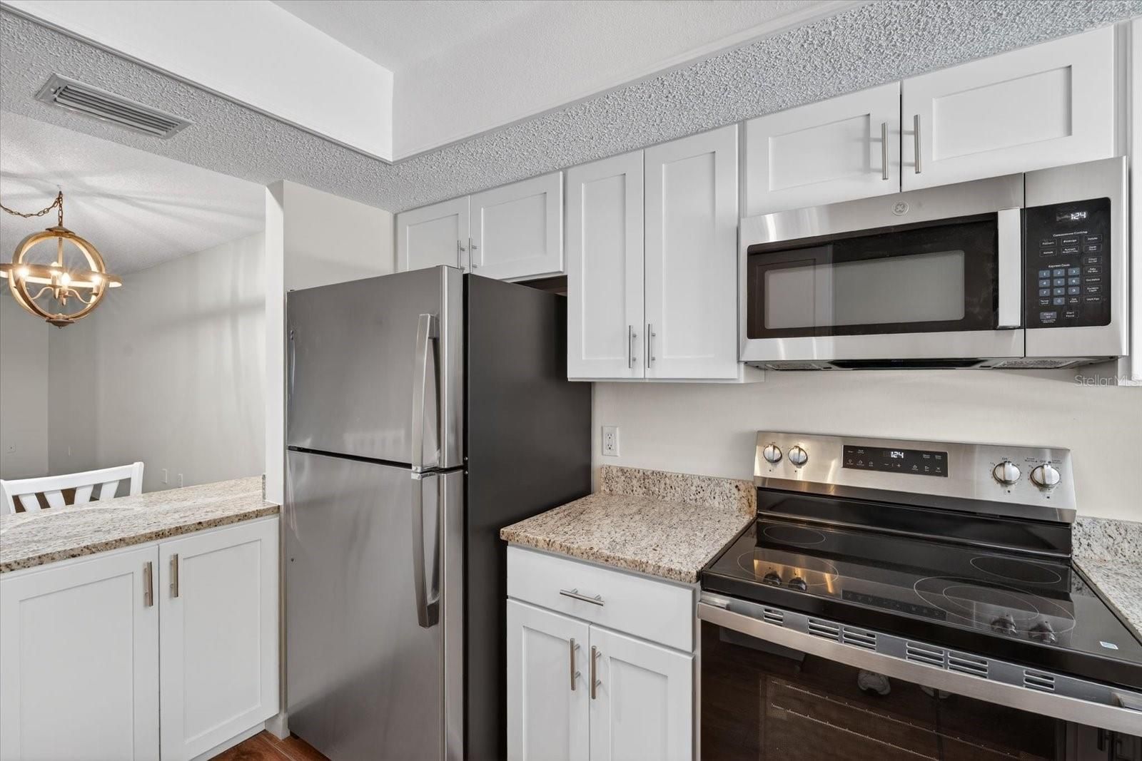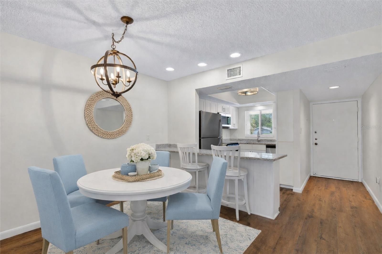 *Some the the photos have been virtually staged!* Welcome to Easy Florida Living in this beautifully updated and move-in-ready condo, ideally located within a desirable 55+ community surrounded by lush greenery and open grounds. Affordably priced and designed for comfort, this is the perfect place to enjoy a relaxed, maintenance-free lifestyle. From the moment you arrive, you’ll appreciate the convenience of covered parking and the inviting, courtyard-style setting. Step inside to discover an updated and open floor plan featuring stylish wood-look flooring throughout and a neutral coastal palette that complements any décor. The brand new updated kitchen offers crisp wood cabinetry, granite countertops, stainless steel appliances, and a breakfast bar that opens seamlessly to the dining and living areas—ideal for both everyday living and entertaining. The spacious dining room flows effortlessly into a flexible living area and additional bonus space, perfect for a home office, reading nook, or sunroom. Large sliding glass doors bring in natural light and provide peaceful views of the surrounding greenery. Both bedrooms are generously sized with ample closet space, while the bathrooms have been tastefully updated with modern finishes, including upgraded vanities and beautifully tiled walk-in showers. Enjoy resort-style amenities just steps from your door, including a sparkling community pool with plenty of space to relax and unwind under the Florida sun. The community’s mature landscaping and open green spaces create a tranquil environment while still being conveniently located near shopping, dining, and major roadways. Whether you’re seeking a full-time residence or seasonal retreat, this condo offers comfort, style, and an affordable opportunity to enjoy the Florida lifestyle.