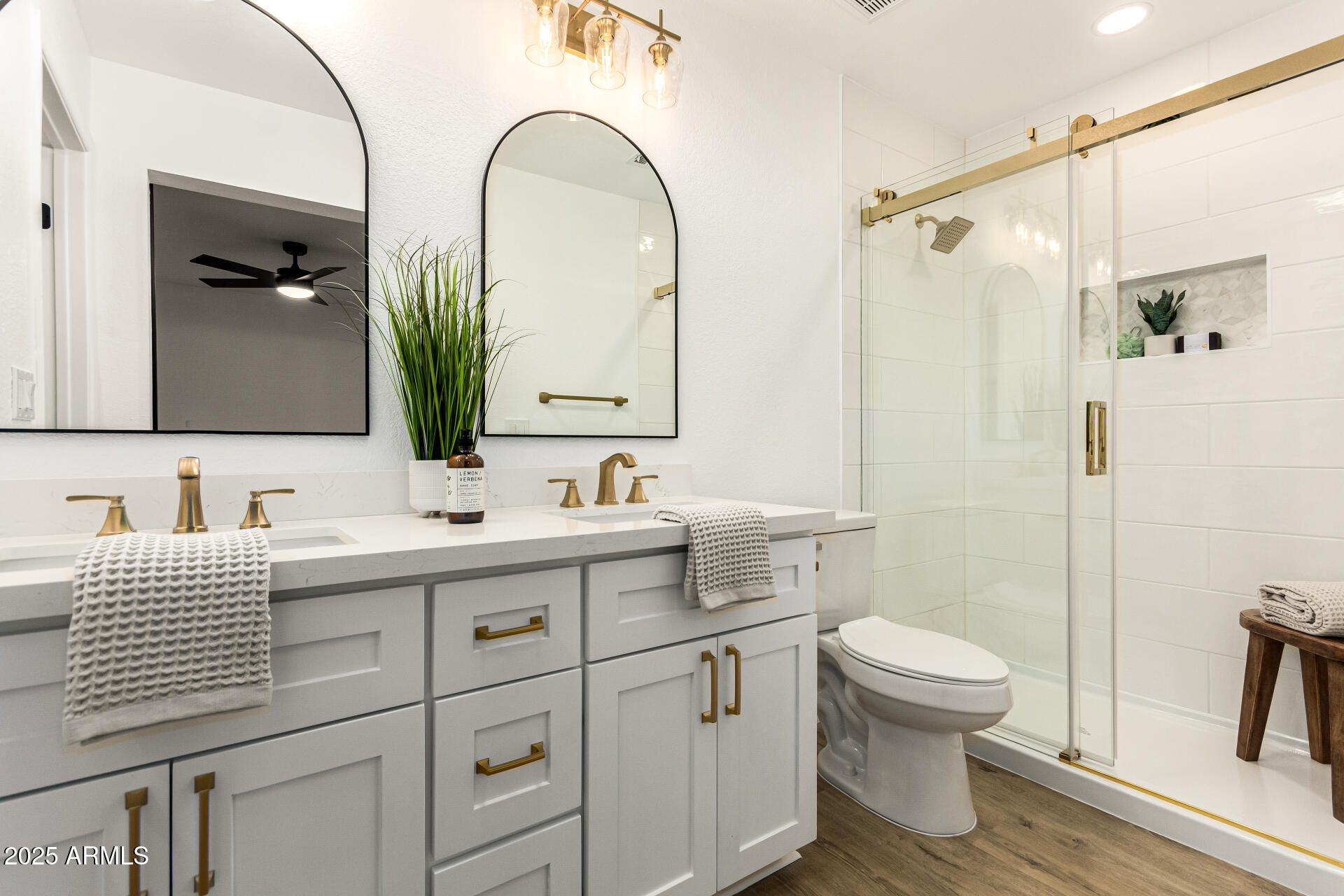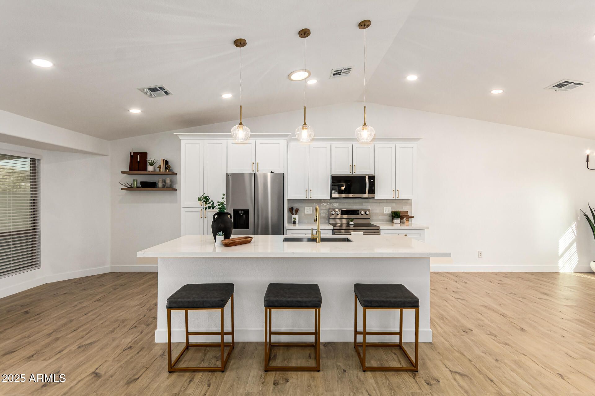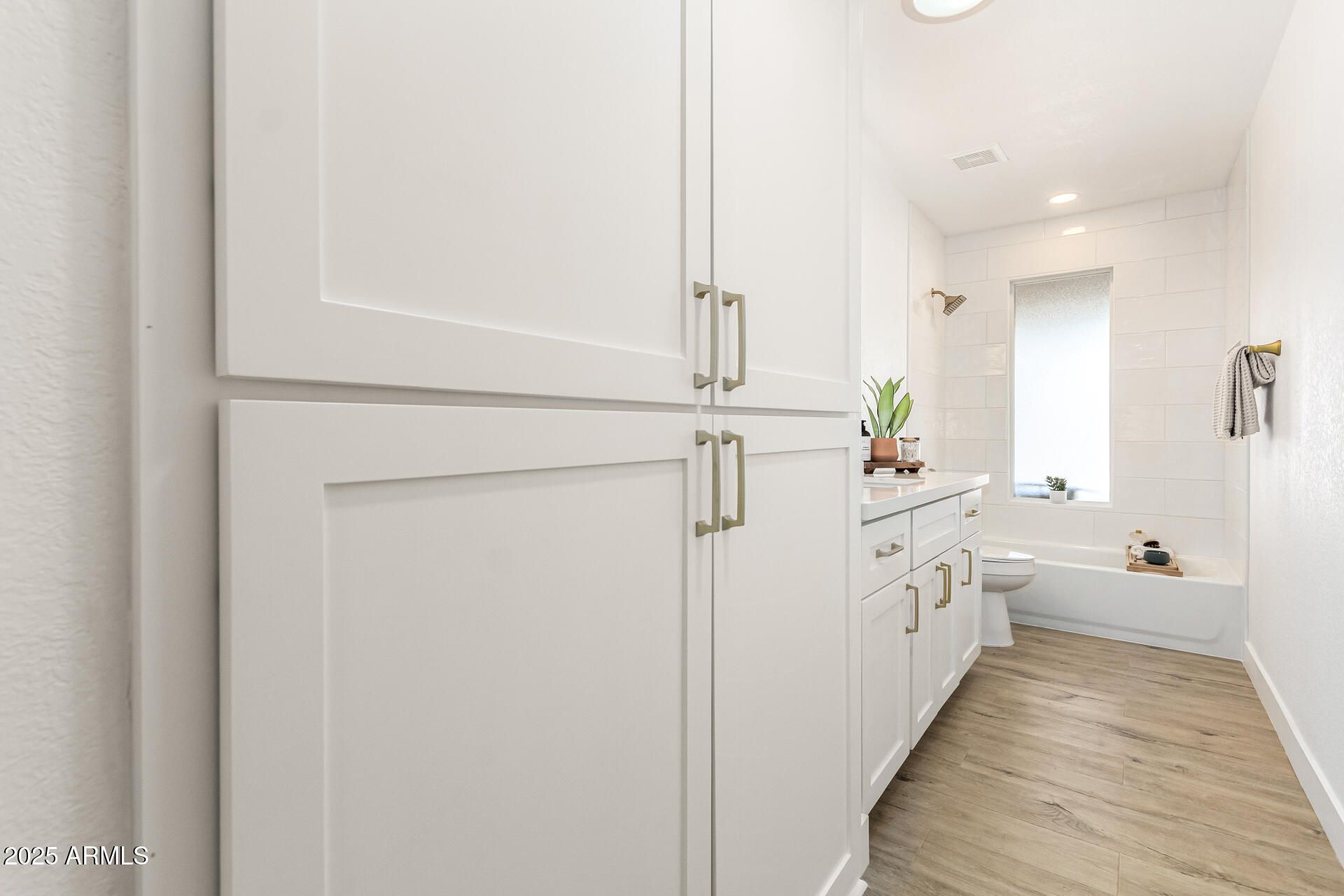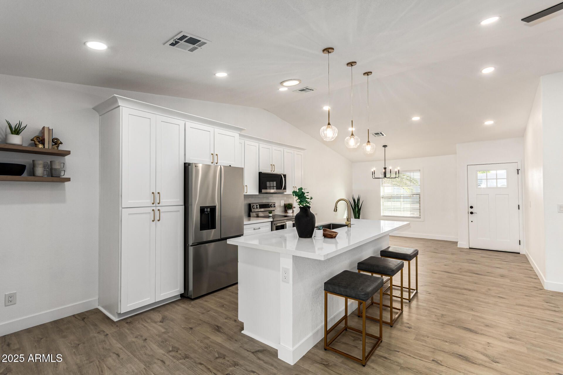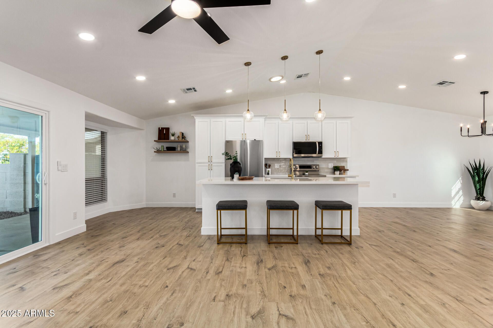 Welcome to your dream retreat in the Premier Active Adult Community of Sun Lakes. Perfectly situated on an inviting cul-de-sac, this impeccably remodeled 3-bedroom, 2-bath home blends modern design with comfort and functionality. Step inside to discover an open-concept living space featuring vaulted ceilings, a brand-new kitchen with soft-close white shaker cabinets, a spacious island ideal for entertaining, quartz counter tops, stainless steel appliances, and recessed lighting that brightens every corner. The pale oak luxury flooring adds warmth and elegance, while fresh paint and new ceiling fans create a crisp, move-in-ready atmosphere. Both bathrooms have been thoughtfully re-imagined with designer finishes—the perfect spaces to refresh and recharge. Outside, enjoy your private low-maintenance backyard and spacious covered patio [ideal for morning coffee, sunset dinners, or simply unwinding in your own oasis.] But the real magic is in the Sun Lakes lifestyle. Here, you'll enjoy all the amenities Sun Lakes has to offer including exclusive access to championship golf courses, multiple pools, fitness center, pickleball, tennis, bocce, billiards, and an abundance of social activities and clubs. From on-site dining and live entertainment to game nights and community celebrations, every day offers something new to explore. This isn't just a new home; it's a membership to the resort lifestyle you've worked for. Don't let this rare move-in-ready opportunity pass you by and start living the dream in Sun Lakes!