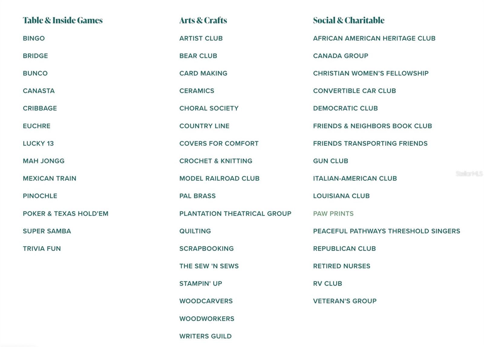 There are plenty of activities available in Plantation at Leesburg. Here is a sample of some of the clubs, activities and classes offered here.