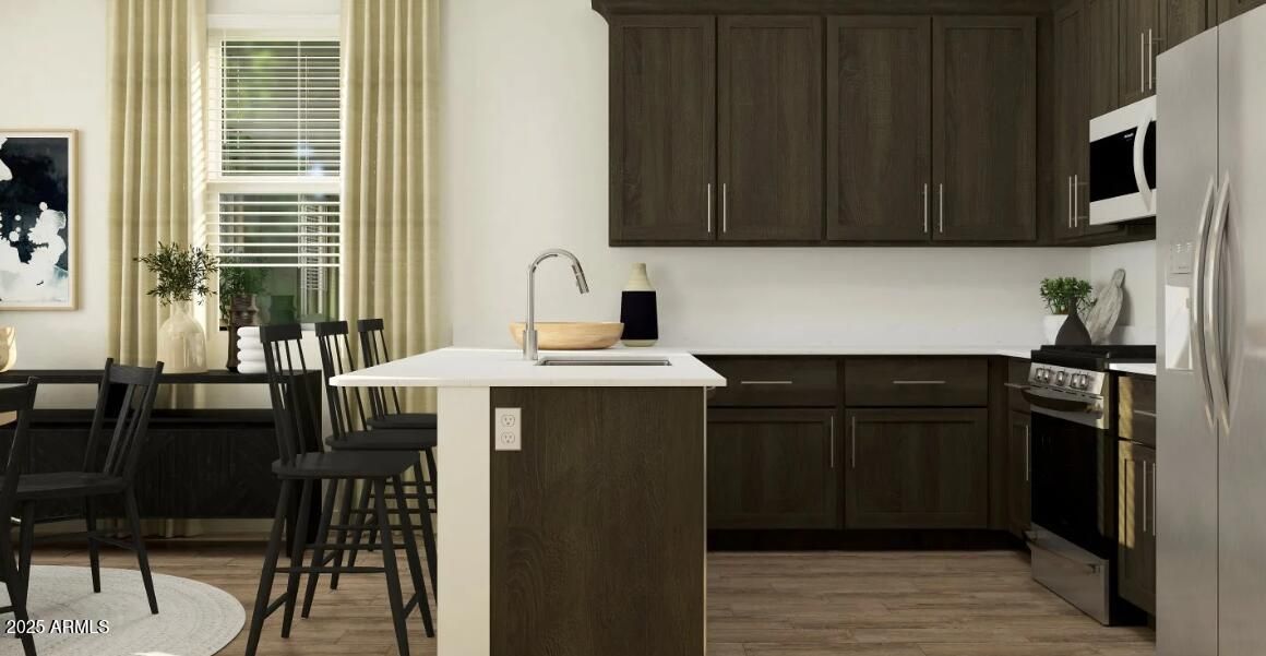 Seller will provide a credit towards a rate buydown and closing costs with preferred lender. Ask us how to save thousands over the life of your loan. Asante Heritage is a gated 55+ active adult community located in Surprise, AZ! Surrounded by scenic mountain views, this community offers convenient access to local shopping, dining, and recreational activities. Residents enjoy a vibrant lifestyle with resort-style amenities including a pool, pickleball courts, putting course, fitness center, clubhouse, and more. This home comes fully equipped with all brand-new stainless steel kitchen appliances and is complete with 12X24 tile flooring, elegant quartz countertops, and modern cherry slate cabinetry. A copy of the public report is available on the ADREs website. Photos are of model home.