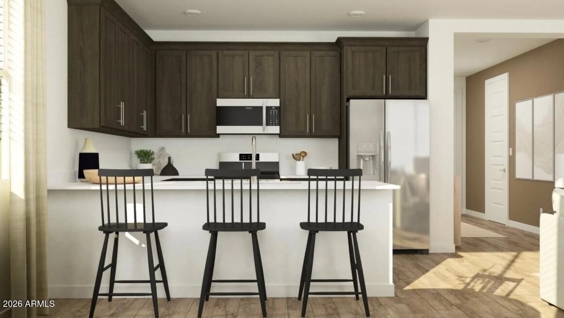 Seller will provide a credit towards a rate buydown and closing costs with preferred lender. Ask us how to save thousands over the life of your loan. Asante Heritage is a gated 55+ active adult community located in Surprise, AZ! Surrounded by scenic mountain views, this community offers convenient access to local shopping, dining, and recreational activities. Residents enjoy a vibrant lifestyle with resort-style amenities including a pool, pickleball courts, putting course, fitness center, clubhouse, and more. This home comes fully equipped with all brand-new stainless steel kitchen appliances and is complete with 12x24 tile flooring, elegant quartz countertops, and modern maple linen cabinetry. Photos are of a model home. A copy of the public report is available on the ADREs website.