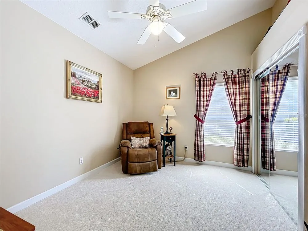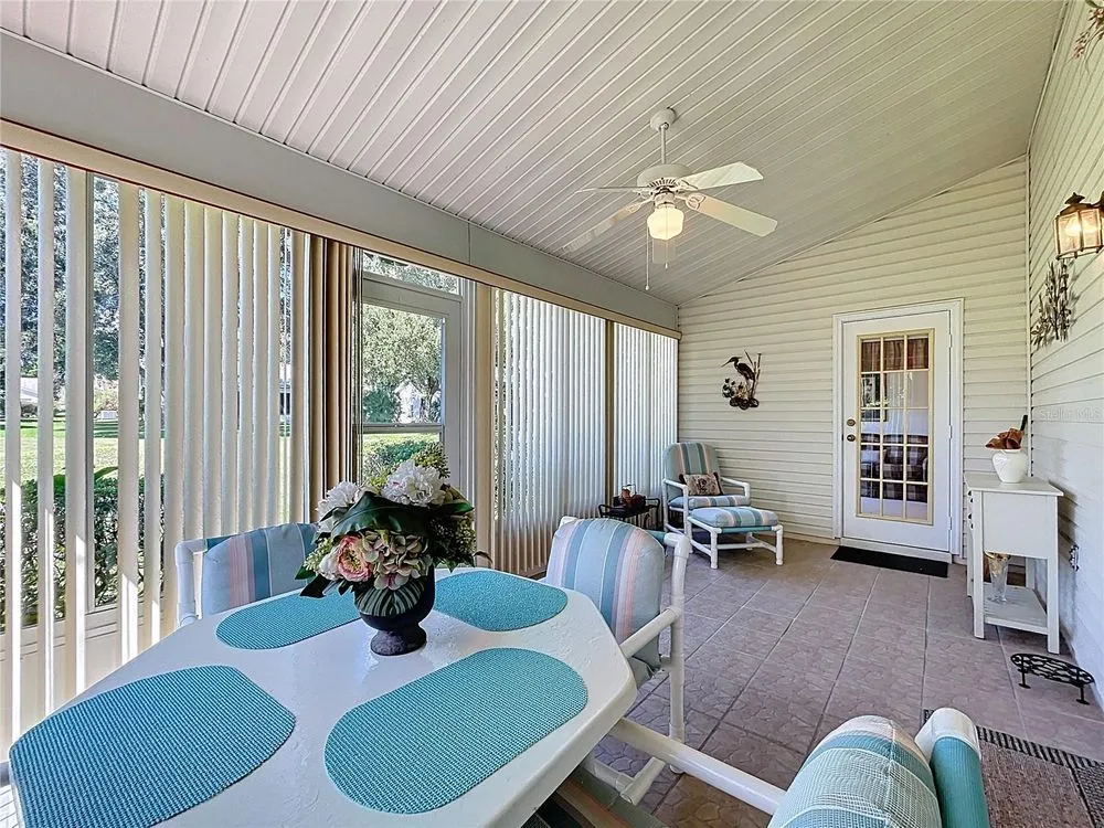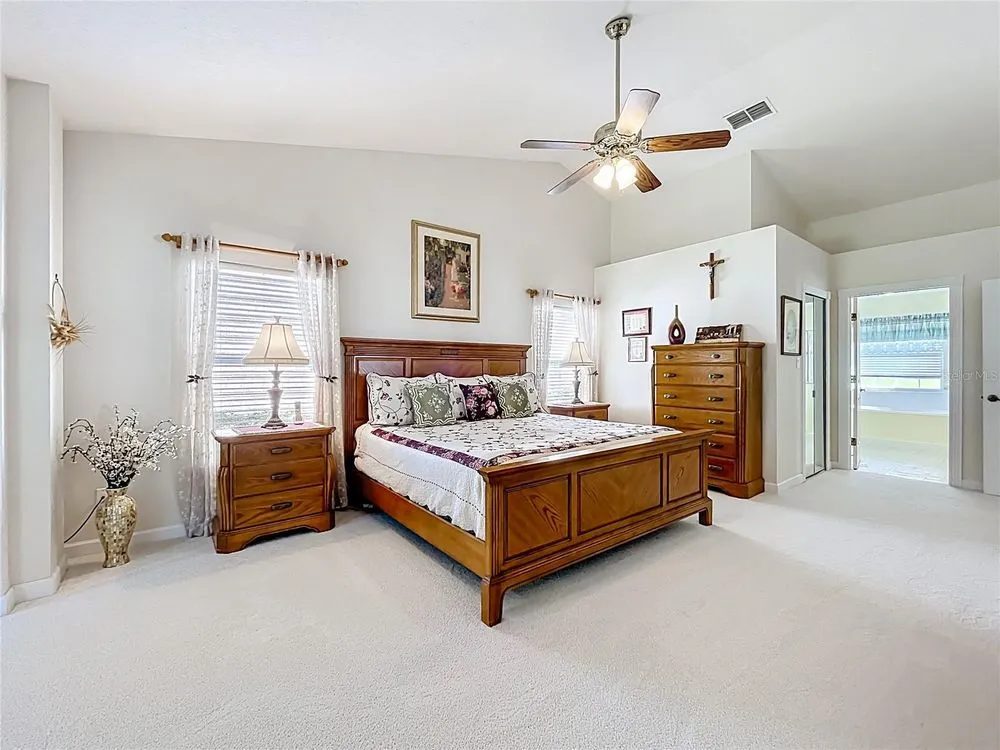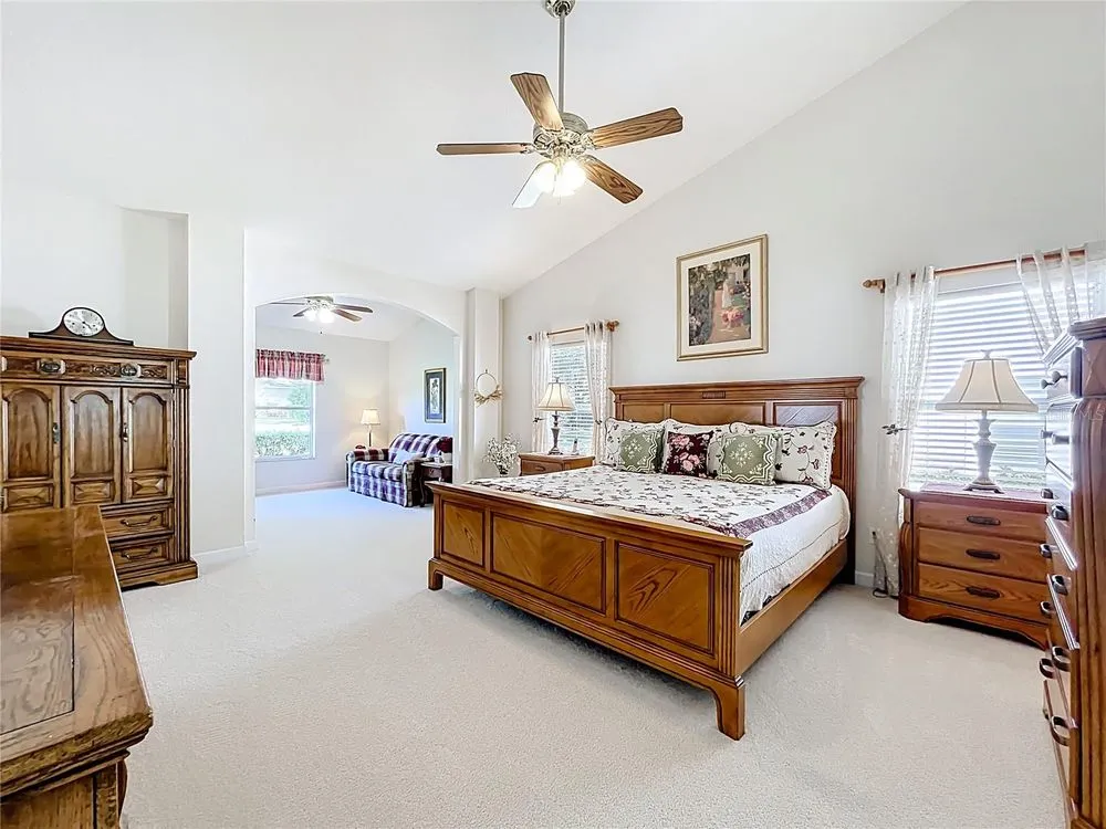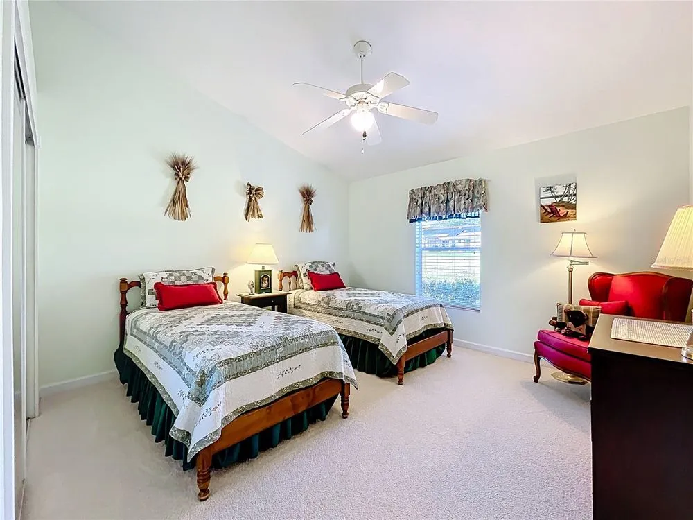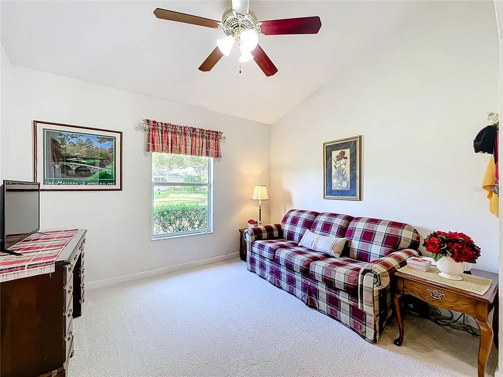 Wonderful MOVE-IN READY FORMER MODEL home in the GUARD GATED Plantation at Leesburg, a 55+ community. The home has 3 bedrooms and 2 full baths. The floorpan is open and spacious with vaulted ceilings. Enjoy the BRAND NEW CARPET in all bedrooms, and hardwood and ceramic tile in the main areas. Enjoy the Primary Suite with large sitting room attached. The enclosed Florida Room has great golf course views. It also features a retractable screen for the garage. This house is located directly on the 17th TEE of the Otter Creek Golf Club, one of TWO GOLF COURSES in The Plantation at Leesburg. This house is positioned at the TEE AREA, so you don't have to worry about stray golf balls hitting your house! The ROOF was REPLACED in 2021. Transferrable MASSEY TERMITE BOND in place since 2014. This established quiet 55+ community is loaded with amenities and activities, with VERY LOW HOA Fees.