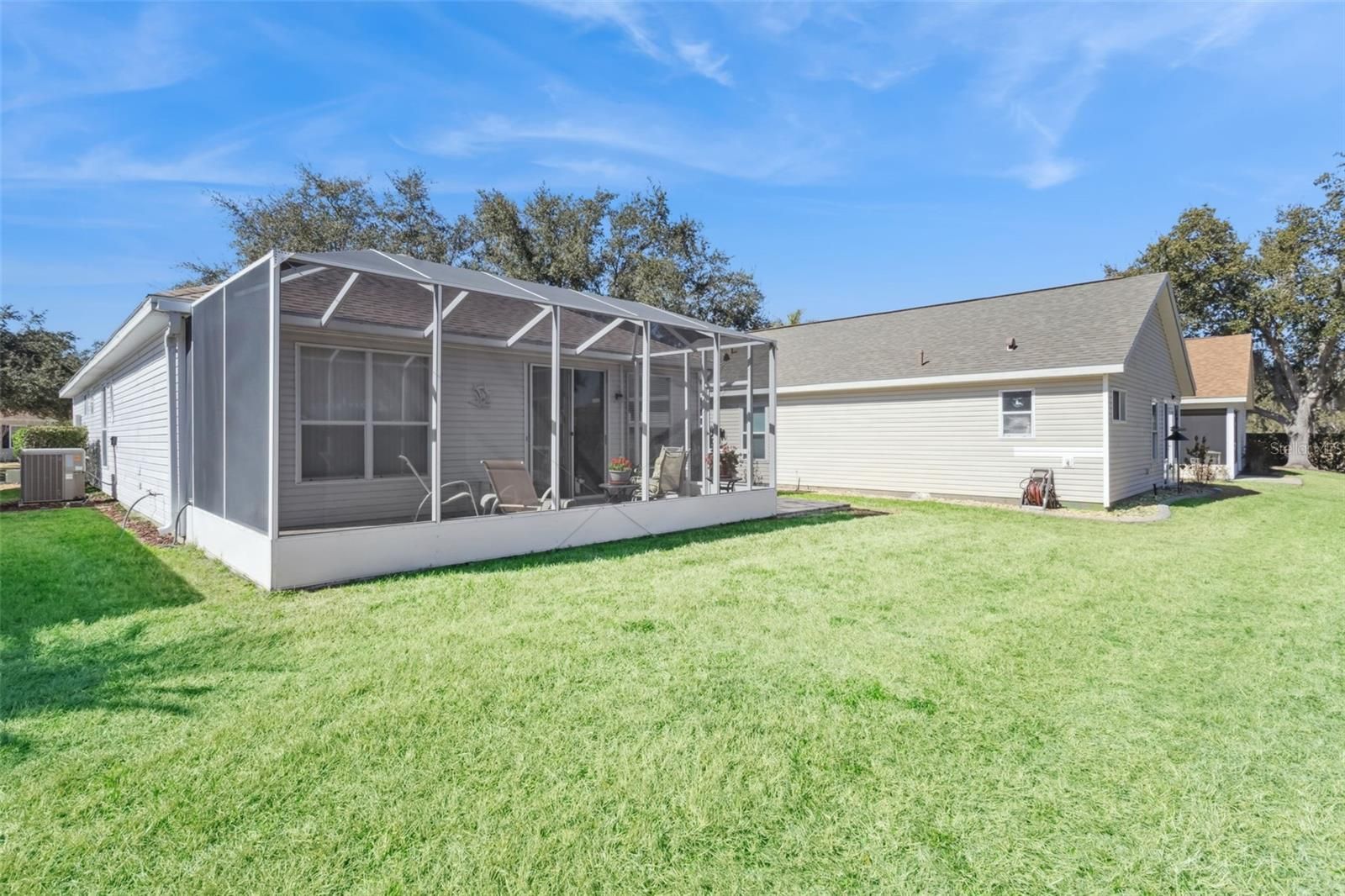 Welcome to this beautifully updated 2 bedroom 2 bathroom plus den/office, 2 car garage home located in a vibrant gated 55 plus golf course community. Home features updated kitchen, inside laundry room, spacious great room, large walk-in closet in master bedroom. This floor plan provides ample space for living and entertaining, however the star of this home is its outdoor living area that includes a 12x23 screened birdcage, with a brick paver floor that adds a certain amount of class to this outdoor entertaining area. It's a private area for you to enjoy the weather, grow plants, relax and grill and chill. Also unique about this home is that the guest room has a screened porch accessed by French doors for private relaxing area.garage has a power screen door. This enclave of golf course homes enjoys a special ambiance in their community. Yards are maintained, shrubs are trimmed, homes are power washed all under the direction of the Golfview HOA. You don't have to worry about keeping up your property exterior. Golfview is always active with luncheons, happy hour socials, golf groups,pool parties, and other social activities.The Plantation at Leesburg offers 36 holes of golf, 3 pools,pickleball,softball,theatre groups, musicals, on site restaurant, bocce ball, tennis, card clubs, craft clubs. Everyone can find their ZEN here in the Plantation. The main clubhouse the Manor will remind you of Tara Plantation. The landscaping is old Florida with an abundance of large oak trees with moss hanging off the branches, shrubbery perfectly manicured and small ponds thru out this 5600 resident community. Lake county is the safest place in Florida from hurricanes. Located 45 miles west of Orlando, out of the hub bub and everyday traffic, but close enough to access the magic in Orlando. Beaches? no problem 1 hour to either coast. Come live the good life. Roof replaced in 2017, full system HVAC system change out ($39,000) in 2017.