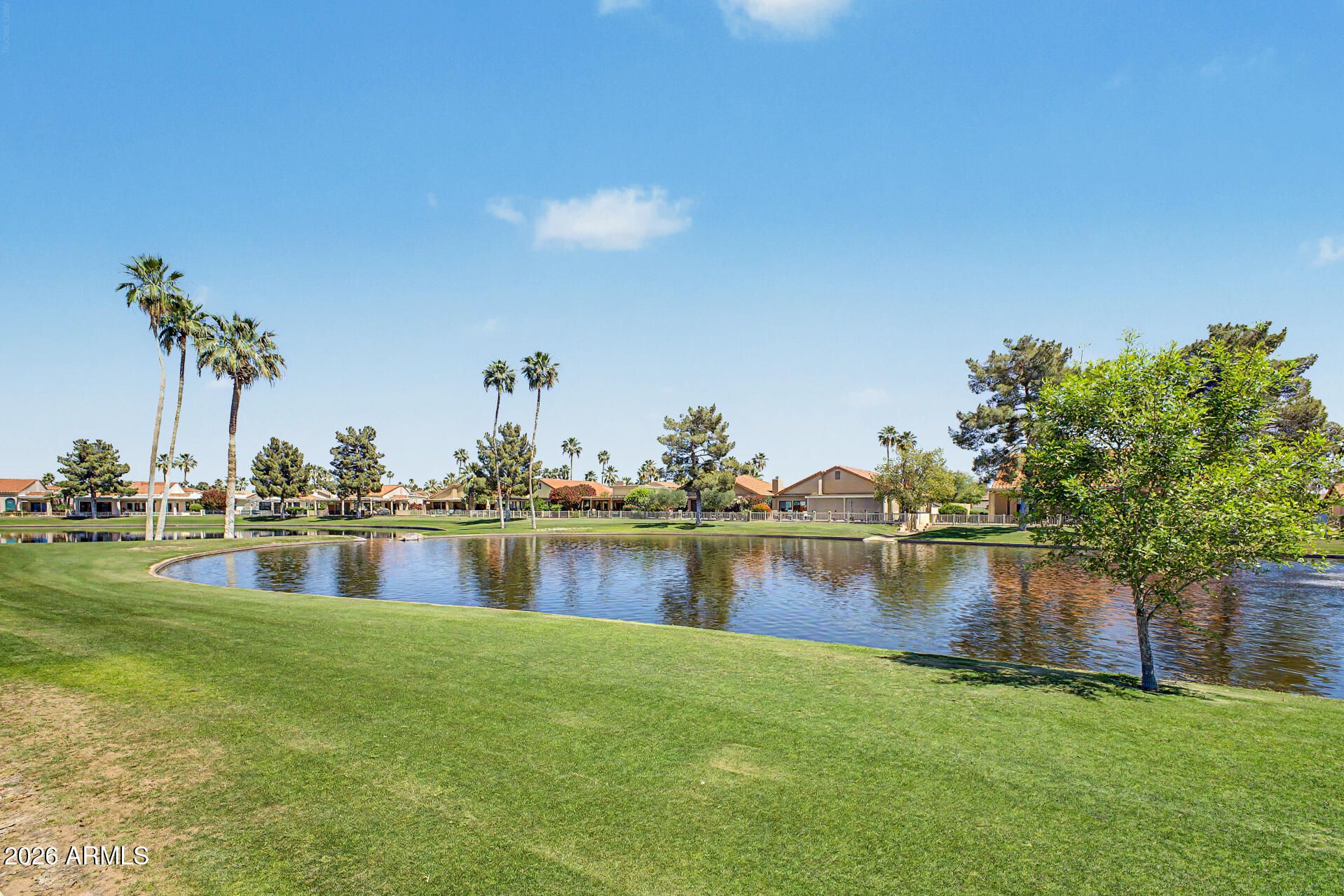 Tucked away on a quiet cul-de-sac, in the highly sought-after active adult community of Cottonwood/Palo Verde at Sun Lakes, this beautifully situated 2 bedroom + den home offers the perfect blend of comfort, privacy, and scenic views. Enjoy serene waterfront living with the home backing to a picturesque community lake- ideal for relaxing mornings and peaceful Arizona sunsets. Inside you'll find a spacious open floor plan. The versatile den can be used as an office, hobby space or guest area. Located in one of Sun Lakes' communities, residents enjoy access to golf, fitness centers, pools, clubs, and a vibrant social lifestyle.