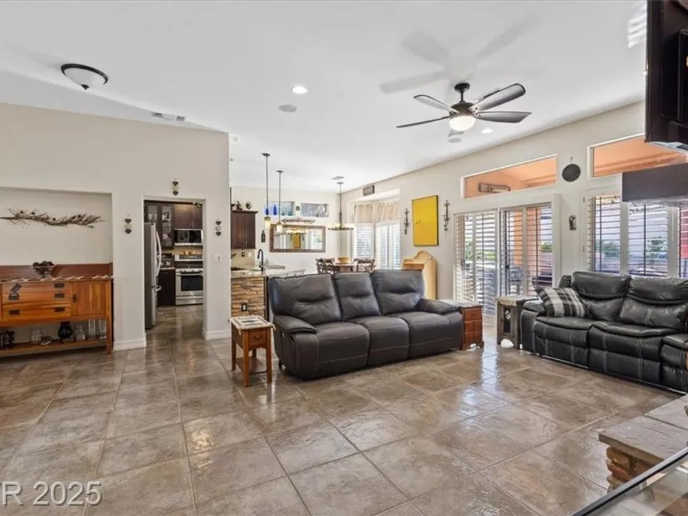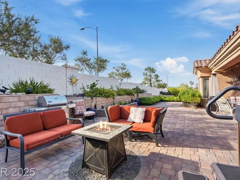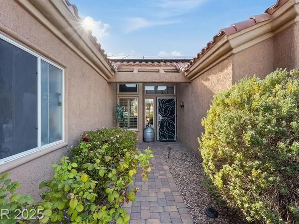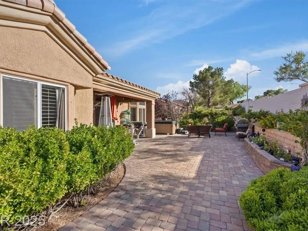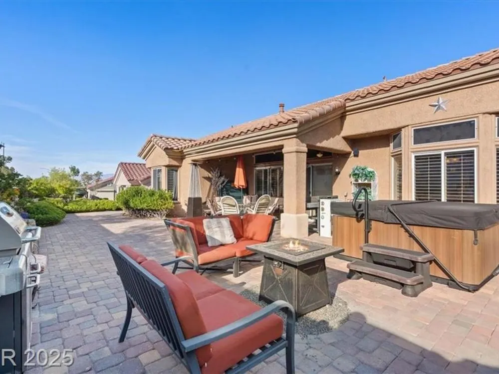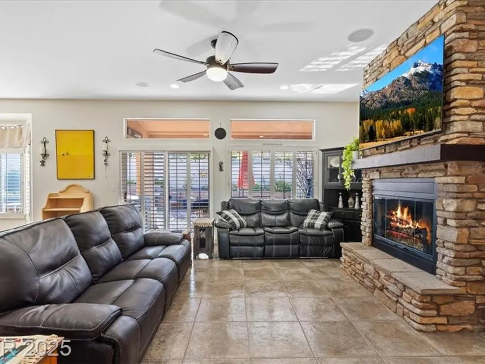 Welcome to a stunning single-story home that radiates pride of ownership from the moment you arrive. Offering 1,533 sq. ft. of comfortable living space, this beauty is adorned with ceramic tile flooring throughout, a charming real brick veneer fireplace, and a brick-accented kitchen island that adds a touch of timeless elegance. Recessed lighting, interior shutters, and low-maintenance desert landscaping create both style and convenience. Step outside to your covered patio and private backyard, perfect for entertaining or simply relaxing. Plus, enjoy lower energy bills with solar at just $127/month. Life in Sun City Summerlin means access to an exceptional lifestyle: three 18-hole golf courses, three community centers, and countless clubs and activities including ceramics, pottery, pickleball, baseball, and more. Don’t miss your chance to own a true slice of sunshine in one of Las Vegas’s most sought-after communities!