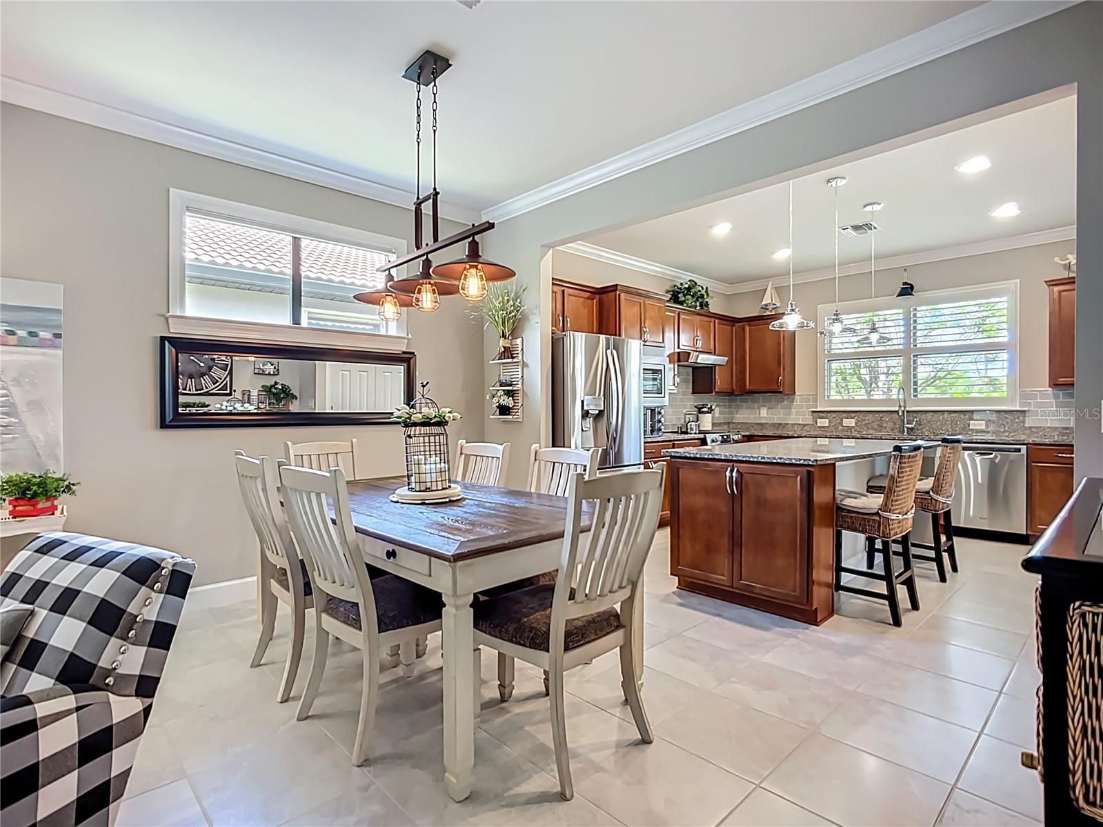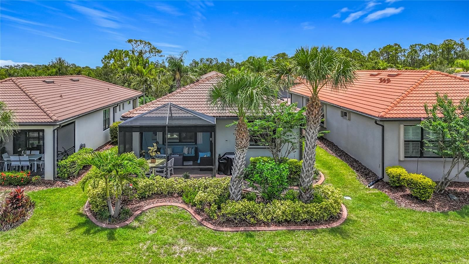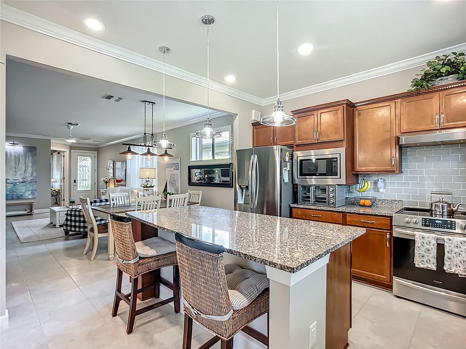 Welcome to this meticulously maintained 3-bedroom, 2-bath home in the Del Webb 55+ community at Cypress Falls. Offering 1,434 square feet of thoughtfully designed space, this 2018-Pulte built gem is decorated with high-end selections—including crown molding, recessed lighting, and a flowing open layout. The heart of the home is the spectacular kitchen, featuring a huge center island ideal for entertaining and everyday living. One of the three bedrooms doubles perfectly as a den or home office, giving you flexibility. Relax on the oversized screened lanai, where tranquil views of the greenbelt and natural preserve provide privacy and serenity. Enjoy maintenance-free living, with lawn care included, allowing you more time to take advantage of Del Webb’s resort-style amenities—including pools, fitness center, clubhouse, tennis, pickleball and a full calendar of social activities. The home also features mounted accordion-style hurricane shutters for peace of mind. Designer-quality furnishings may be available separately, making this a truly move-in-ready opportunity. Don't miss your chance to live in one of the area’s most sought-after 55+ communities of Cypress Falls. Schedule your private showing today!