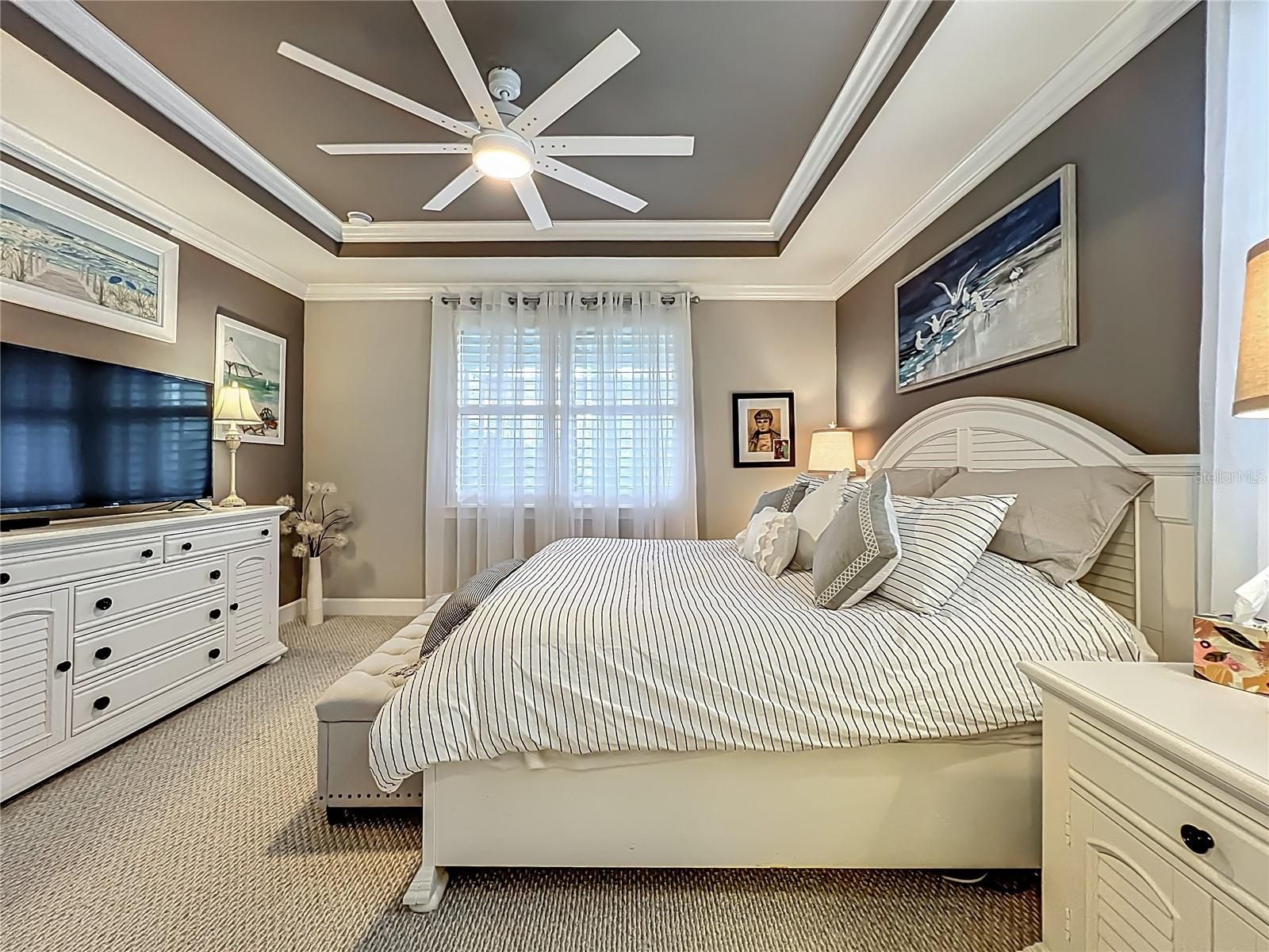 - Ceiling Fan(s), High Ceilings, Main Level Primary, Split Bedrooms, Tray Ceiling(s)