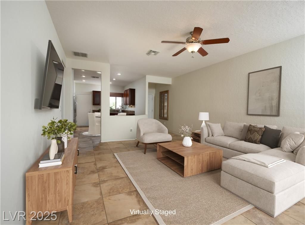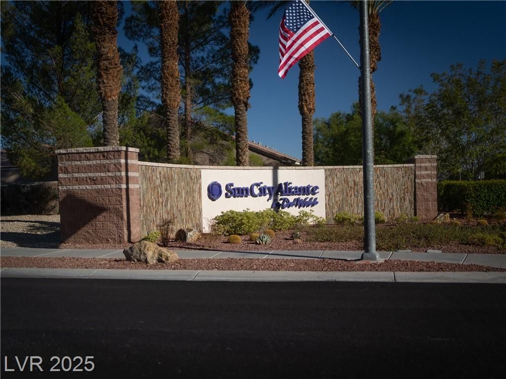 WELCOME HOME to this charming single-story residence in the premier 55+ community of Sun City Aliante. Tucked away on a peaceful cul-de-sac, this home impresses with its fresh landscaping, gated courtyard, and wonderful curb appeal. Inside, the open-concept great room flows seamlessly into the stylish kitchen and cozy dining nook—perfect for everyday living and entertaining. The well-designed floor plan features two bedrooms and two baths, offering comfort and functionality throughout. Step outside to a private backyard oasis with a covered patio and mature landscaping, creating your ideal retreat. Notable upgrades include solar screens, stainless steel appliances, and custom window treatments. Enjoy resort-style living with easy access to Sun City’s top amenities: golf course, clubhouse, pool, spa, tennis, pickleball, plus nearby shopping, dining, and entertainment!