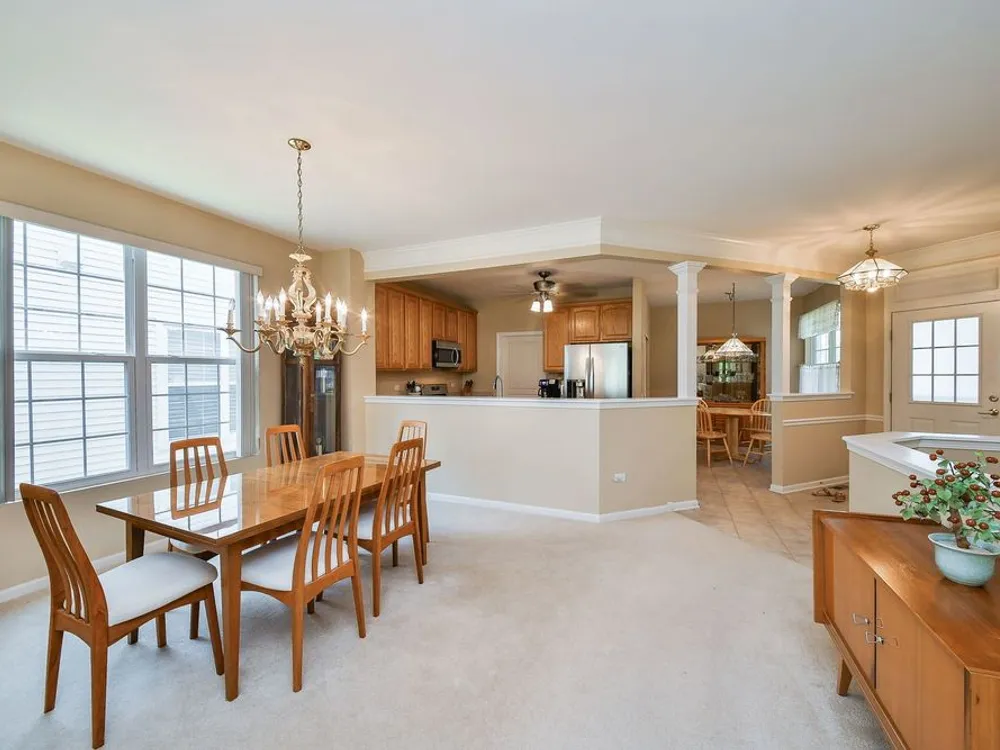 Welcome to this fantastic two-bedroom, two-bath ranch with an attached two-car garage in the highly desirable Del Webb 55+ Edgewater community in Elgin with a full basement with rough-in plumbing. This one-owner home has been lovingly maintained and is in well-kept condition. Inside, you'll find a bright and open floor plan. The spacious primary suite offers a large walk-in closet and a private ensuite bath, while the second bedroom is generously sized and has convenient access to the second full bath. The kitchen features ample cabinetry and flows seamlessly into the dining and living areas, making it perfect for both everyday living and entertaining. Additionally, there is a separate office space. Step outside to your private patio, shaded by a beautiful mature tree-an ideal spot for morning coffee or evening relaxation. This home also boasts many recent updates: New HVAC (2024) Roof replaced (2023) Washer & dryer (2024) All kitchen appliances (2022) Full unfinished basement with rough-in plumbing, ready for your customization Enjoy a carefree lifestyle in this gated, maintenance-free community, where you'll have access to the Creekside Lodge amenities including indoor and outdoor pools, hot tub, billiards room, fitness center, and a wide variety of exercise classes and activities. This is a rare opportunity to own a beautifully kept home in one of Elgin's most sought-after active adult communities!