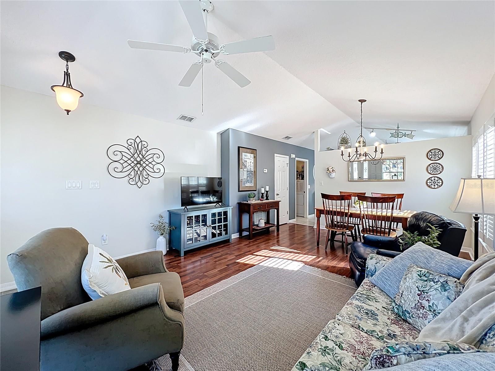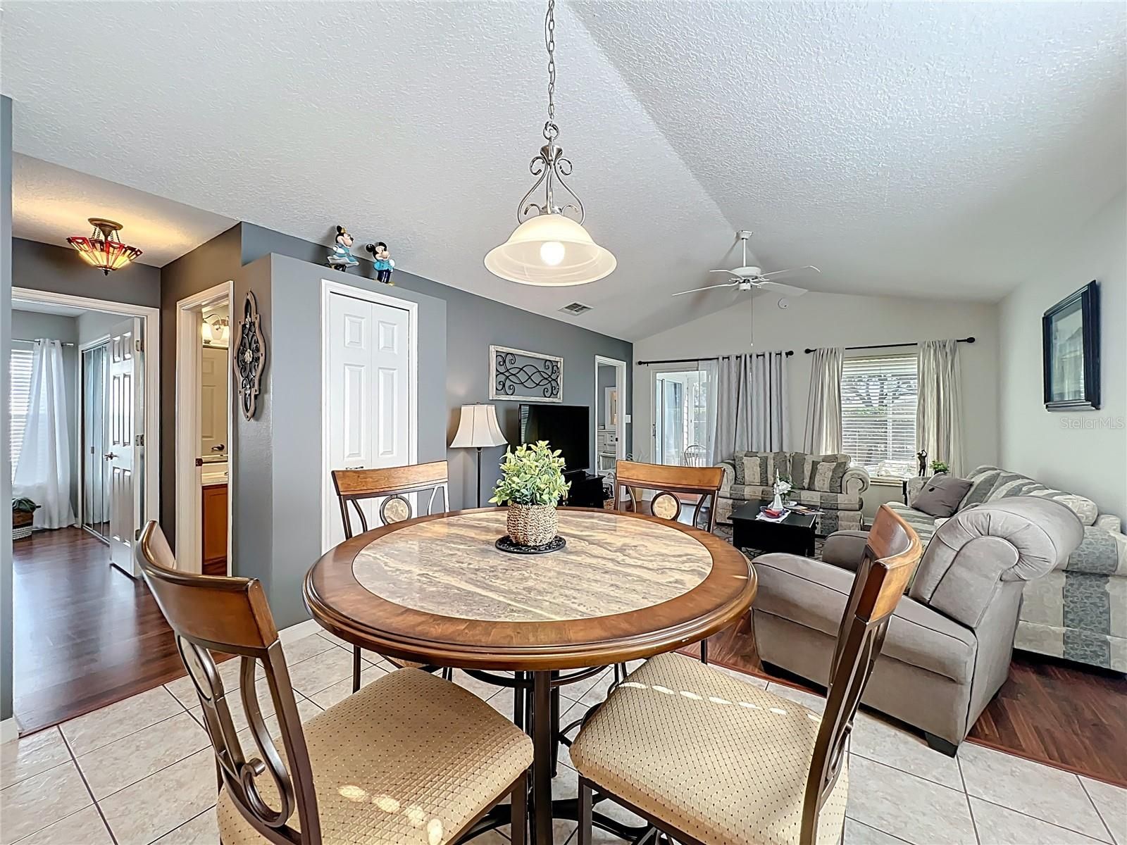 Welcome home to this beautifully maintained 2-bedroom, 2-bath single-family residence located in a gated 55+ golf community offering relaxed, resort-style living. Filled with abundant natural light and a cozy from porch, this bright and airy home features an open floor plan with both a formal living area and a comfortable family room, creating distinct yet connected spaces for entertaining and everyday living. The eat-in kitchen opens to the living room, while the separate dining room is attached to the family room, with the kitchen thoughtfully positioned between the two—providing both functionality and privacy while maintaining an open, welcoming flow. Spacious bedrooms offer comfort and retreat, and the home’s layout enhances its open yet well-defined feel. Recent updates include a roof in 2021, resurfaced kitchen counters and master bath shower, new shower glass enclosures, fresh interior paint, front door paint and garage door paint! The yard was also resoded! Enjoy additional living and entertaining space in the screened-in lanai, perfect for morning coffee or evening gatherings. Residents have access to outstanding amenities including three community pools, two golf courses, a clubhouse with restaurant, tennis courts, and pickle ball courts. Golf View features a secondary quarterly HOA covering lawn maintenance and granting exclusive access to a private pool reserved for Golf View residents. This home offers easy, low-maintenance living in a vibrant community designed to enjoy every day.