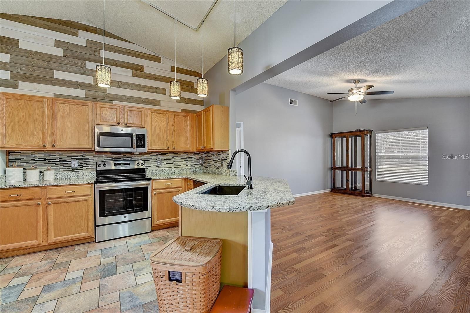 - Eat-in Kitchen, High Ceilings, Open Floorplan, Main Level Primary, Stone Counters, Thermostat, Window Treatments