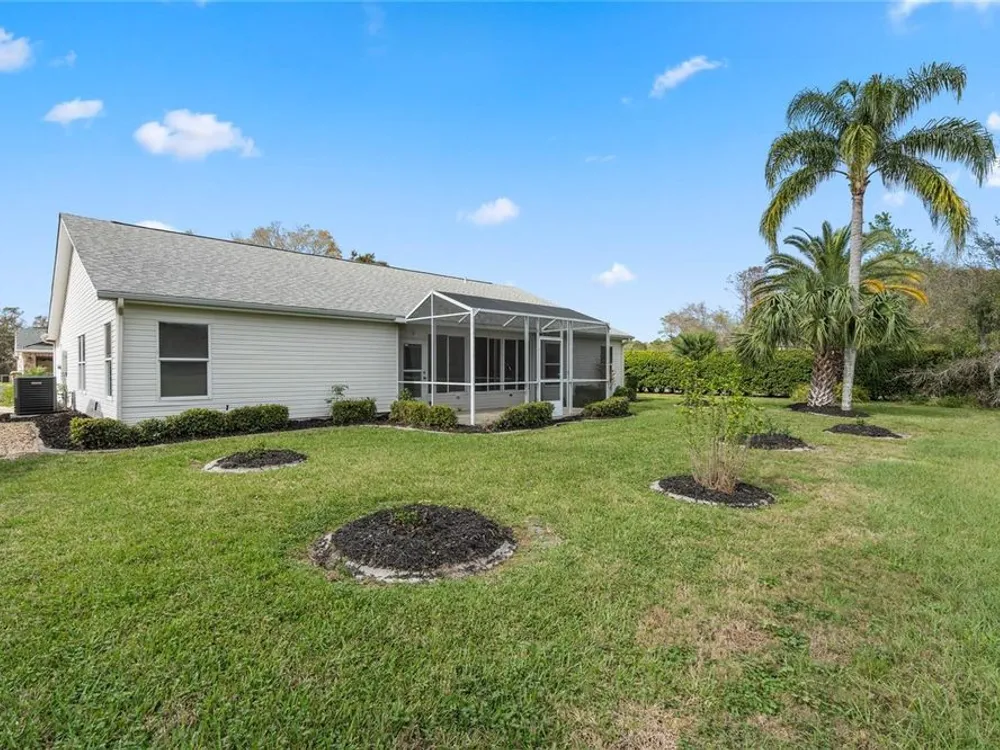 Your perfect corner of serenity awaits! TURN-KEY READY to move in! **Be sure to check out the 3D tour** Nestled in a prime location within the community, close to all the activities but quietly tucked away, this beautifully maintained home offers a private backyard oasis, ideal for enjoying the outdoors from your enclosed lanai with slider windows and vented for AC to enjoy year round or the spacious birdcage, perfect for reading a good book, relaxing, entertaining, or gardening—all without the bugs. Take in breathtaking Florida sunsets or catch a stunning rainbow after a summer shower, all while surrounded by lush, established landscaping and elegant outdoor lighting. Step inside to an open floor plan featuring an L-shaped dining and living room, seamlessly designed for comfort and functionality. The gourmet kitchen is a chef’s dream, boasting undercounter lighting, a large pantry, abundant cabinetry, and granite countertops—all opening to the family room, creating the perfect space for gathering on game day! Just off the kitchen, you’ll find a convenient inside laundry room with extra storage, adding to the home’s practicality and organization. The primary suite is a true retreat, easily accommodating king-sized furniture and offering beautiful backyard views. The private ensuite features dual sinks, a soaking tub, and a step-in shower, ensuring relaxation and convenience. Additional highlights include , a beautiful pavered driveway and walk-up, NEW AC, and a newer ROOF (2017), providing peace of mind and long-term value. Located in The Plantation, a vibrant 55+ community, residents enjoy two full-size golf courses, three clubhouses with heated pools, tennis and pickleball courts, billiards, darts, and an extensive monthly calendar of activities. Take in a softball game and hot dogs at the pavilion on game day or try bocce ball, shuffleboard, and horseshoes—there’s always something fun happening. The life you have waited your whole life for is conveniently located near major hospitals, shopping, parks, and the airport …don’t miss your chance to make it yours! Schedule your showing today!