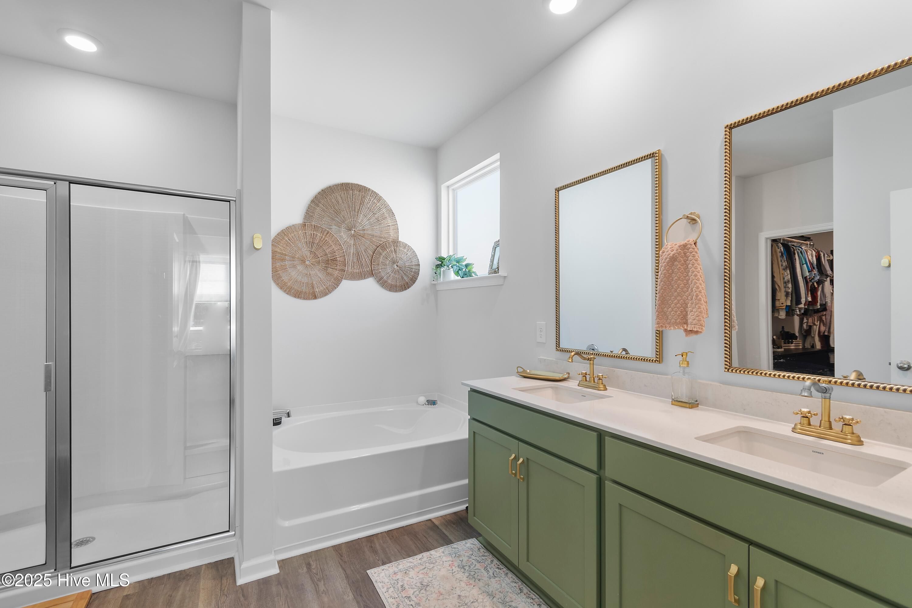 - Walk-In Closet(s), Solid Surface Counters, Ceiling Fan(s), Pantry, Walk-In Shower, Blinds