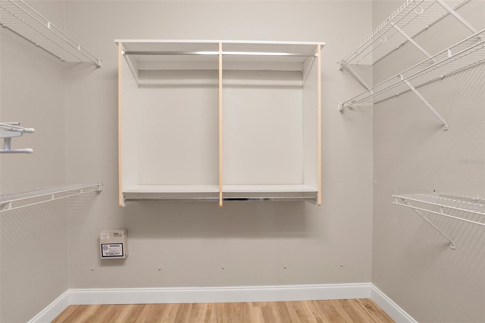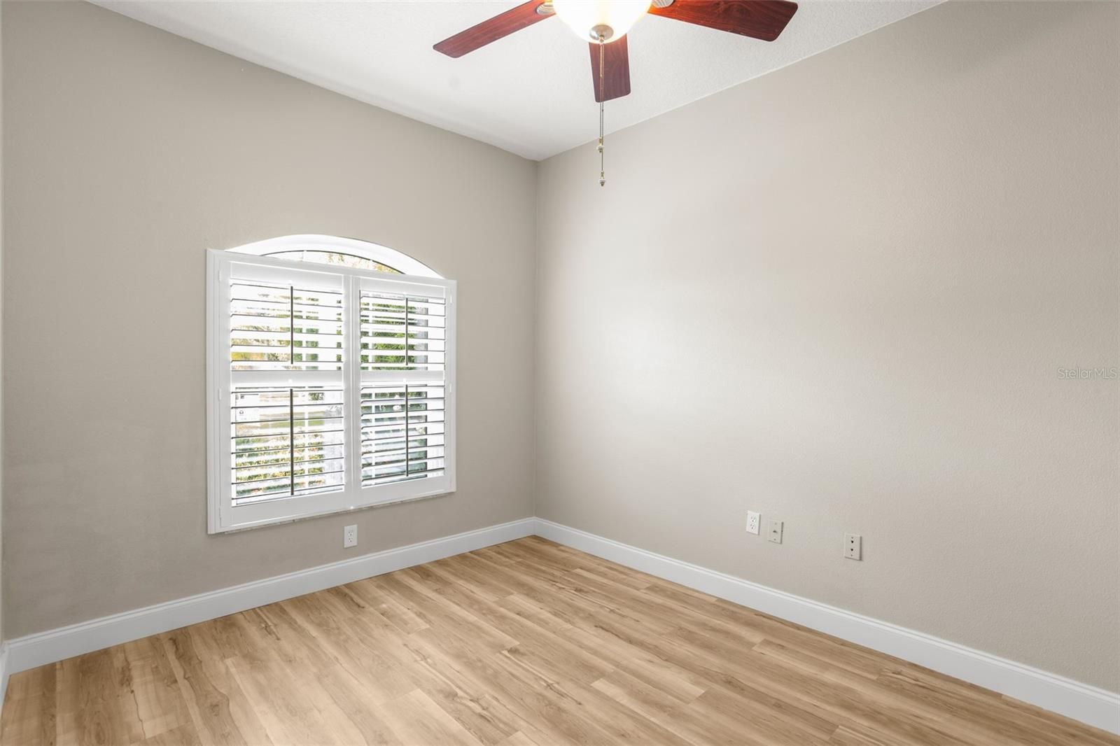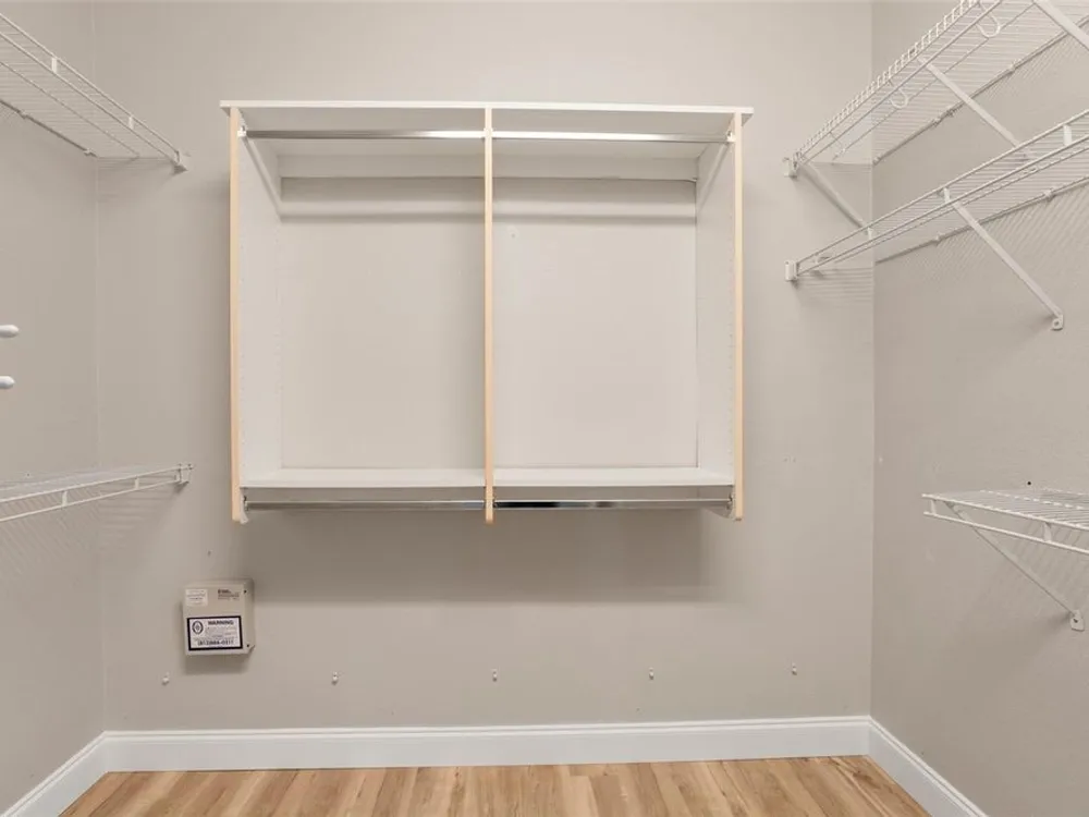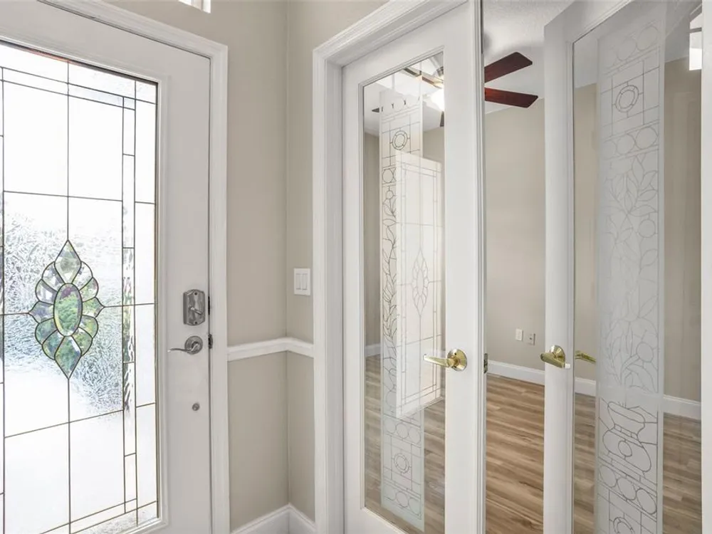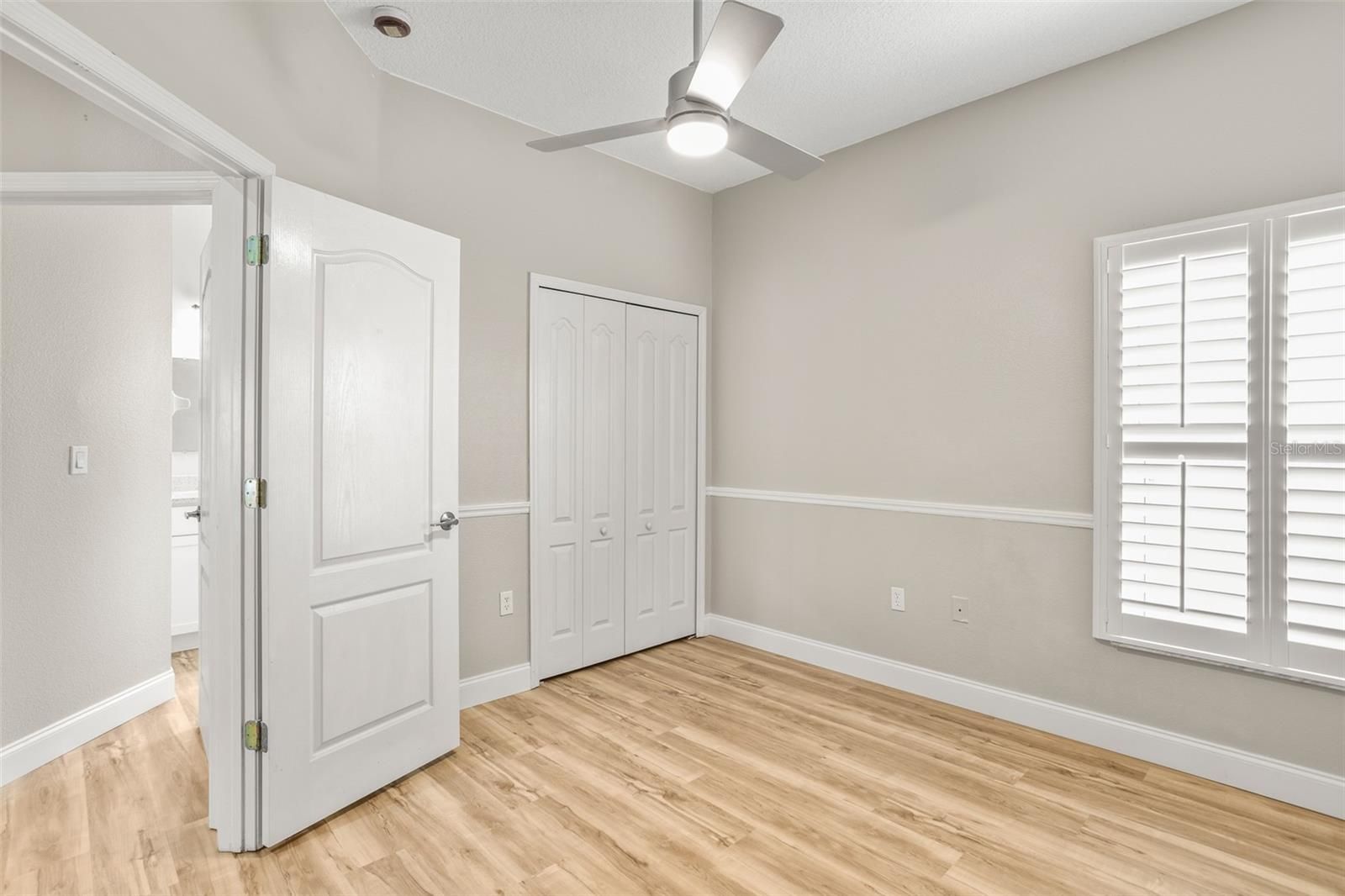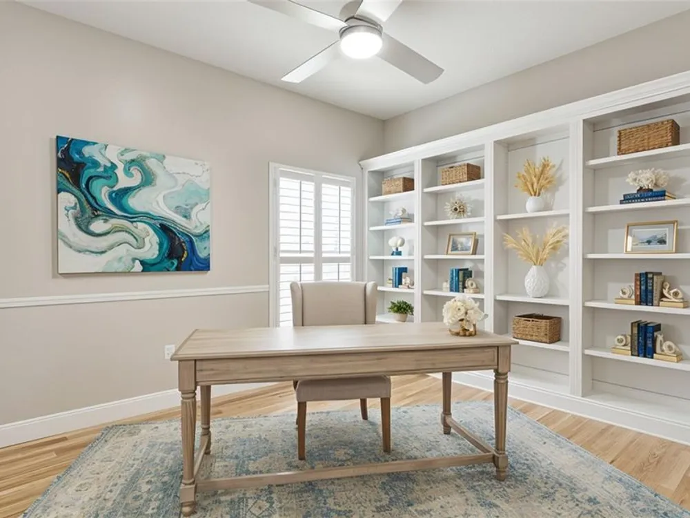 - Ceiling Fan(s), High Ceilings, Open Floorplan, Main Level Primary, Solid Surface Counters, Solid-Wood Cabinets, Stone Counters, Thermostat, Walk-In Closet(s), Window Treatments