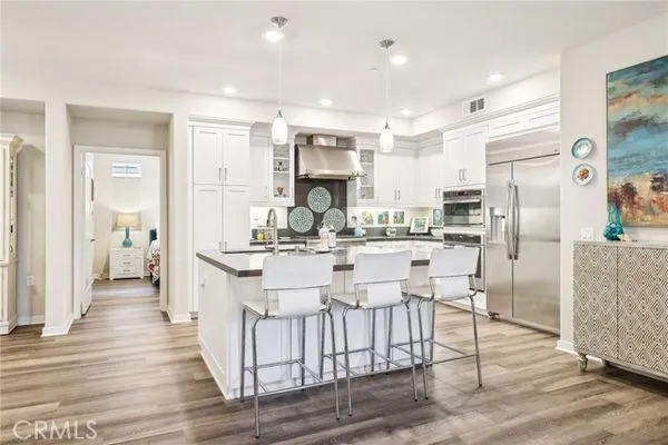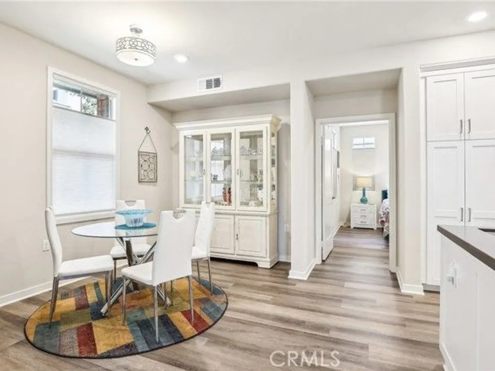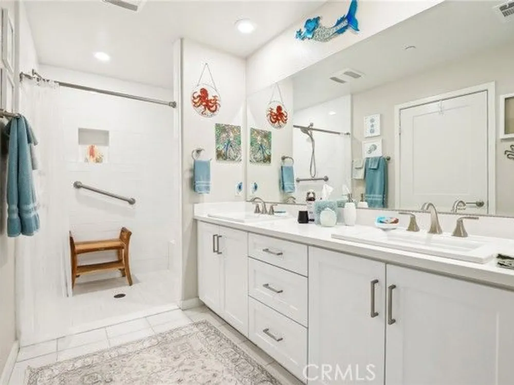 RESORT LIVING 55+ gated community. This beautiful well-maintained 2 bed, 2 bath home is a must see. Open kitchen/living area. The kitchen is equipped with a spacious island with seating, quartz counters. Wheelchair accessible pullouts available under kitchen and primary bath sinks. ADA compliant. Dual sinks in primary bath. Separate laundry room with storage. Tandem garage with storage space. Possibility for a workout area or office area. Tankless water heater. Ample patio to create an outdoor living area. What truly makes this community stand out is its amenities and people. There's a monthly calendar of events, such as the coffee club, book club and social events like celebrating holidays. The clubhouse is excellent for entertaining with its bar and the catering kitchen. And then there's the salt-water pool, lap pool, bocce ball, dog park, pickle ball courts, barbeque area and fitness center. And if the amenities aren't enough, there's the proximity to Irvine Great Park with its list of activities and the Spectrum Center.