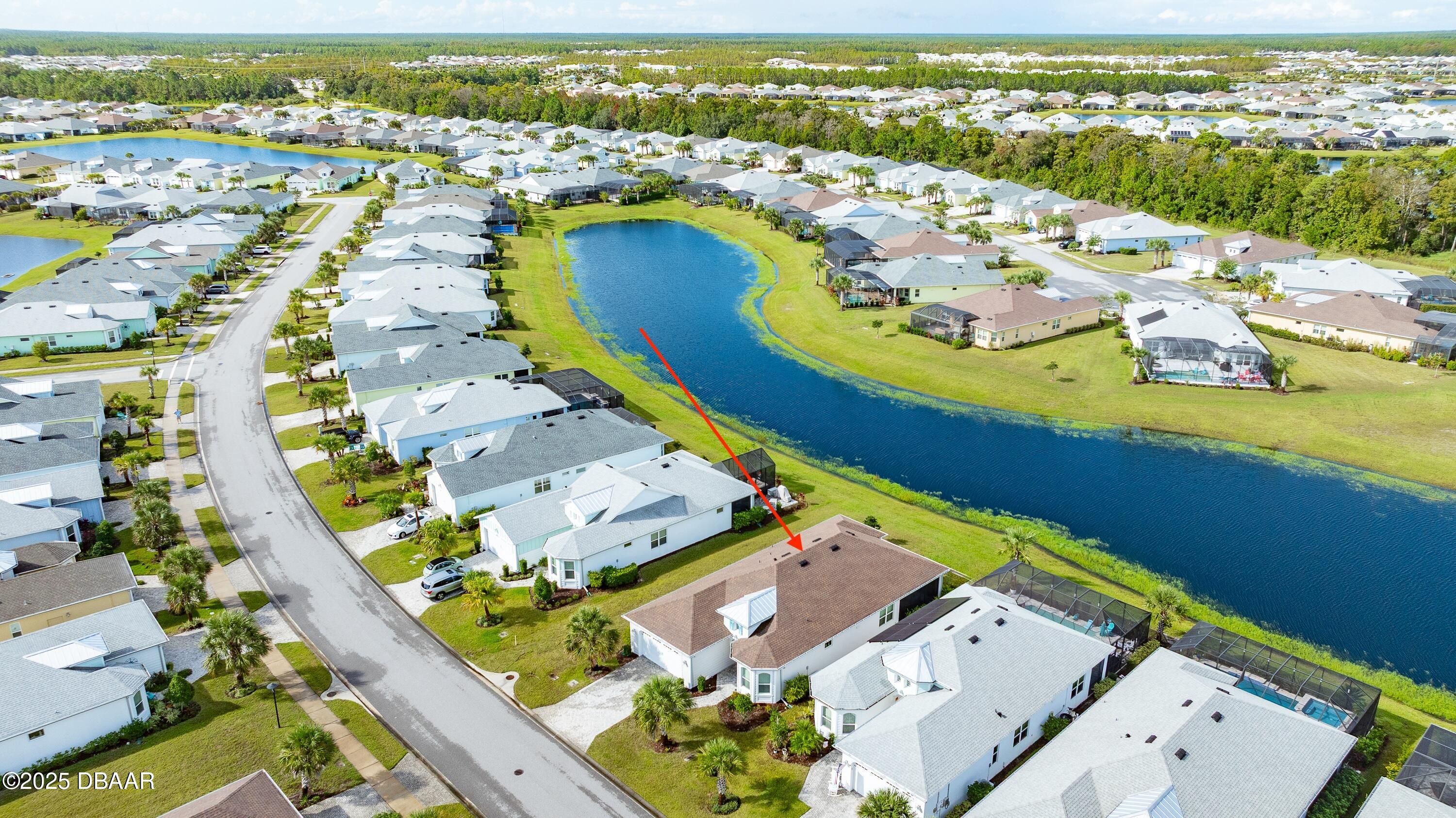Welcome to paradise in Latitude Margaritaville! This upgraded Breeze model sits atop a premium oversized waterfront lot, offering refined comfort and relaxed living with over $35k in upgrades. The spacious kitchen is the heart of the home, featuring upgraded energy-saving stainless steel appliances, quartz countertops, a gas range, under-cabinet lighting, and an enormous island accented with unique shiplap detailing -- perfect for cooking and entertaining. Attention to detail abounds, including plantation shutters, recessed lighting and additional blown-in attic insulation for enhanced energy efficiency. If you work from home, there is an upgraded internet/network extender. There is also a paver driveway and an upgraded lanai with custom roll-down shades. Enjoy resort-style amenities, including a private beach club with transportation, sparkling pool and recreation, and an on-site restaurant. Partially furnished **Golf cart negotiable