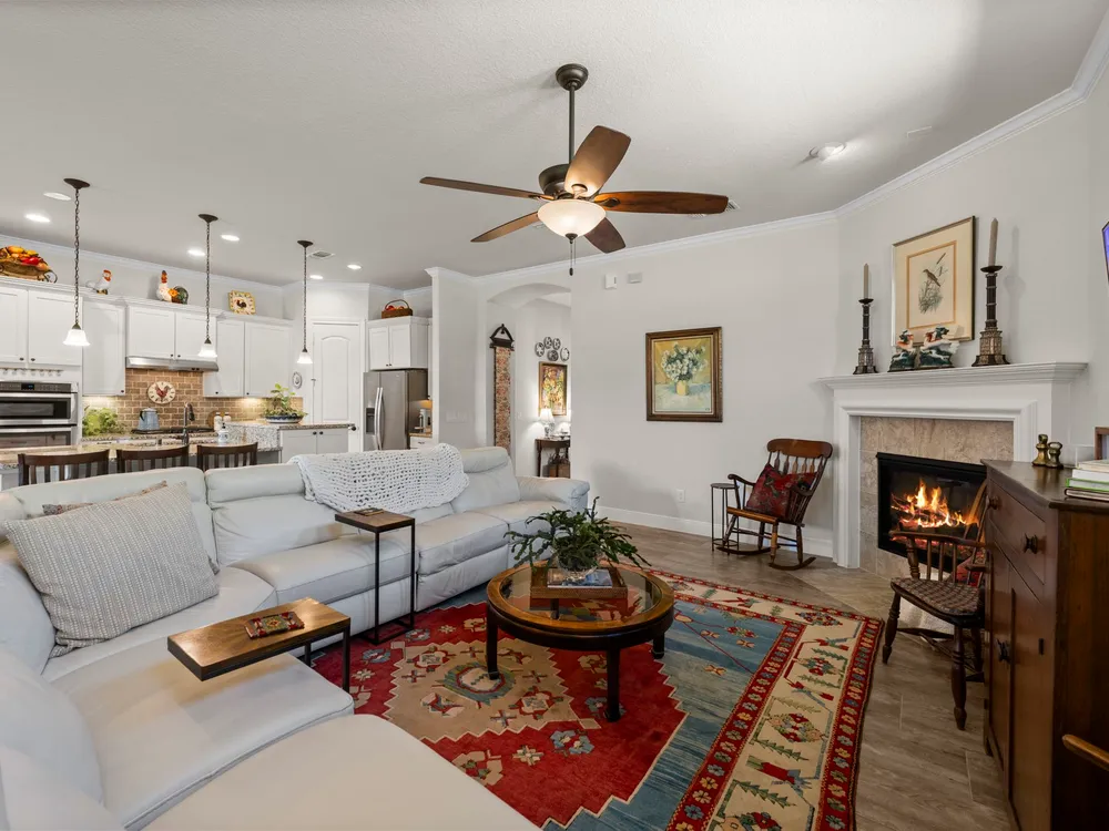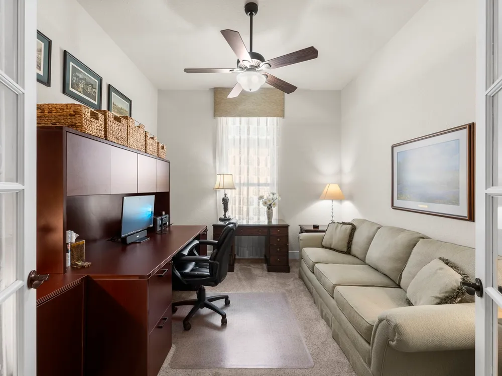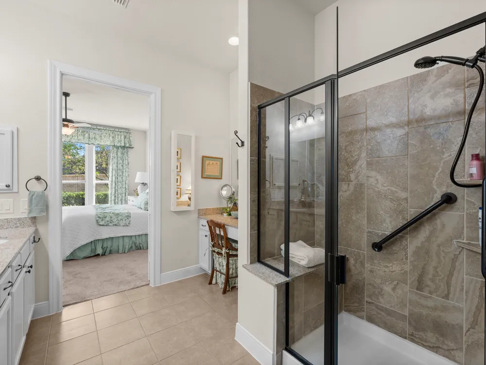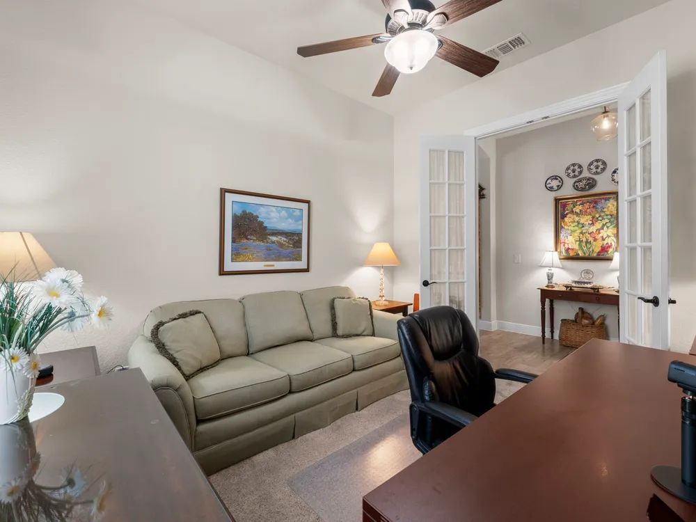 Del Webb The Woodlands, a 55+ gated active adult community, offers a beautiful blend of comfort and lifestyle. This rare 3-bedroom home features elegant wood-look tile floors, an open layout, and abundant natural light. The island kitchen boasts granite counters, stainless appliances, and stylish pendant lighting, opening to a spacious living area with high ceilings. A private study with French doors provides the perfect space for work or hobbies. The serene primary suite includes dual vanities and a large walk-in shower. Enjoy relaxing or entertaining on the screened-in patio surrounded by lush landscaping. Experience the Del Webb lifestyle with resort-style amenities including The Lodge, fitness center, indoor and outdoor pools, pickleball, clubs, and walking trails—all just steps from your door. Close to shopping, dining, and top-rated medical facilities.