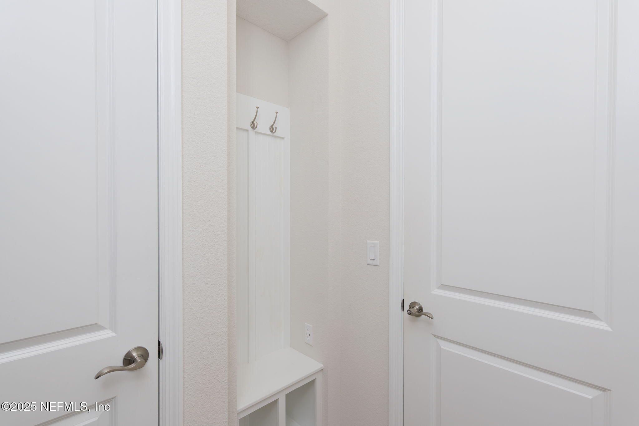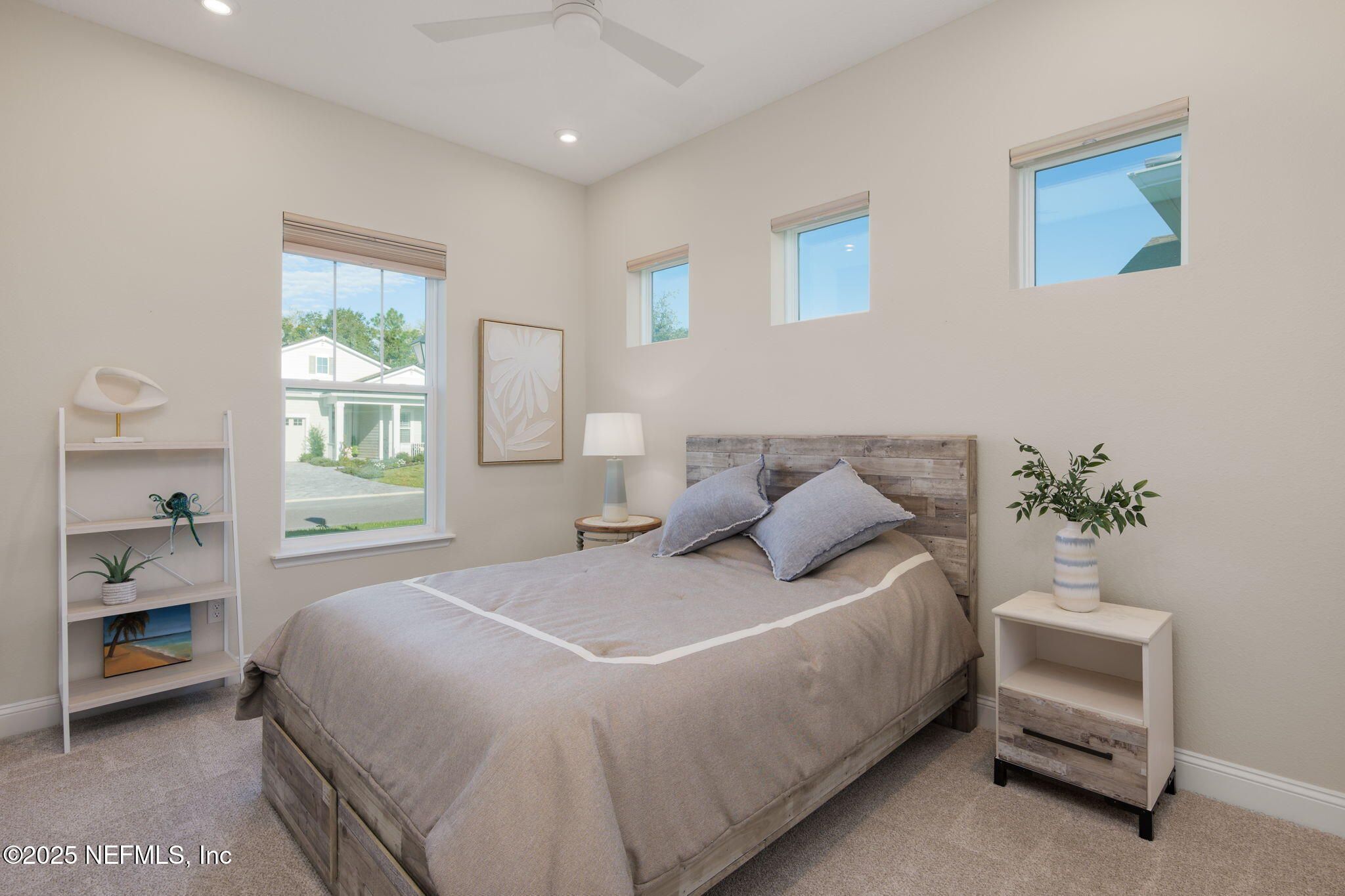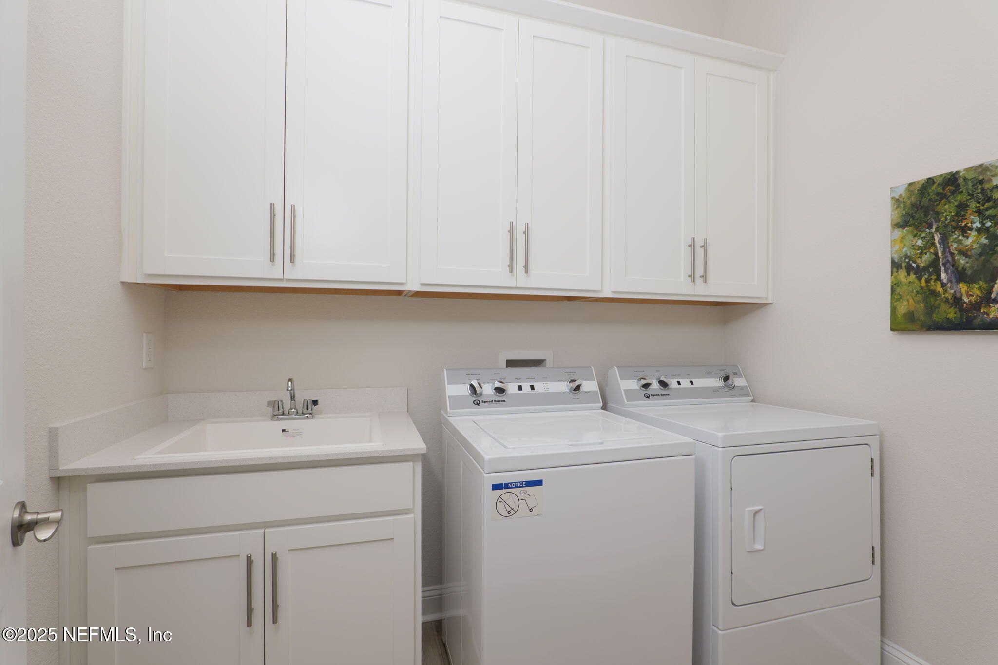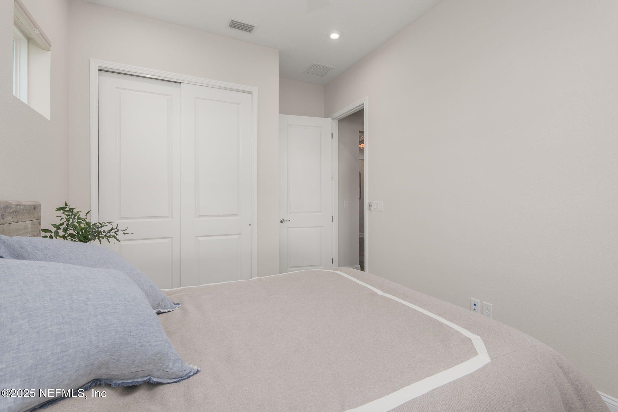 Built in 2023, this stunning Pier model spans 1,914 square feet of refined comfort with 2 bedrooms, a private office, and 2 baths—all set on a peaceful pond lot framed by swaying palms and spectacular sunset views. Inside, luxury vinyl plank flooring flows through open, light-filled spaces designed for both everyday living and entertaining. The showpiece of the home is the custom wine and beverage bar, complete with a stacked-stone backsplash, floating wood shelves, quartz countertops, and a built-in refrigerator—perfect for unwinding or hosting with style. The chef's kitchen features white shaker cabinetry, a waterfall island, and stainless steel Whirlpool appliances, while the dining area glows under contemporary lighting that adds warmth and elegance. Retreat to a serene primary suite with a spa-inspired bath offering a zero-entry shower and a large walk-in closet with built-in luggage racks. Every detail is considered, from the drop zone with cubbies and bench to the fully outfitted laundry room with Speed Queen washer and dryer. Step outside to your extended screened lanai and savor the evenings in your custom-built summer kitchencomplete with BBQ, refrigerator, and stone surround. Here, sunsets shimmer across the pond, framed by lush palms that move gently with the Florida breeze. Nestled within WaterSong, a premier 55+ gated community inside RiverTown, residents enjoy an unmatched lifestyletwo amenity centers, resort-style and lap pools, fitness centers, pickleball and bocce courts, walking trails, a biergarten, and a full-time lifestyle director orchestrating endless social and recreational events. It's where neighbors become friends, and every day feels like a getaway. Plus, a GOLF CART is included for you to travel to WaterSong/Rivertown destinations. This is more than a homeit's a statement of effortless living in one of Northeast Florida's most vibrant communities.