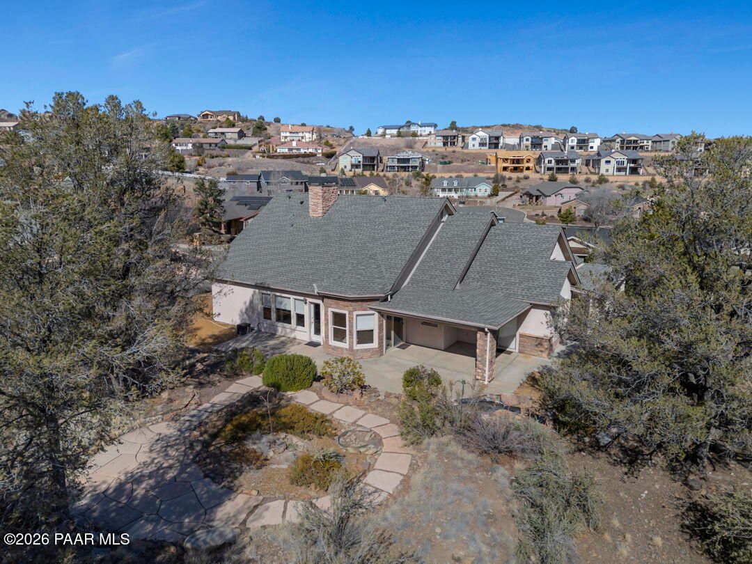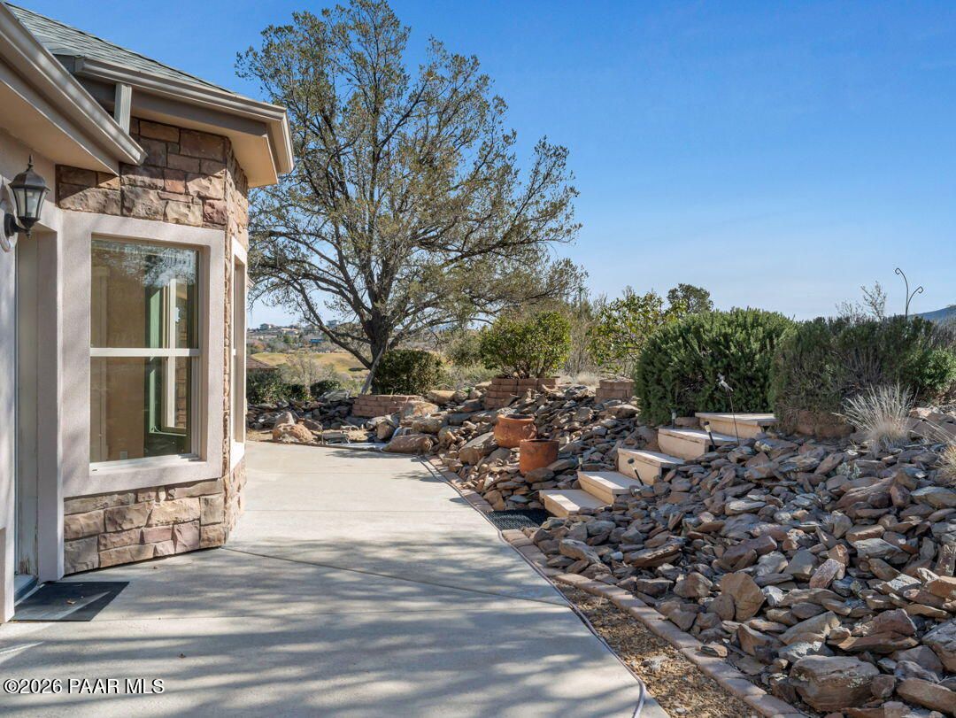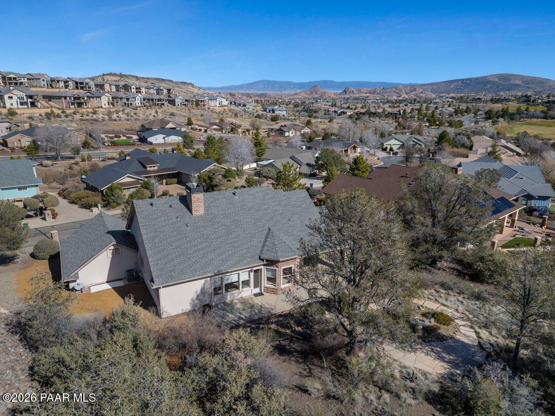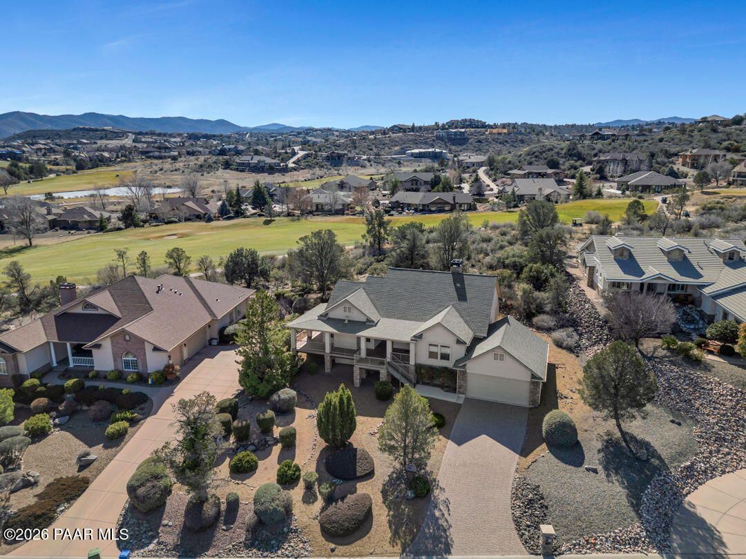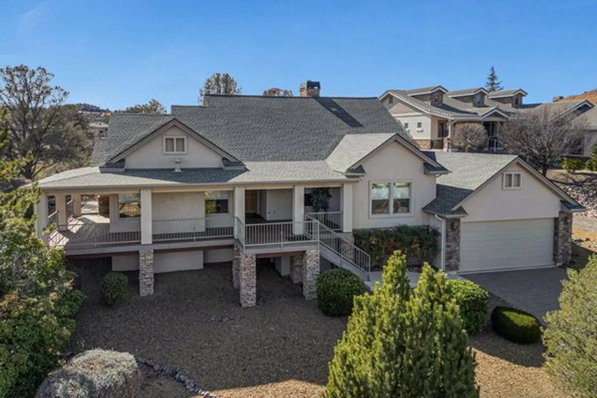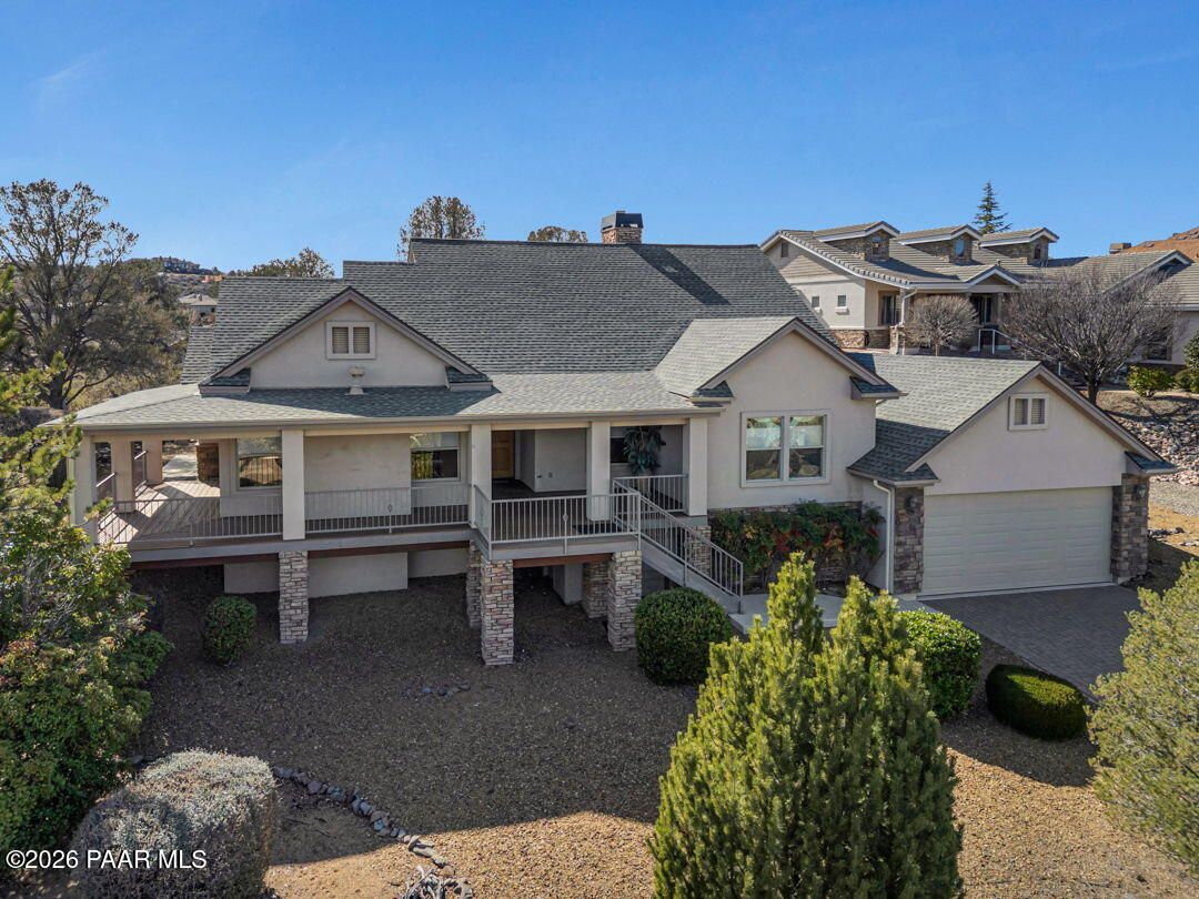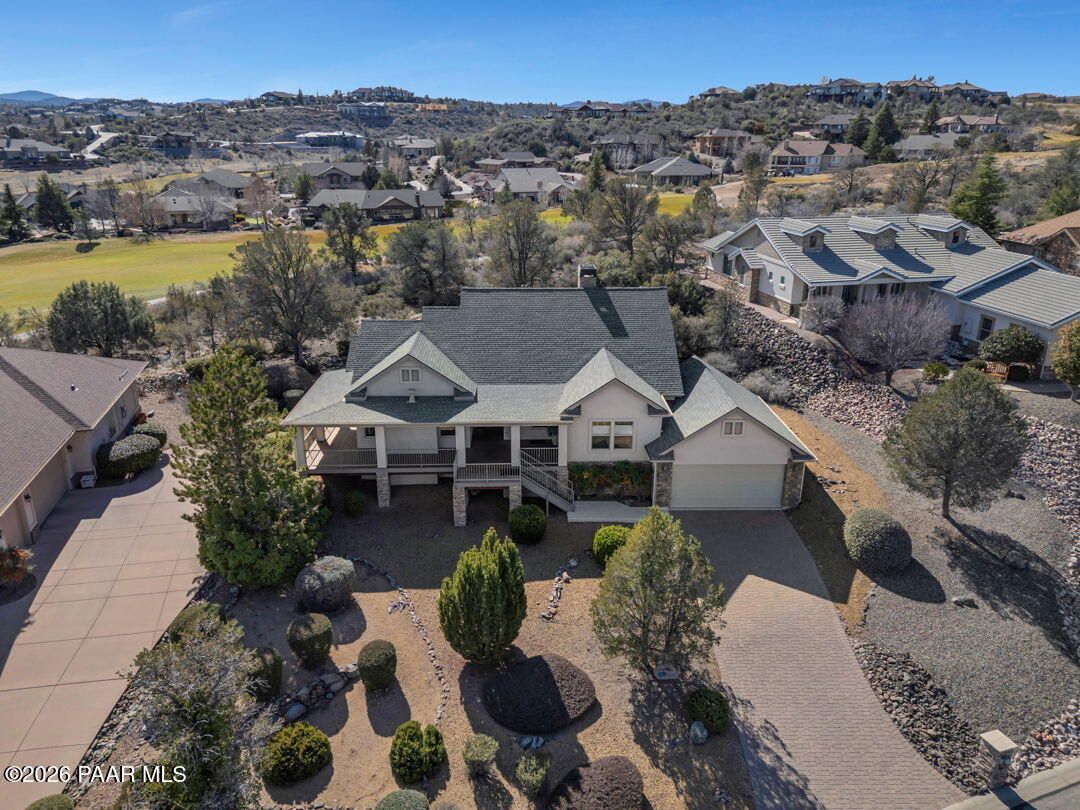 Enjoy breathtaking views of the Granite Dells and San Francisco Peaks from the wraparound deck of this beautiful home, ideally located in the highly sought-after Prescott Lakes community. This well designed residence offers 3 bedrooms and 2 full bathrooms, Great Room w/fireplace, a spacious kitchen, and a private backyard, perfect for both entertaining and everyday relaxation.Backing to the 6th fairway, the property provides exceptional privacy and a sense of open space. A backyard water feature creates a peaceful setting on the patio, ideal for relaxing or hosting guests. The front deck and patios feature charming tongue-and-groove ceilings. Additional highlights include a new roof installed in 2024 and ample storage conveniently located beneath the front deck. This home offers the perfect blend of views, privacy, and comfort in one of Prescott's premier golf communities. Put your special touch into this wonderful home.