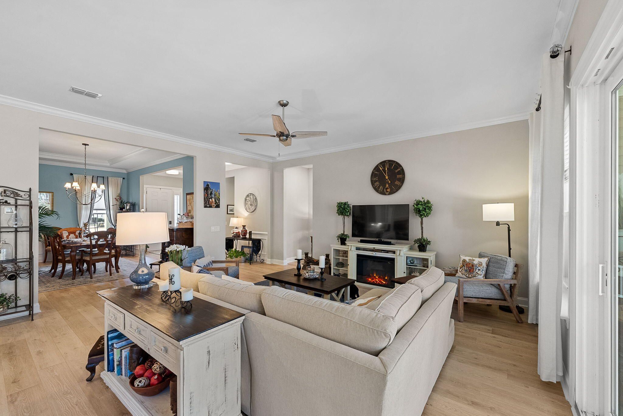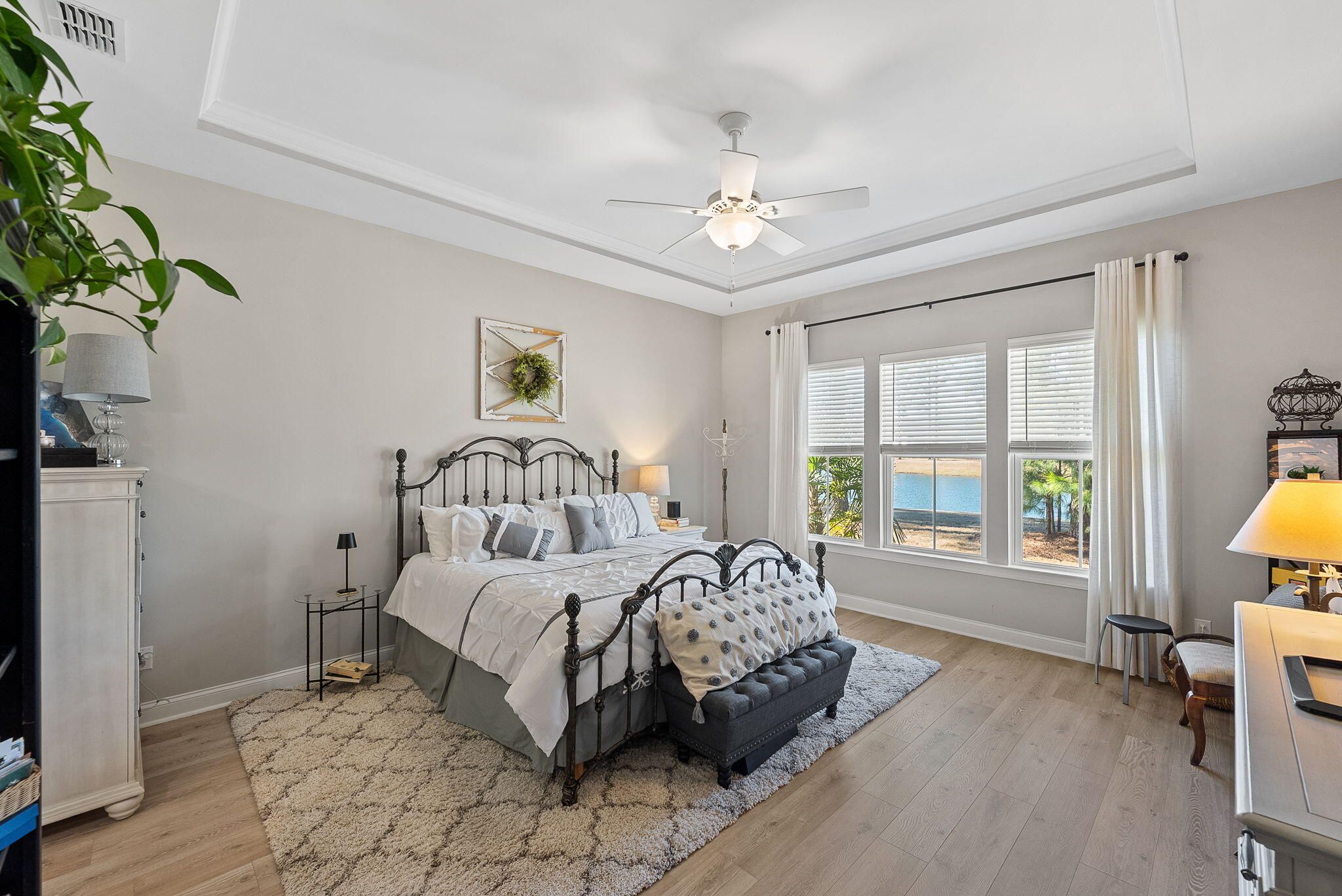 Discover refined Lowcountry living at 253 Tupelo Lake Drive in Cane Bay Plantation, where timeless brick elegance meets effortless comfort. This thoughtfully designed ranch rests on a serene shallow waterfront homesite and offers nearly two thousand five hundred square feet of beautifully appointed space. Soaring nine foot ceilings, a gracious foyer, private office, and a stunning kitchen with island flow seamlessly into inviting living and dining areas. The main level primary suite is a retreat with garden tub, generous walk in closets, and refined finishes. Enjoy covered patio mornings, resort style amenities, and the ease of a vibrant 55 and older, gated community.