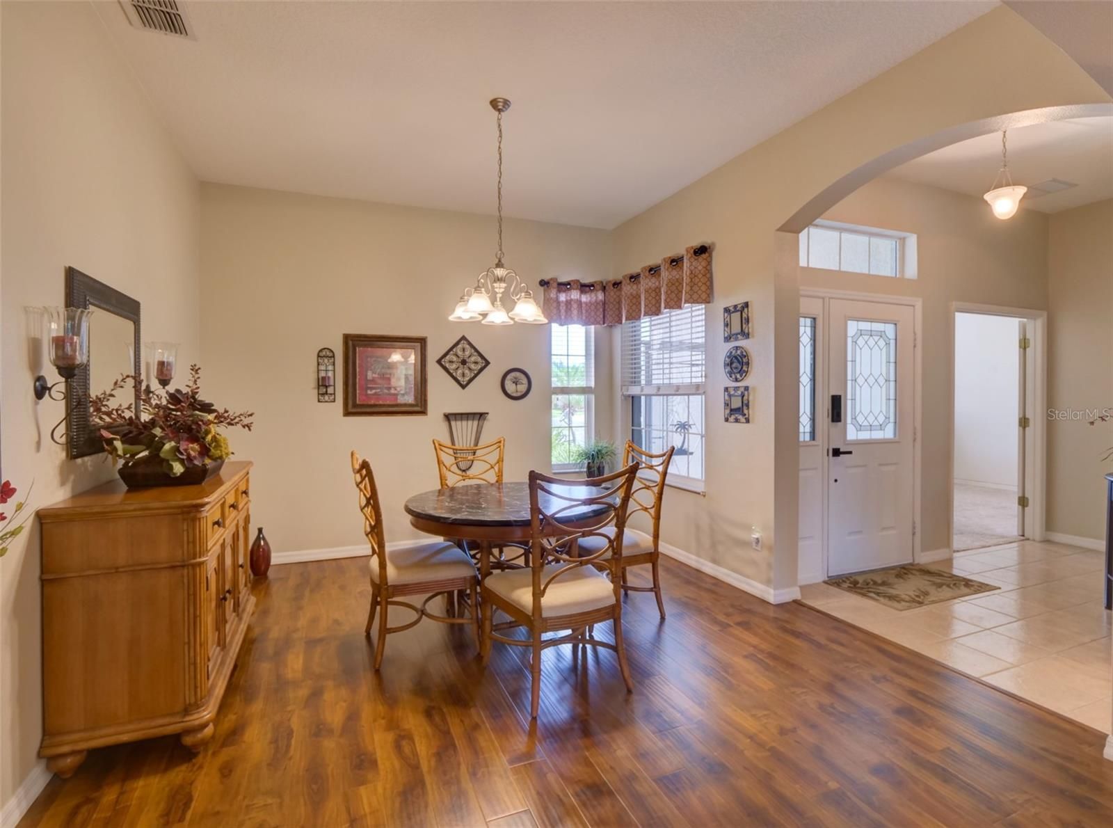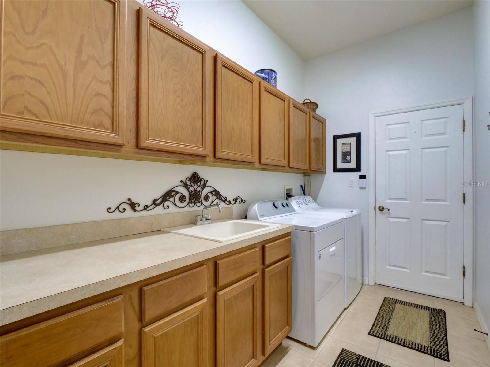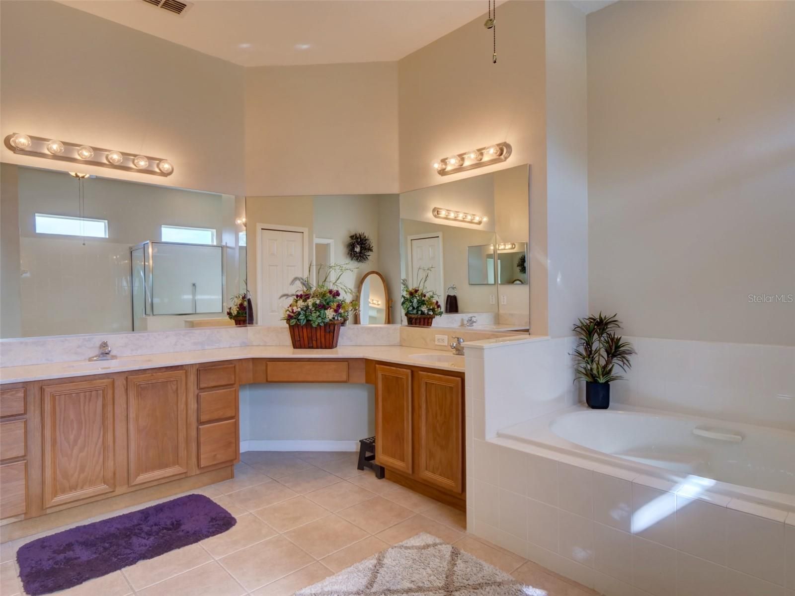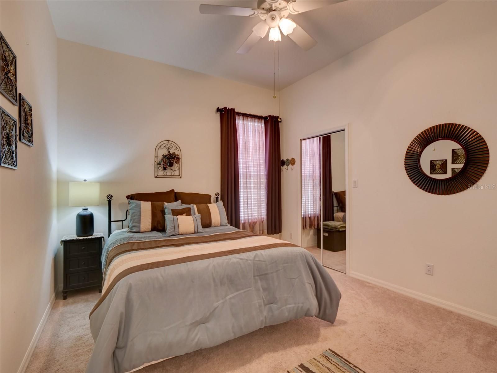 A MUST SEE: ROOF 2022. HVAC 2025. This 2,489 sqft, well-maintained 2 Bedroom, 2 Bath, split-floor plan home, has a large Flex Room (24'x14'), which is adaptable to a homeowner's needs. On a corner lot, the mature landscaping, paver driveway and walkway (2024), lends to an appealing first impression, along with the oversized Garage (25'x22'), and attached Golf Cart Garage (8'x10'). As you enter through the screened-in alcove, and through the front leaded-glass door, you’ll immediately appreciate the comfortable environment created by tall ceilings and the abundance of natural light provided by the glass sliding doors and windows in the Living Room and Formal Dining Room. This expansive floorplan features a truly-open Kitchen, deep double-door Pantry & breakfast bar seating. Uniquely, the Kitchen oversees an (18'x15') room which can adapt to be a larger Dining Room or Family Room for entertainment. Sliding glass doors allow for access to the standout feature of this home, an expansive covered and screened Lanai (21’x24'), while the tall mature rear landscaping offers much PRIVACY. Glass sliding doors also allow Lanai access from the Primary Bedroom and Kitchen areas. The large Primary Bedroom has two walk-in closets & an over-sized Ensuite Bathroom. The presence of sidewalks adds to the ease of navigating the neighborhood. The Plantation at Leesburg is a private, access controlled, 55+ community that enjoys a low monthly HOA fee, two 18-hole golf courses, practice range, pro-shop, restaurant, pickleball courts, 3 pools, 3 club houses, fitness facilities, fishing pier, secure RV & boat storage, and many more amenities. Close to shopping, medical facilities and main roads. Equal Opportunity Housing. GO AND SHOW.