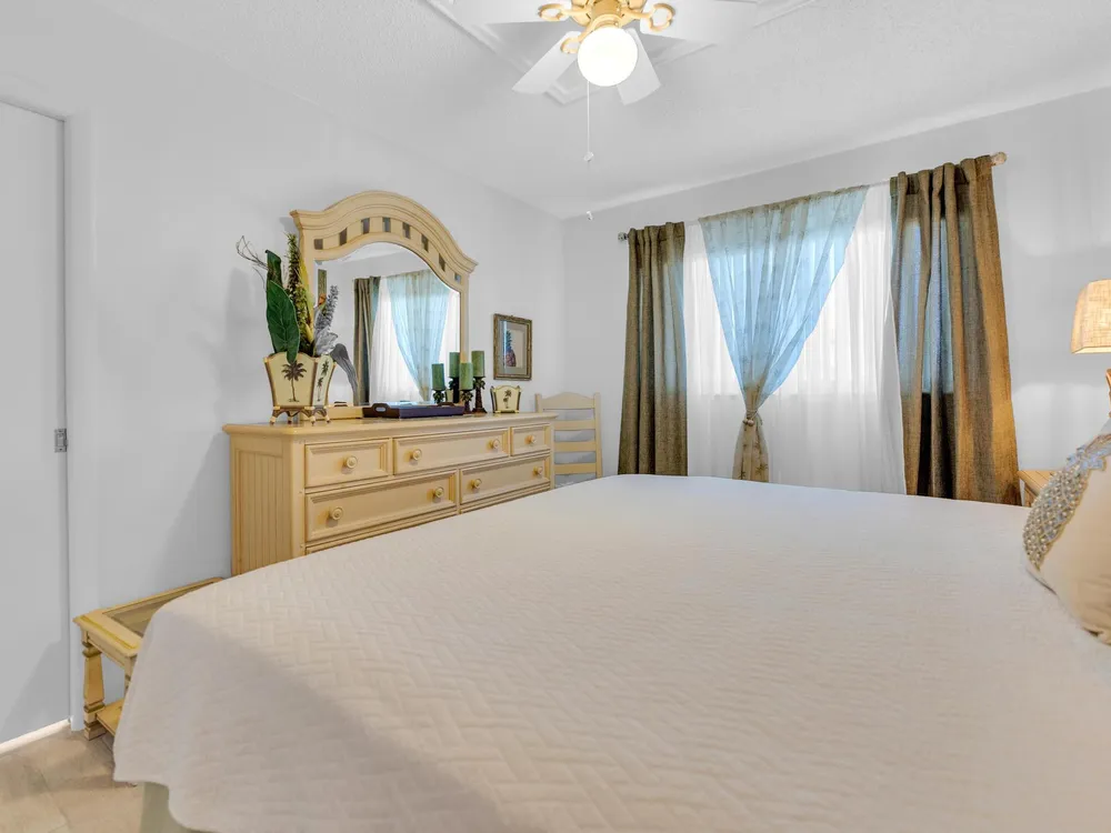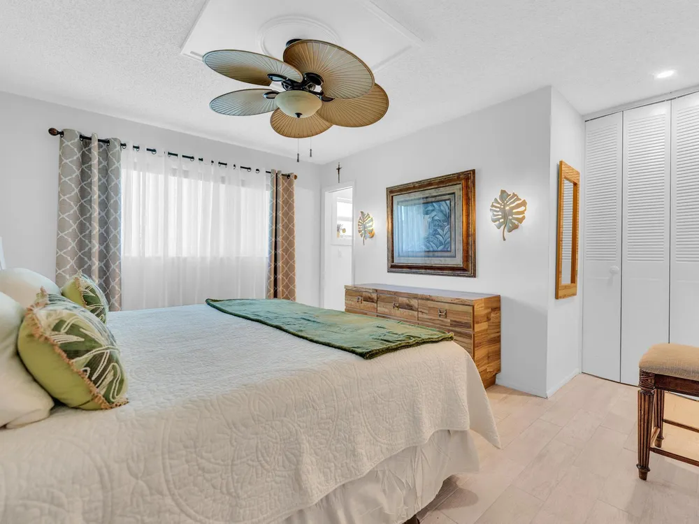 This unit features an open-concept kitchen adorned with sleek granite countertops. Both bathrooms have been completely renovated and offer modern, sleek finishes. It has a brand new 2025 air conditioning unit and compressor, with a pump station for automatic line drainage, conveniently relocated from the attic for easy maintenance. Additional upgrades include newly installed hurricane-resistant windows and sliding doors, a central vacuum system, and an upgraded backyard and landscaping. The entire unit has been recently painted, complemented by the addition of new trim for a polished look. Also brand New water heater,2024 permitted electric panel with surge switch,canal view with beautiful sunsets