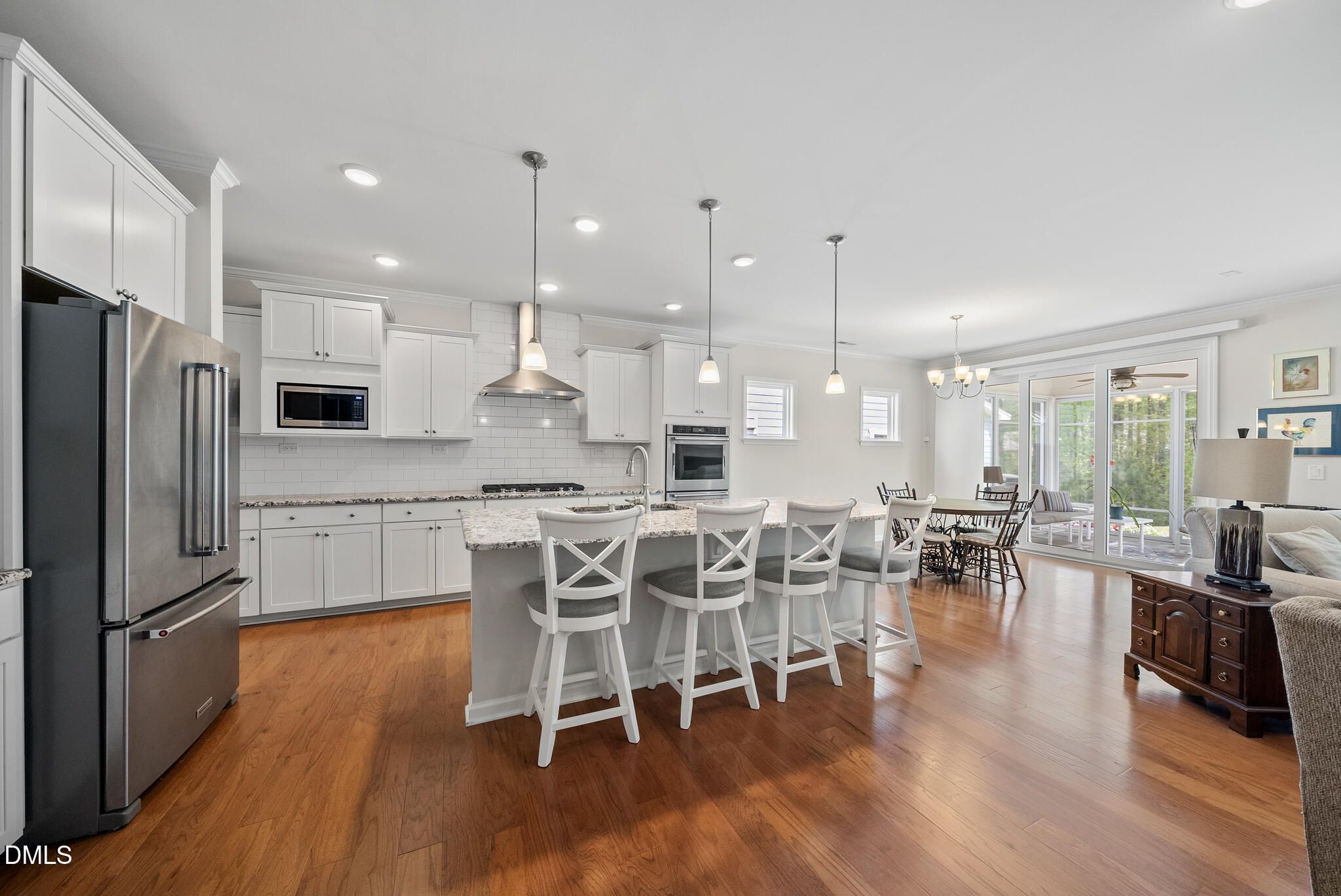 - Dishwasher, Disposal, Double Oven, Exhaust Fan, Gas Cooktop, Microwave, Range Hood, Refrigerator, Stainless Steel Appliance(s), Oven