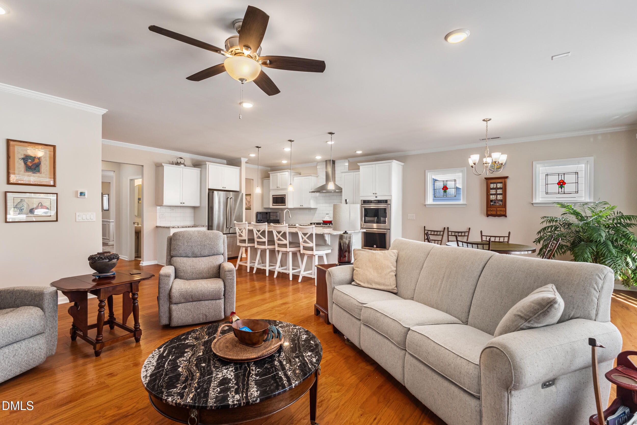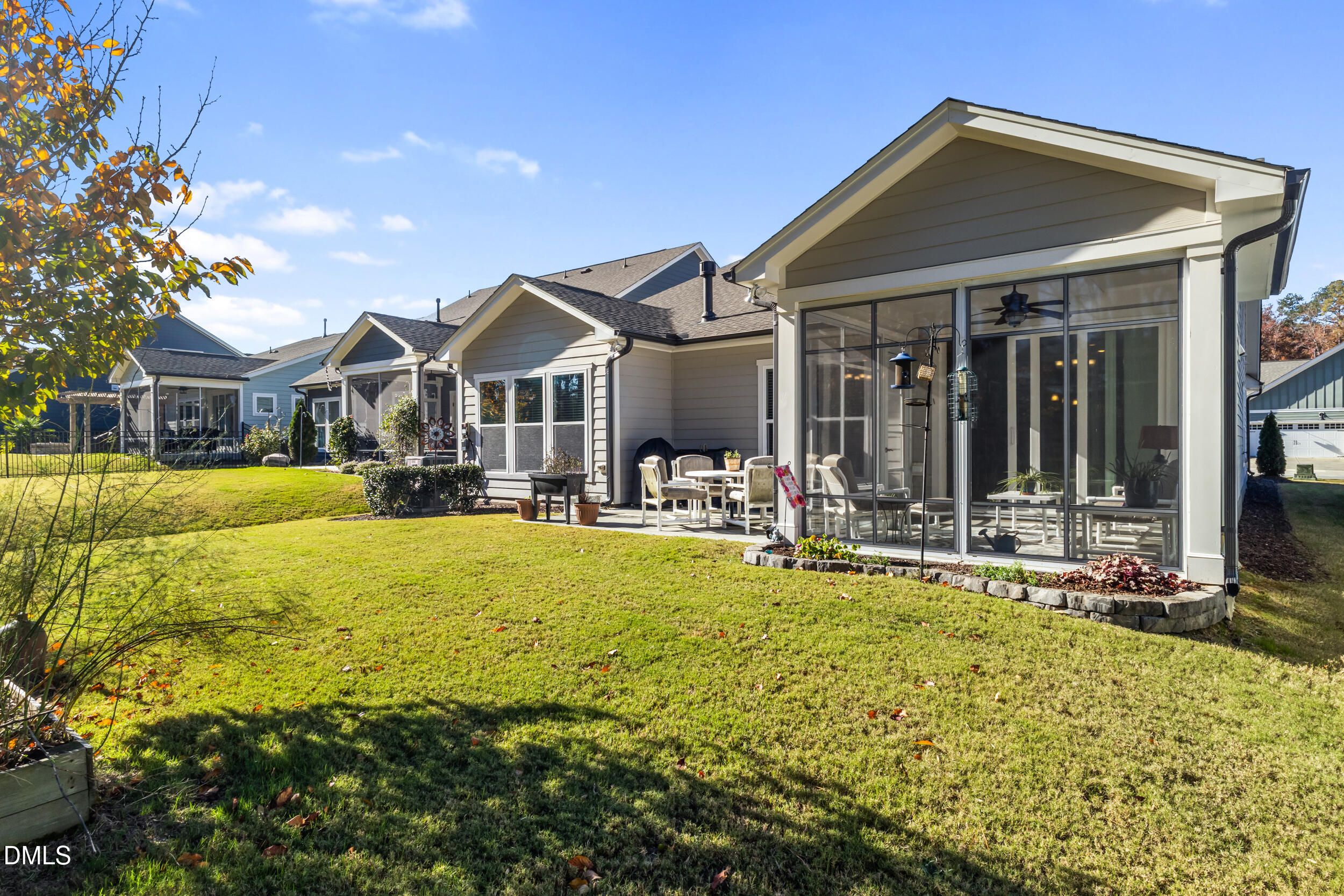 Welcome to 2535 Kylewynd Place in beautiful New Hill, NC — a stylish and comfortable home designed for easy living with lawn care included! At 2,091 square feet, this 2-bedroom, 2.5-bath property blends open-concept living with timeless charm. The heart of the home is the chef's kitchen, featuring rich cabinetry, granite countertops, stainless steel appliances, and an oversized island perfect for cooking and entertaining. The open living and dining areas flow effortlessly into a cozy 3-season sunroom overlooking the landscaped backyard — a peaceful retreat for morning coffee or evening relaxation. The spacious primary suite includes a spa-like shower and generous closet space, while the secondary bedroom offers comfort and privacy for guests. Additional highlights include a convenient half bath, upgraded finishes, and natural light throughout. Nestled in the heart of New Hill and just minutes from Apex and Jordan Lake, this home combines small-town tranquility with close proximity to shops, dining, and outdoor recreation. Every detail shines — and this one truly feels like home.