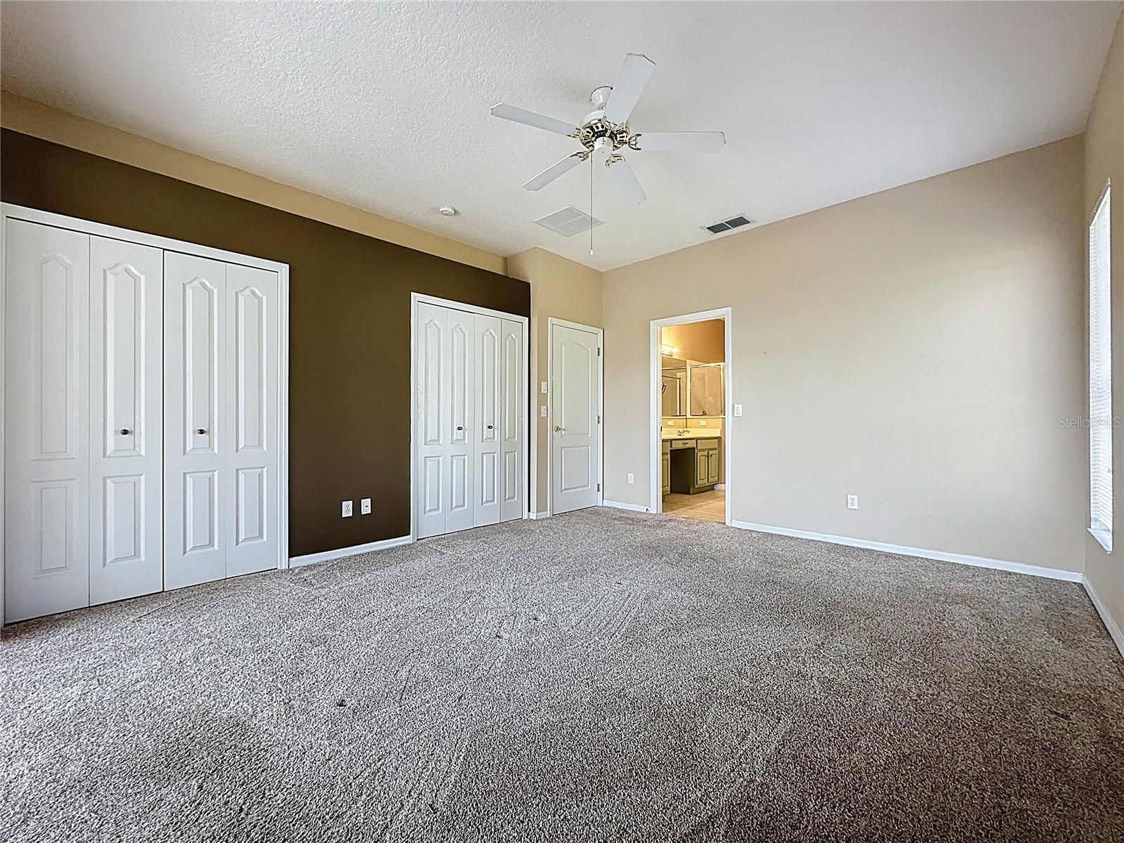 - Ceiling Fan(s), Eat-in Kitchen, High Ceilings, Kitchen/Family Room Combo, Main Level Primary, Split Bedrooms, Stone Counters, Thermostat, Walk-In Closet(s), Window Treatments