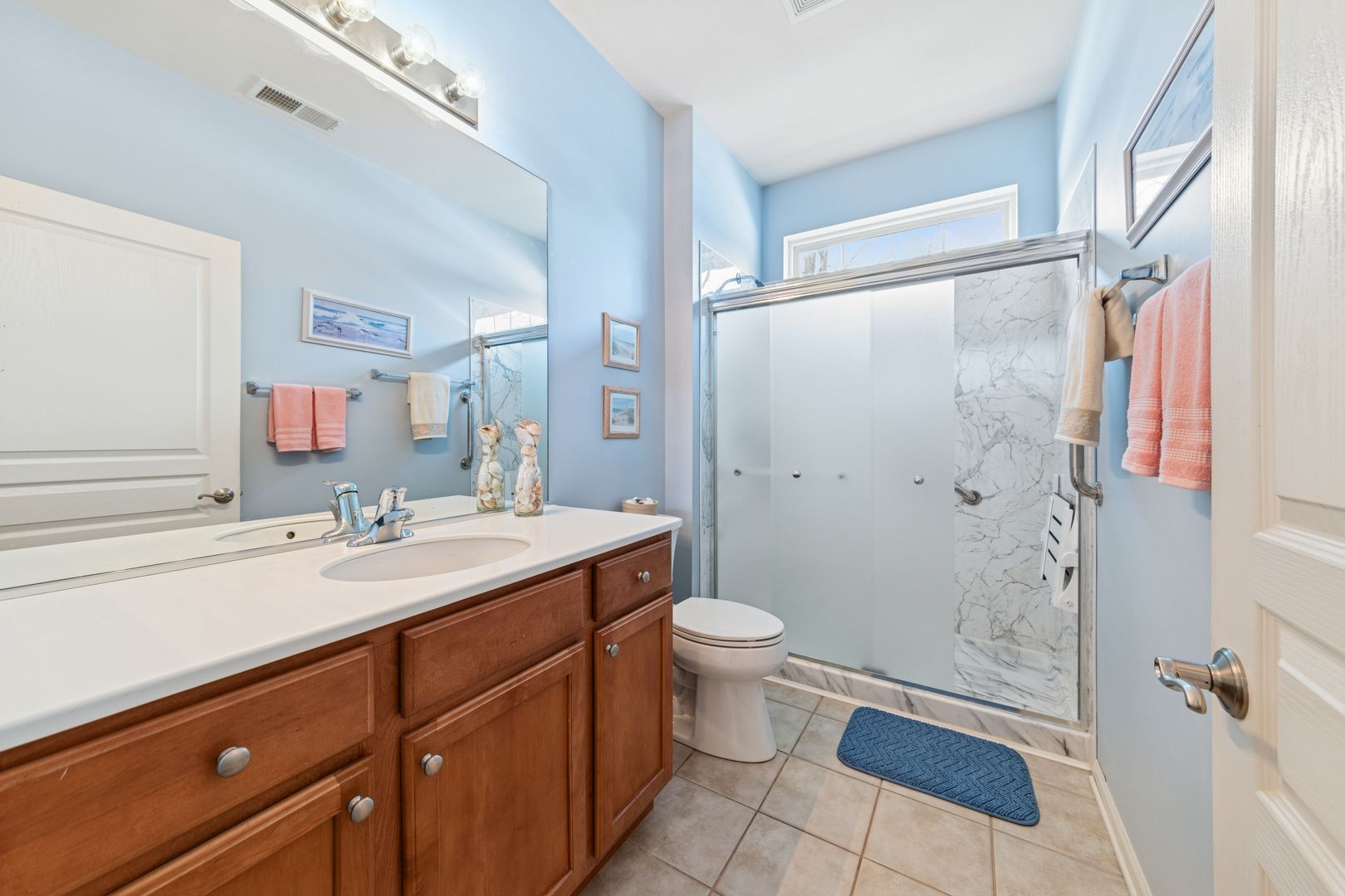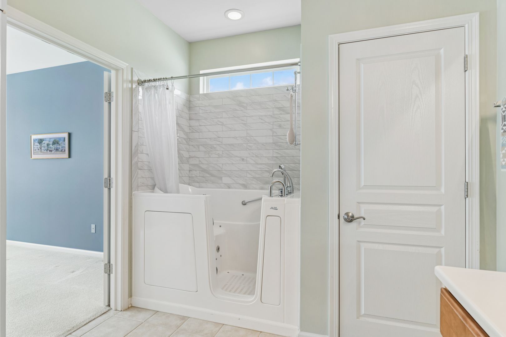Beautiful premium corner lot only 1 block to Creekside Lodge. This model is a Winthrop with extra wide pantry in separate breakfast room. Home has Dining Room/Living Room combo with slider to yard with Pergola on Patio. Home has separate Den and spacious Primary Bedroom with Bay Window. Primary bath has ceramic tile flr and sit-in tub. Large walk-in Closet also. Bathroom #2 was remodeled with shower and seat. Home has "Extended Garage", (add'l. 4' added to garage). Upgrades include new furnace & central air & humidifier 2020; new roof (transferable to new owner w/30 yr shingles); HWH 2025; walk-in tub and shower;new shower in bath 2 & new higher toilets. Taxes $7,598.54; HOA $292 Mo. Edgewater by Del Webb is an Active Adult Community with grass mowing and snow shoveling, seal coating driveways every 2 yrs;, 2 pools, hot tub, bocce courts, tennis/pickle ball courts, billiards, fitness room, and many activities to join!