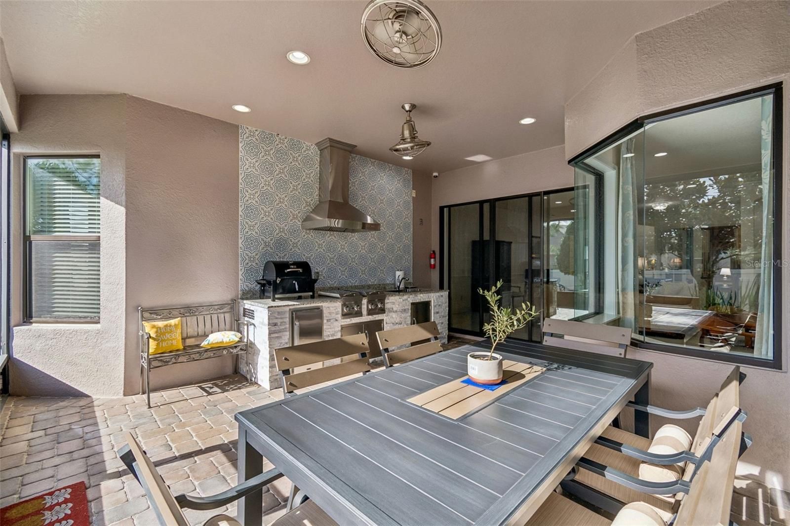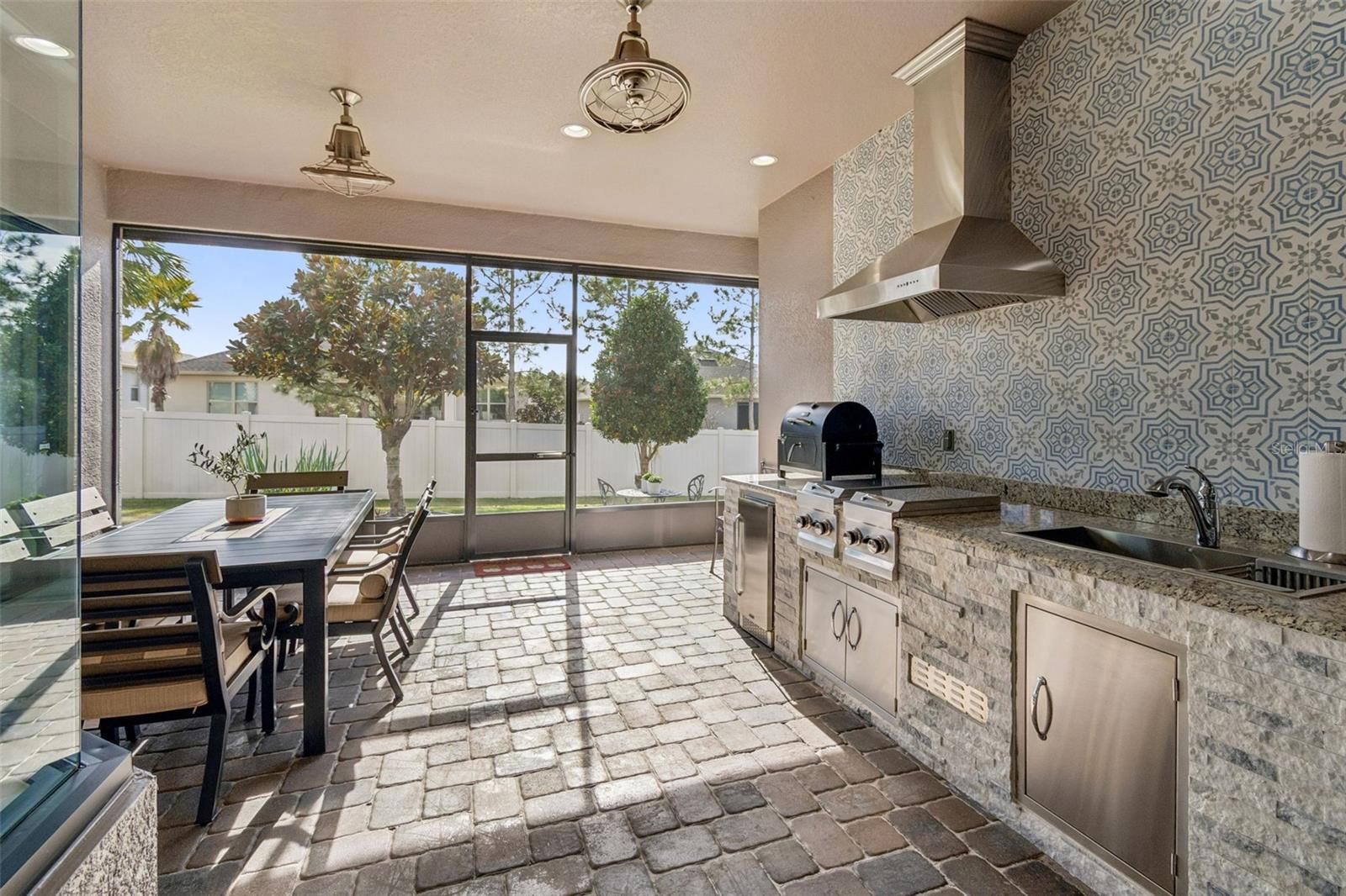 Prepare to be captivated by this meticulously upgraded masterpiece, where sophisticated luxury meets modern comfort at every turn. From the moment you arrive, the freshly painted exterior (2022), extended stonework, and charming gated courtyard set a tone of elegance that continues throughout the home. Inside, you are greeted by architectural grandeur featuring 8-foot doors, soaring coffered and tray ceilings, and an upgraded trim package with crown and chair molding that frames every room perfectly. The seamless flow of 20x20 porcelain tile leads you past a private office with elegant glass doors into the heart of the home: a gourmet kitchen boasting quartz countertops and an enhanced backsplash. No detail has been overlooked, from the sustainable bamboo floors in the bedrooms to the guest suite’s private ensuite with a walk-in shower. Your master retreat is a sanctuary of its own, featuring a sun-drenched bay window, a massive closet with custom built-ins, and a luxurious super shower. The mechanical integrity of the home is just as impressive as its design, anchored by a brand-new HVAC (2025) with a lifetime warranty, a tankless water heater, and a whole-house water softener system for ultimate peace of mind. Functional luxury continues in the 3-car tandem garage, which features high-durability epoxy floors and insulated doors, while a built-in Wi-Fi extender ensures seamless connectivity throughout the property. Beyond the interior, your private tropical oasis awaits; a screened lanai with a privacy screen opens to a lush landscape of palm and fruit trees. Whether you’re hosting at the upgraded outdoor kitchen or enjoying the added security of integrated floodlights and gutters, every inch of this home has been curated for a lifestyle of unparalleled quality. Life at Esplanade at Highland Ranch extends far beyond your front door, offering a resort-style experience centered around a well-appointed clubhouse designed for an active and social lifestyle. Residents enjoy access to a state-of-the-art fitness center, a multi-purpose room for gatherings, and dedicated spaces for cards and billiards. For relaxation, indulge in the on-site treatment room for massages or grab a morning cup of joe at the coffee bar. The outdoor amenities are equally spectacular, featuring a resort-style pool and spa, a resistance pool, and a cozy fire pit for evening conversations. Competitive spirits will thrive on the four pickleball courts, two bocce ball courts, and the tennis court, while those seeking serenity can explore the picturesque walking and biking trails, event lawn, and expansive park spaces that surround this premier active adult community.