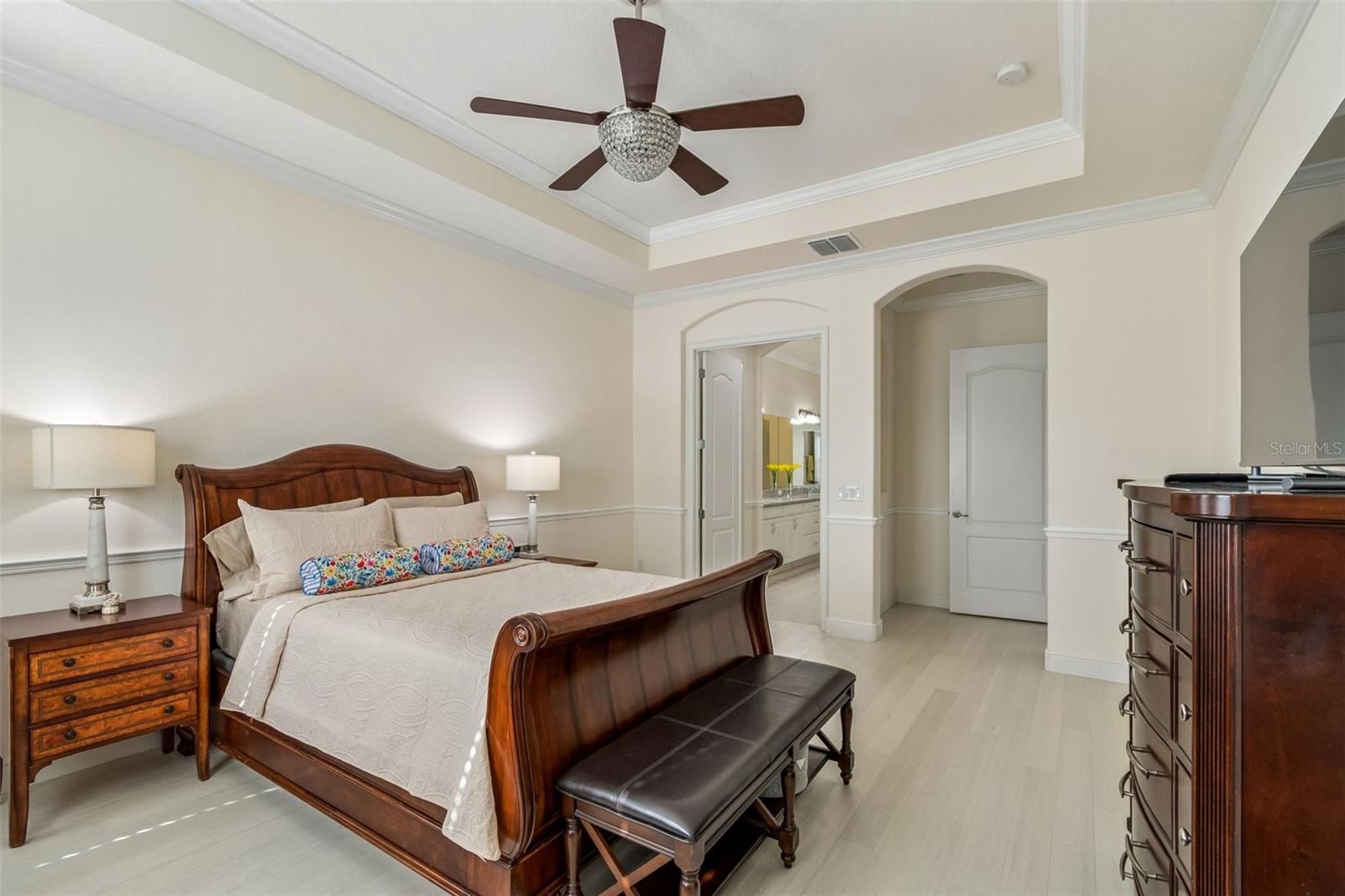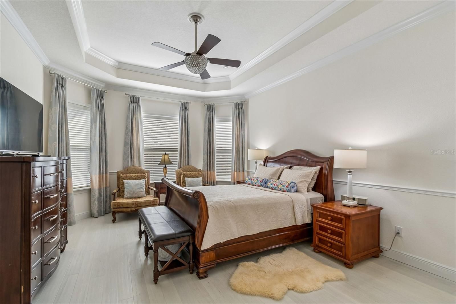 - Ceiling Fan(s), Coffered Ceiling(s), Crown Molding, High Ceilings, Kitchen/Family Room Combo, Living/Dining Room, Open Floorplan, Other, Main Level Primary, Stone Counters, Tray Ceiling(s), Walk-In Closet(s)