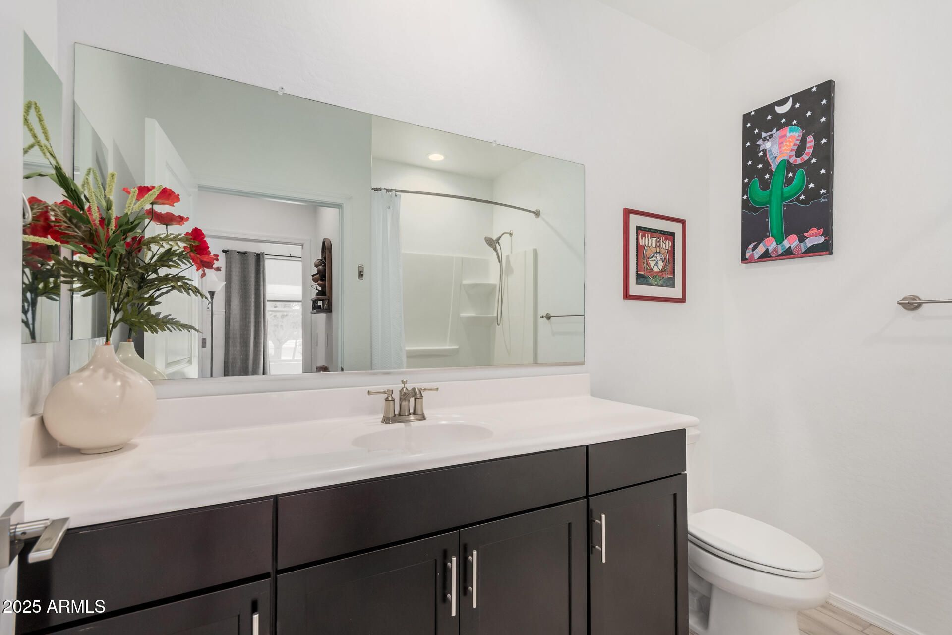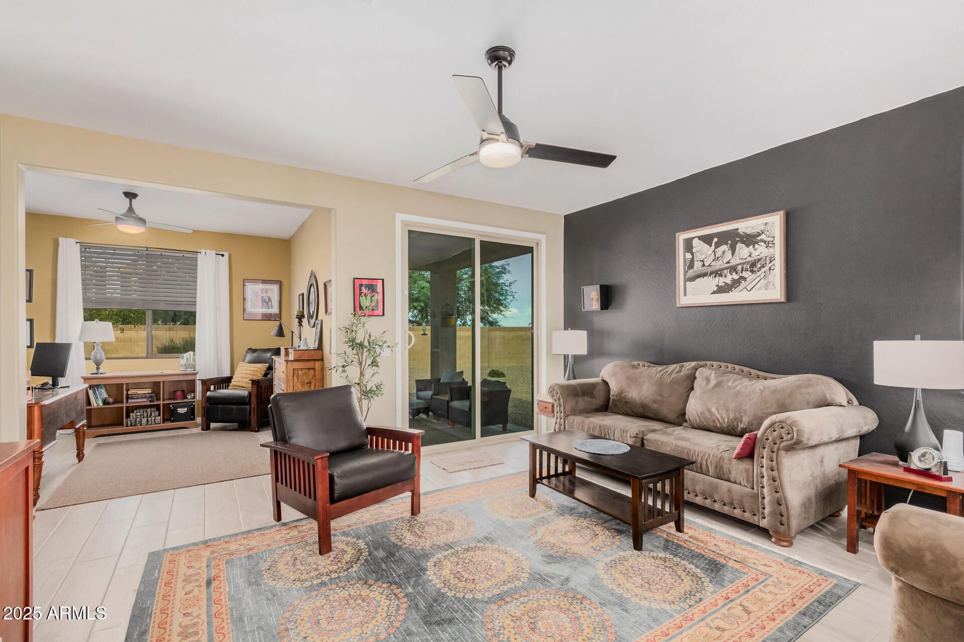 Motivated Seller! Welcome to Mission Royale — one of Arizona's most sought-after active-adult communities! Here you'll enjoy resort-style living with amenities like a golf course, pickleball and tennis courts, two sparkling pools, and walking paths, & the HOA maintenance here is top notch! This beautifully maintained home features a spacious open floor plan, plus a versatile secondary living space perfect for a den, office, or retreat. The kitchen is a true centerpiece with abundant cabinetry, a large center island, two large pantries, modern appliances, pendant lighting, under cabinet lighting, and even color-changing LED cabinet-top accents that let you set the mood for any occasion. The primary suite, tucked away at the back of the home, includes a generous walk-in closet and a private ensuite bath with dual vanities. A guest bedroom & full bath at the front of the home provide excellent privacy and separation from the main living areas. Storage is abundant throughout from the walk-in pantry and large closets to laundry room cabinetry and built-in garage cabinets. Outside, enjoy a low-maintenance yard with a brand-new drip system and irrigation box, along with a covered patio plus a secondary courtyard that's perfect for relaxing Arizona evenings. The courtyard has just been resurfaced and is stunning. Situated on an oversized corner lot, you'll also appreciate the extra privacy. Conveniently located near shopping, dining, and I-10 for easy access, this home is move-in ready and waiting for its next chapter.