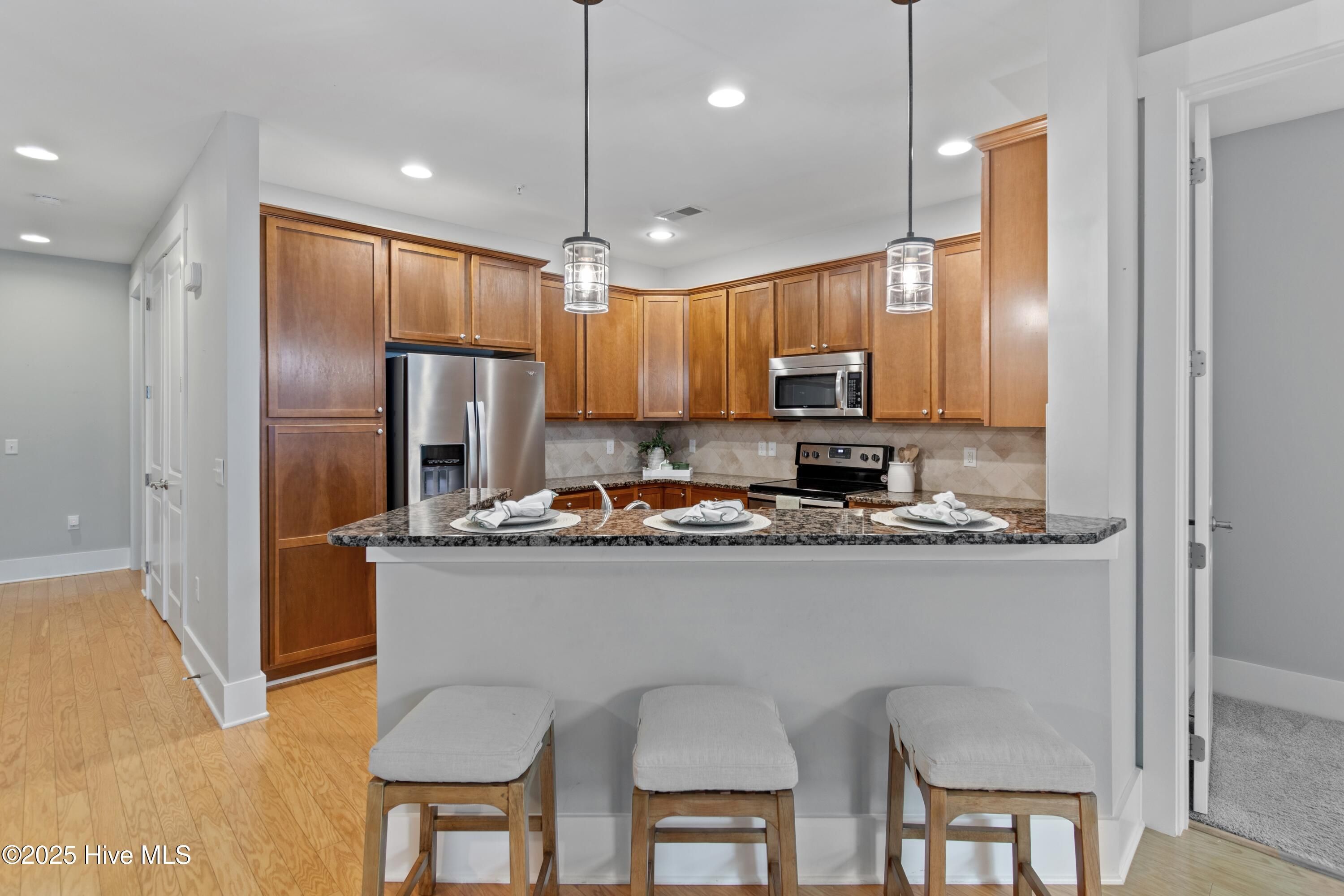 Price just reduced on this stunning custom staged Harborwalk condo which offers 3 bedrooms, 3 full baths, and an abundance of open, spacious living. With its close proximity to St James Marina and Beacon 315 Restaurant this residence exudes convenience and coastal worry-free living. Step inside and you're greeted with incredible hardwood flooring and 8-foot doors throughout. The vaulted ceilings and ample windows create a bright and roomy feel, perfect for relaxation and entertaining. Enjoy the company of guests in the expansive living area or cuddle up and keep this jewel all to yourself. Recent upgrades include a new refrigerator and new HVAC. The primary suite, complete with its own lavish ensuite bath, offers a serene sanctuary. Two additional bedrooms and baths provide ample space for family or guests, ensuring everyone a private oasis. Be sure to take advantage of the outdoor amenities including a private pool and outdoor kitchen just for the Harborwalk community. St James offers a plethora of amenities: 81 holes of championship golf, tennis, pickleball, croquet, 3 fitness centers, indoor and outdoor pools, private beach club on Oak Island, parks, kayak launch, full-service marina, restaurants and more. With its prime location and luxurious features, this Harborwalk condo is more than just a home or a vacation getaway it's a lifestyle. Make it yours today!!