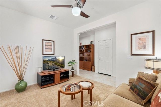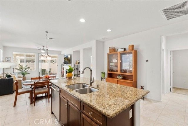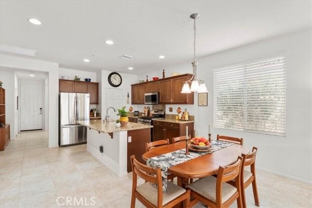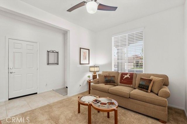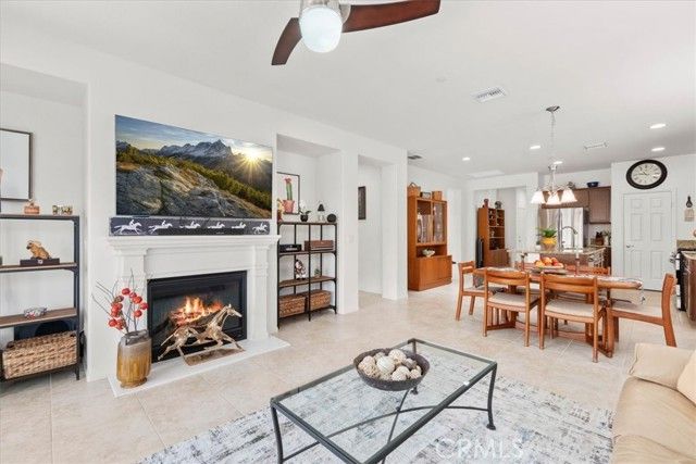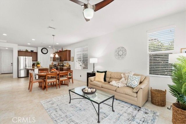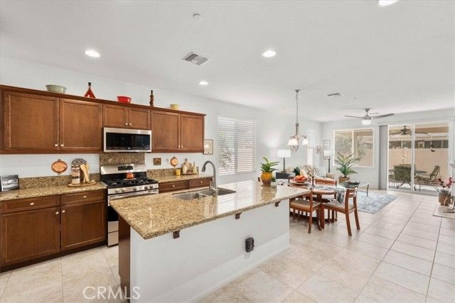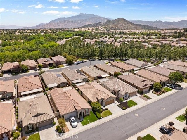 Welcome to this Retreat Model in Four Seasons Beaumont. Located on a quiet street within walking distance to the main clubhouse, this home features a charming front porch area. Lovingly maintained by the original owner, this single-story home offers approximately 1,592 square feet with 2 bedrooms, 2 bathrooms, and a front den, with an open layout, lots of windows, and natural light that fills the main living spaces. The kitchen is thoughtfully designed with granite countertops, stainless steel appliances, a large walk-in pantry, and an island with seating, opening to the living and dining areas for an easy, comfortable flow. The living room centers around a cozy fireplace, creating a warm space to relax and unwind. In the backyard, the covered Alumawood patio becomes a natural extension of the home—an inviting place to enjoy your morning coffee, spend a quiet evening, and take in the peaceful setting, with a peek-a-boo mountain view and the simple sounds of nature. The primary bedroom is generously sized, offering a comfortable retreat with plenty of room to settle in. The primary bath includes dual sinks, a spacious walk-in closet to help stay organized, and a separate shower. This floor plan places the second bedroom in its own area off the living room with a nearby guest bath, giving visitors their own space and a sense of privacy. The front den is a wonderful space for a TV room, a quiet library, or a home office. The indoor laundry room includes a sink and additional storage, making everyday tasks a little easier. The garage offers added storage with built-in cabinets. Four Seasons is a gated 55+ community known for its quiet surroundings, strong sense of community, and well-maintained amenities. Residents enjoy peaceful walks through the natural preserve and walking paths, along with access to three clubhouses, indoor and outdoor pools, a restaurant, fitness centers, pickleball courts, and lighted tennis courts. Plus, the wonderful Dog Park! The outdoor amphitheater and summer concert series offer a relaxed place to gather, unwind, and meet your neighbors.