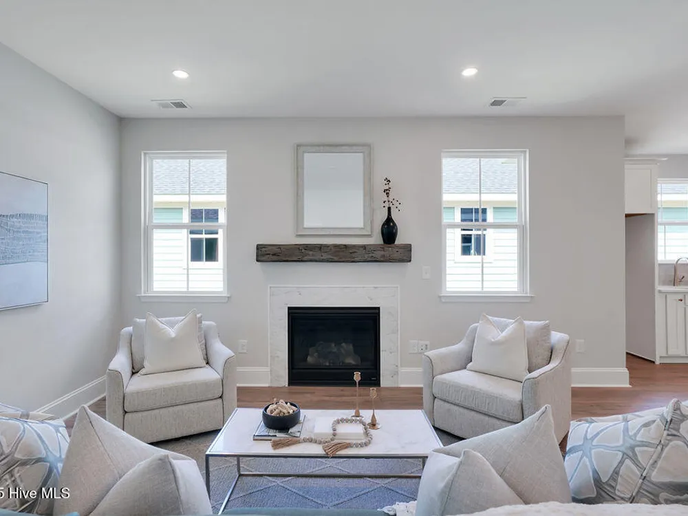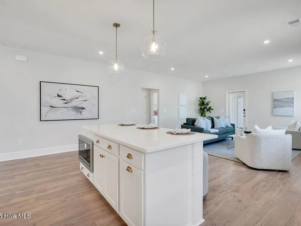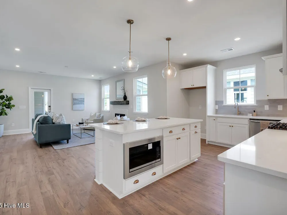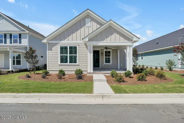 Quick Move-In, New Construction home in Riverlights! Our single-story Clay, built by New Leaf Builders entices homeowners with generously proportioned spaces in 1,603 thoughtfully crafted square feet. This 3 bedroom, 2 full bath design surprises with a spacious open floorplan. Coming home to the Clay is a joy. A generously proportioned open kitchen encourages engagement with friends and family from both the living and dining rooms and guests will appreciate the graciousness of the large guest bedrooms and a full guest bathroom. As the owner, you'll relish the ample storage of a walk-in closet at the primary bedroom, situated at the rear of your home for the ultimate in privacy and convenience. Riverlights is a new home community surrounded by the coast and Cape Fear River, where nature is part your everyday routine. With easy access to the Cape Fear River, the intercoastal waterways, a family-friendly pool, a new dog park, gym and a 38-acre lake, you can kayak, paddleboard or stroll along the community dock any time of day. Enjoy the three-mile loop around the lake and scenic nature trails that weave throughout Riverlights. Conveniently located minutes to Historic downtown Wilmington, beaches, restaurants and shopping the location of Riverlights is unbeatable.