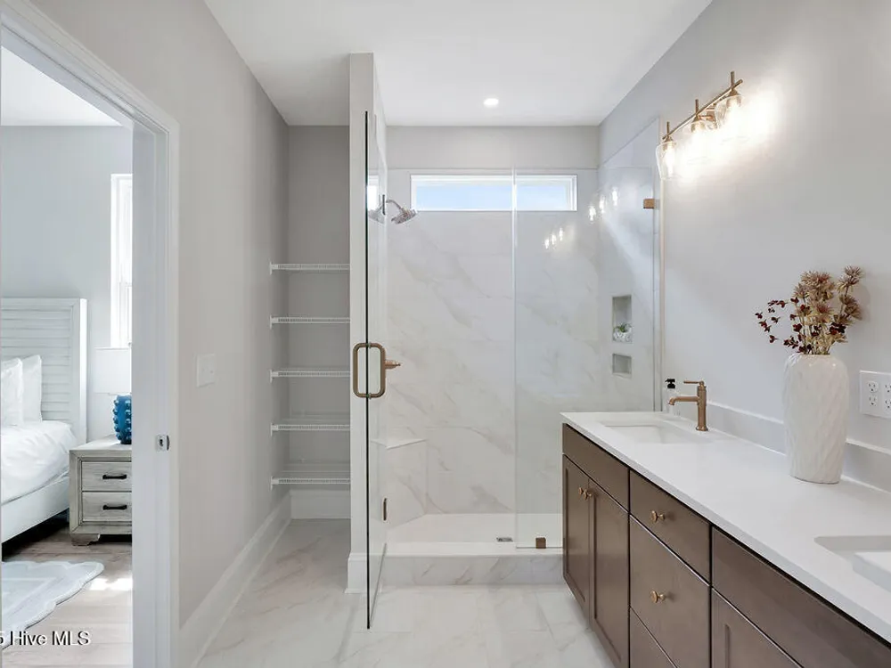 - High Ceilings, Walk-in Shower, Walk-In Closet(s), Pantry, Master Downstairs, Kitchen Island