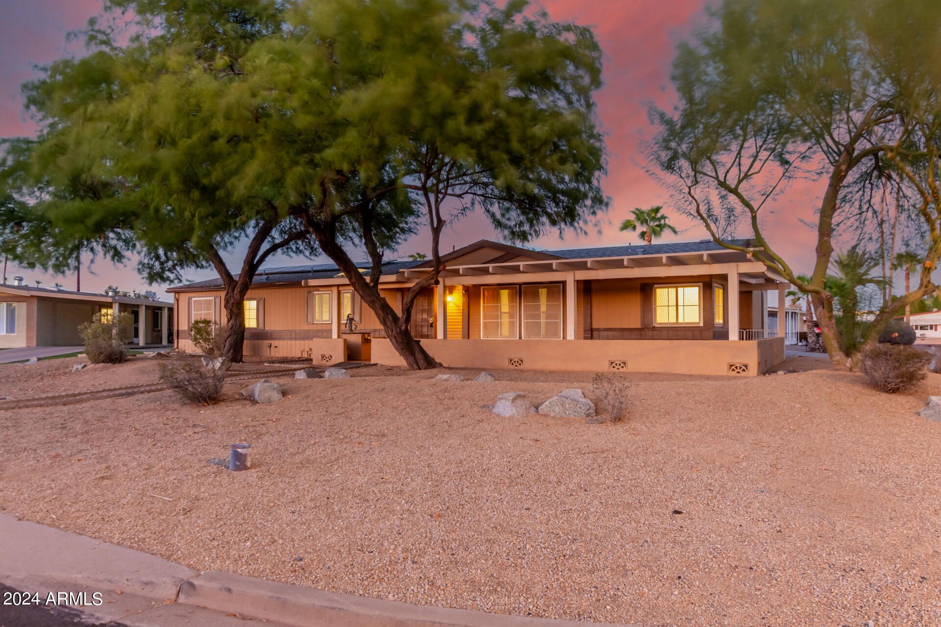 Extraordinarily upgraded 3 bed/2 bath on a large corner cul de sac lot in the upscale 55+ Sun Lakes Community. Quiet part of the community, enjoy the sunset under the trellis covered front patio. Full 2 car garage with insulated door, overhead attic storage with fan, & air conditioned & evap cooled workshop attached. Home was renovated in 2020 including the roof, gas kitchen appliances, 50 gal H2O heater, whole house water filtration and flooring. HVAC in 2021, paint in 2024. Master bedroom has a sitting room that could be used as an office or den, en suite bathroom w/jetted tub, dual sinks & separate shower. Living space has lots of natural light w/multiple skylights & open floorplan & vaulted ceilings. Energy efficient & easy to care for.. This really is a must see! Thanks for looking! This is a VA loan with little equity! Ask us about assuming it with little CTL. Top tier Palm Harbor affixed double wide was releveled in 2023. Kitchen has a gas cooktop in the center island, 2 over the sink windows, soft close cabinets, pull out shelves and bins, a large pantry and a breakfast bar. RO system in the kitchen is from 2018. Oversized closets provide more than average storage space for a home this size. Property is energy efficient with upgraded windows dual pane vinyl windows in all but the north facing bedroom, custom sunscreens for almost every window in the home, insulated garage door, and a leased solar array installed in 2024, Speaking of the garage, the epoxy floor and the custom cabinetry with pull out shelving dates from 2020 as well. The garage has it's own mini split system as well. The workshop has an exterior garage door, and the garage has a third exit that leads to a 23 x 11 greenhouse style shed affixed to the east side. The driveway is three cars wide at the garage entry, so there is easy access to the east side yard, which is fenced off with privacy height vinyl fencing. All on a easy to care for landscaped property with drip irrigation and yard lighting. Sun Lakes as a community provides a "resort vacation" lifestyle and country club living with several gated communities. Sun Lakes includes five adult country club communities. Residents and guests enjoy several 18 hole and 9 hole golf courses, five club houses, and restaurants. Amenities also include a number of cafes, heated community pools, hot tubs, driving ranges, tennis courts, health clubs, arts and crafts centers, whirlpools & saunas, billiards, pro shops, stocked fishing lakes and miles of walking paths with green grass, desert-scape, and lake side views. There are hundreds of clubs based on interest, like computers, photography, arts, or groups like the 40's, 50's, 60's clubs to find people at similar life stages. Explore Sun Lakes of Arizona website for information and make Sun Lakes your home. Located minutes away from the Chandler Fashion Center Mall, and major high tech companies like Intel, Sun Lakes provides convenience and a comfortable lifestyle. With upscale shopping plazas, a community college campus, public library, a variety of restaurants, boutiques, spas, professional and health care services providers, Sun Lakes is has it all! Just 20 minutes from Phoenix, Sun Lakes has convenient access to major routes and is minutes from I-10, routes 101 and 202. Nearby, Sun Lakes residents can enjoy, casinos, and attractions like Firebird International Raceway and Rawhide, an 1800's old west town.