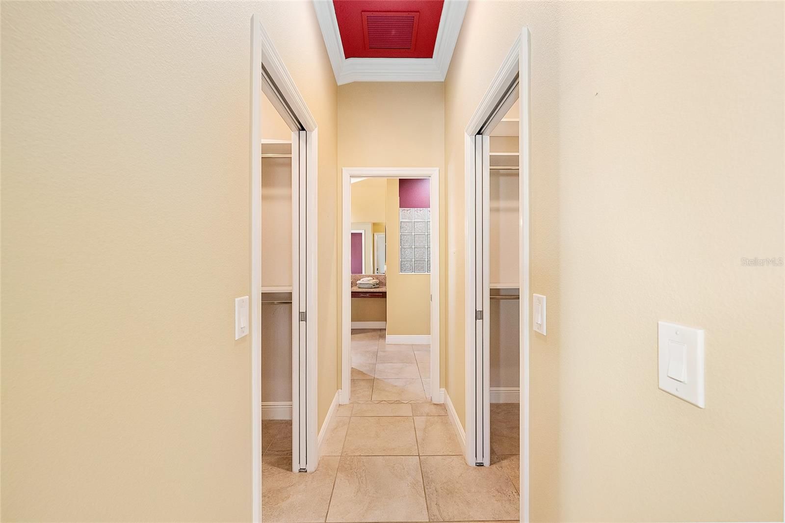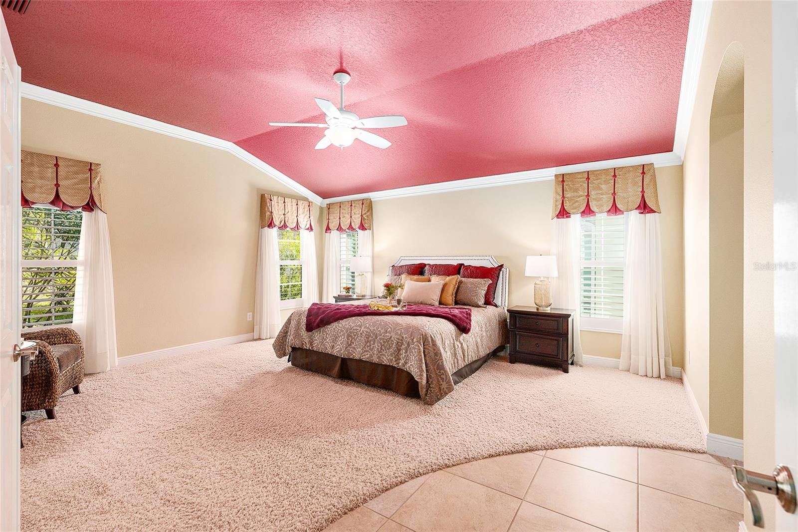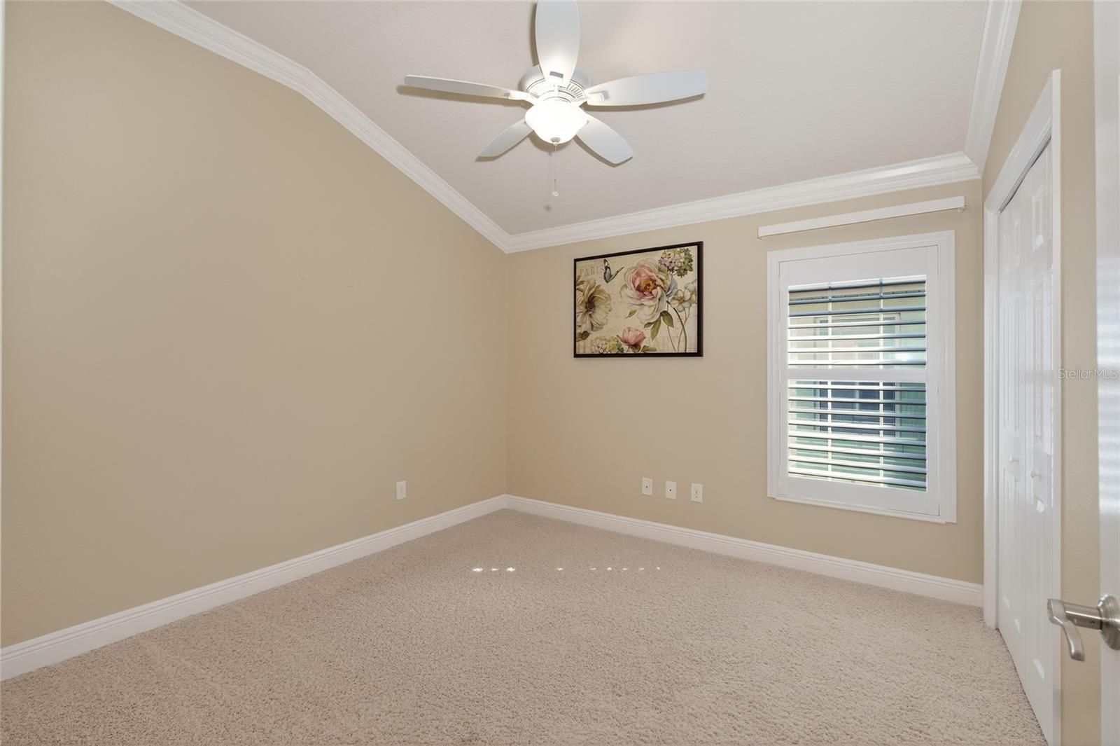 - Ceiling Fan(s), Crown Molding, Eat-in Kitchen, High Ceilings, Main Level Primary, Thermostat, Walk-In Closet(s), Window Treatments
