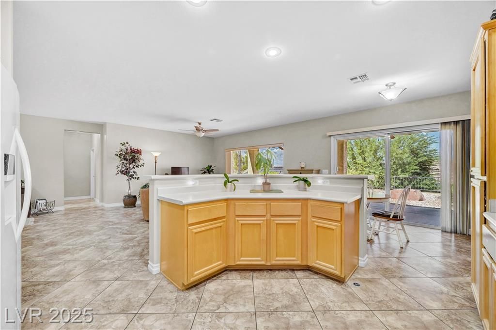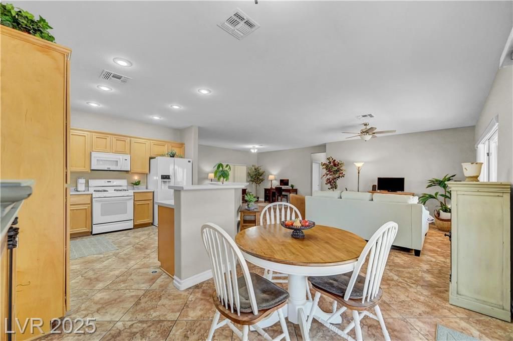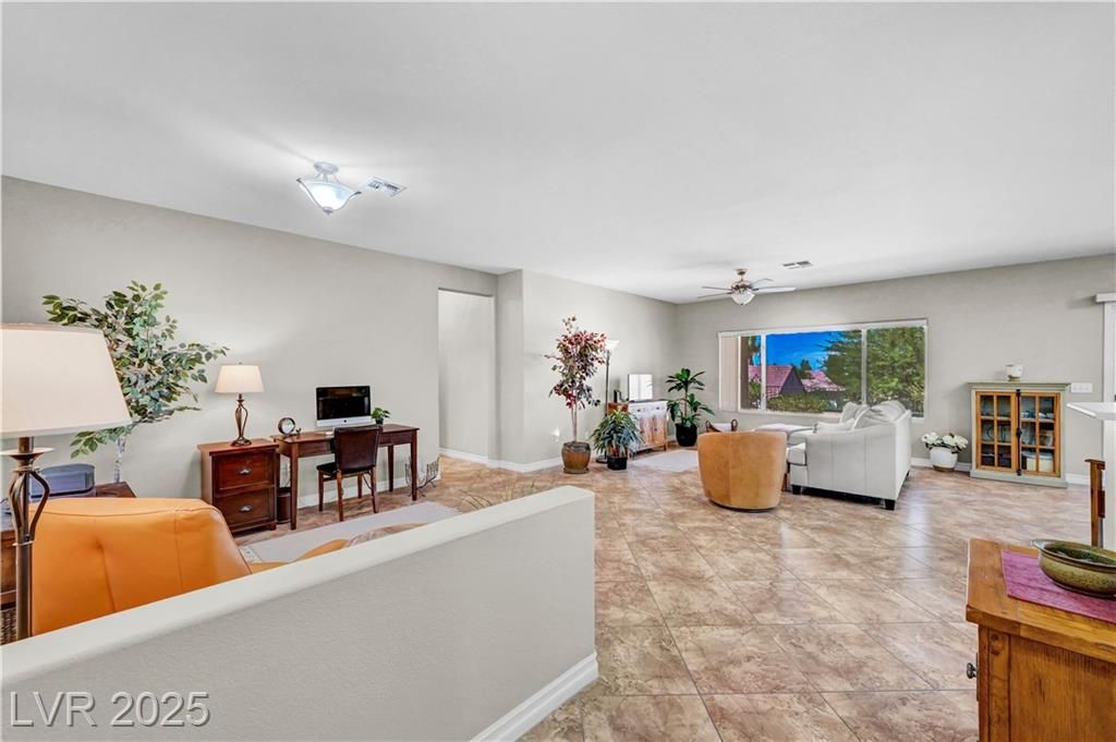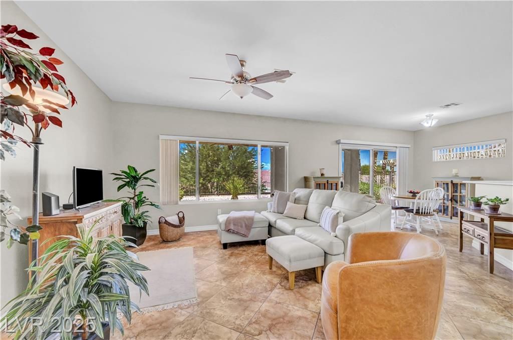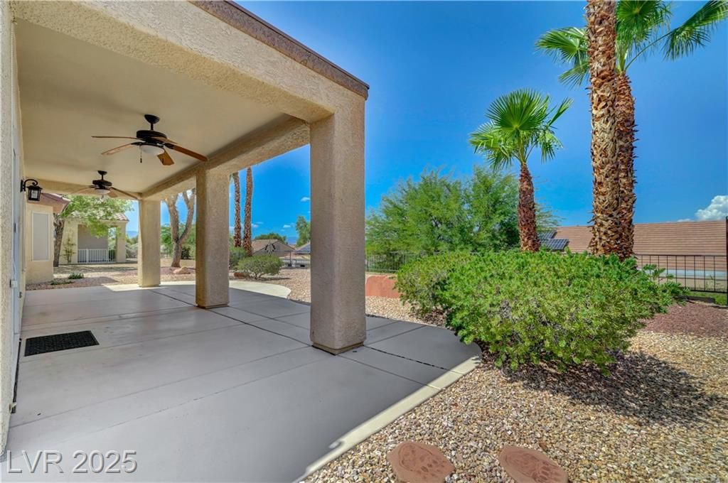 Experience elevated living in this beautifully maintained Sun City Anthem home with impressive rooftop mountain and Strip views. A gated courtyard welcomes you into a bright, open layout designed for both relaxation and entertaining. The spacious great room flows into an inviting kitchen with casual dining and a versatile den ideal for an office or quiet retreat. Fresh paint, refined tile flooring, and updated lighting give the home a clean, modern feel throughout. Step outside to an elevated backyard featuring a wide covered patio, mature low-maintenance landscaping, and stunning vistas. Beautiful mature palm trees adorn both the front and back yard creating the essence of our desert beauty! Recent upgrades include a newer HVAC system, solar screens, updated irrigation, and industrial-grade garage cabinetry for excellent storage. Enjoy access to Sun City Anthem’s renowned amenities—pools, fitness, golf, clubs, and more. Move-in ready and perfectly positioned for serene desert living.