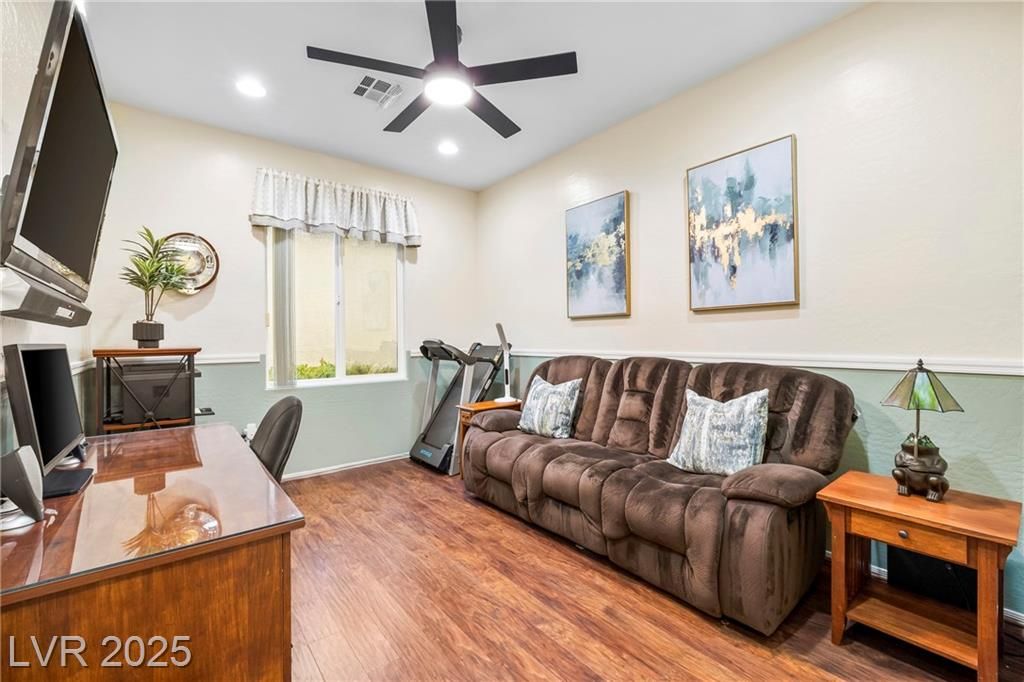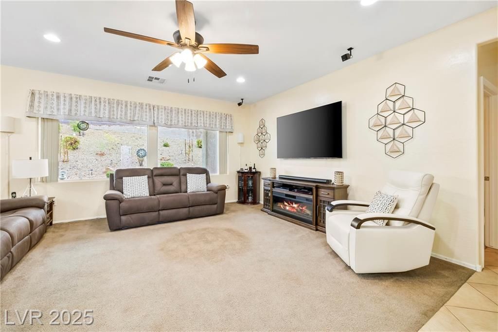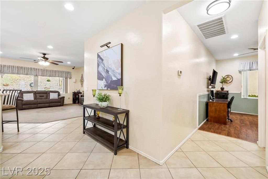 Immaculately maintained by its original owner, this 2-bedroom, 2-bath plus den home in Del Webb’s premier 55+ community of Sun City Anthem offers 1,596 sq. ft. of comfort and style. Recent upgrades include a new HVAC system, refrigerator, microwave, gas range, washer, dryer, new light fixtures, and updated cabinet hardware. Both the interior and exterior have been freshly painted within the past two years. The fully fenced backyard provides ample space for relaxing or entertaining, while the paver driveway and walkway, accented by a beautiful wrought iron security gate, enhance the curb appeal. This turnkey home is move-in ready with nothing left to do but unpack and start enjoying resort-style living with access to multiple community centers featuring swimming pools, pickleball courts, fitness facilities, social events, and more—all in one of Henderson’s most desirable active adult communities.