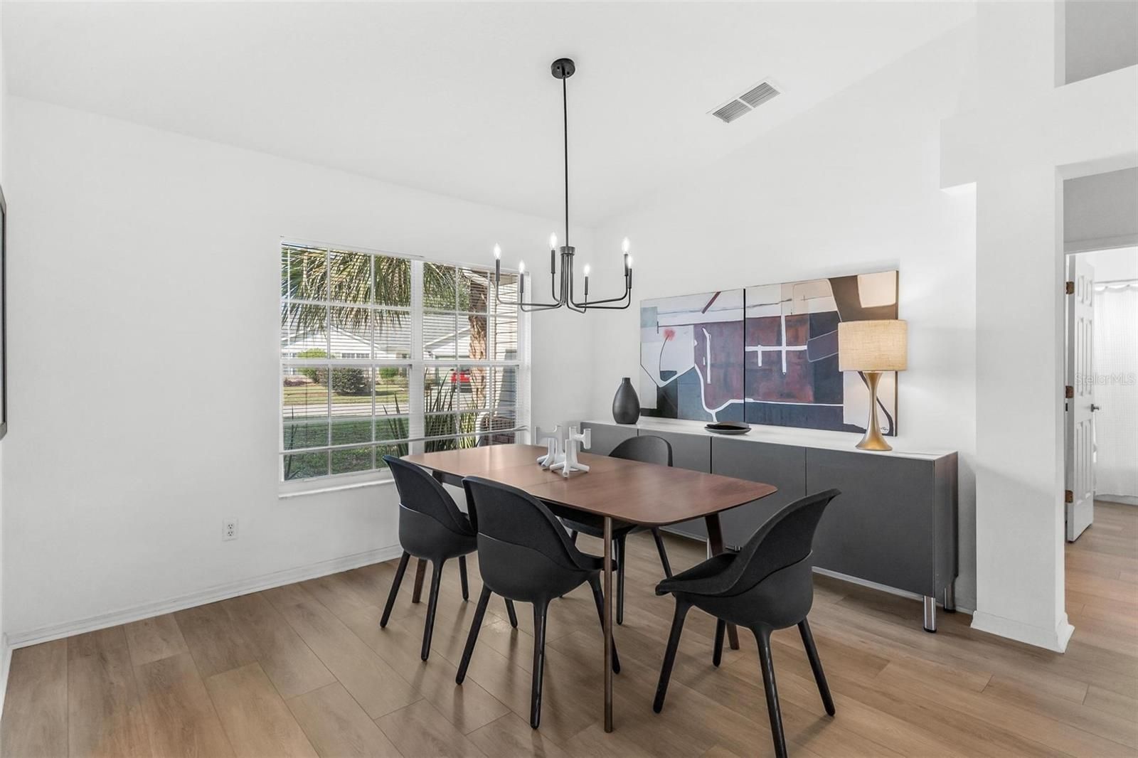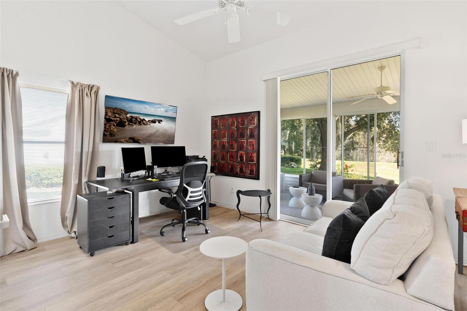 Discover peaceful living in this beautiful 3 bedroom 2 bath home with a large 3 car garage that backs up to no rear neighbors! NEW ROOF 2022! This home features an inviting open floor plan that is light and bright. Stunning new laminate flooring throughout, tasteful upgraded fixtures and built in niches in the living plus glass sliders to enjoy the view of the backyard. The kitchen has great cabinet and counter space, upgraded appliances and dinette. Large master suite with double walk in closets, separate vanities, garden bath and shower. Double doors leading into both of the spare spacious bedrooms give that grand feel which is perfect for guests, hobby rooms or a home office. Imagine evenings relaxing in your fully enclosed back lanai overlooking the backyard while you enjoy the sights and sounds of nature with abundant birdlife right outside of your door. The residents of the community enjoy many amenities, a friendly atmosphere and a comfortable lifestyle designed for relaxation and convenience. Speaking of convenience, you are just minutes to the turnpike which makes commuting quick and easy! Call today to start enjoying this peaceful move-in ready home!